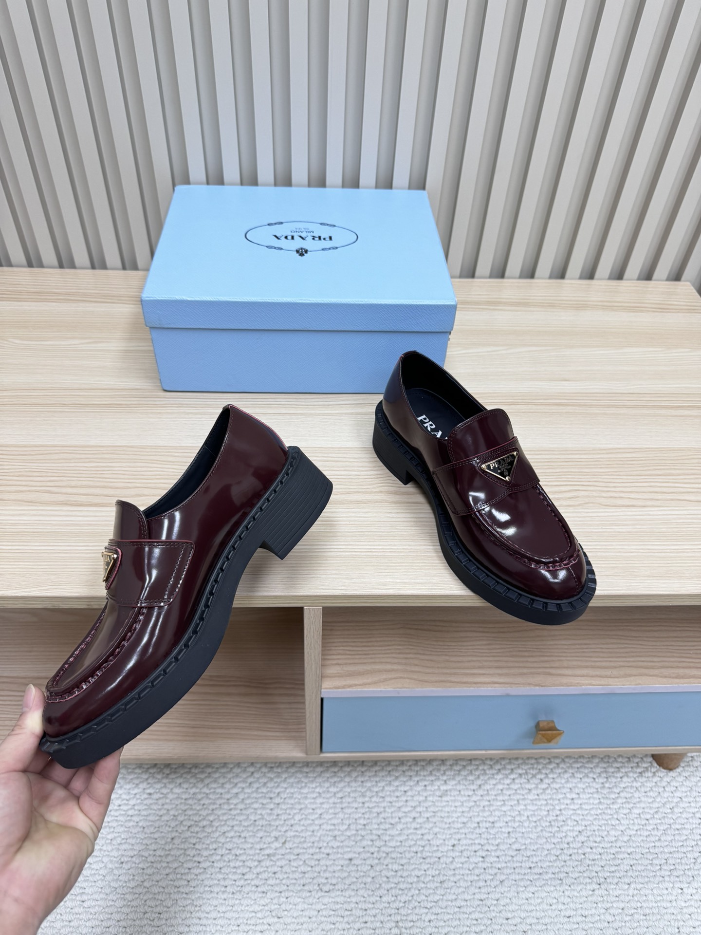 這款鞋子是AAAAA 1:1 質量(非常棒). 使用了和原版一模一樣的材料. 商標部分也保持了和普拉達/Prada一樣. 圖片拍攝是實物鞋子拍攝, 您所收到的實物保證和我們圖片一模一樣.