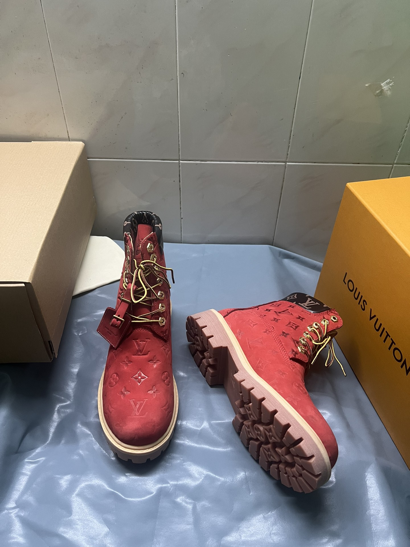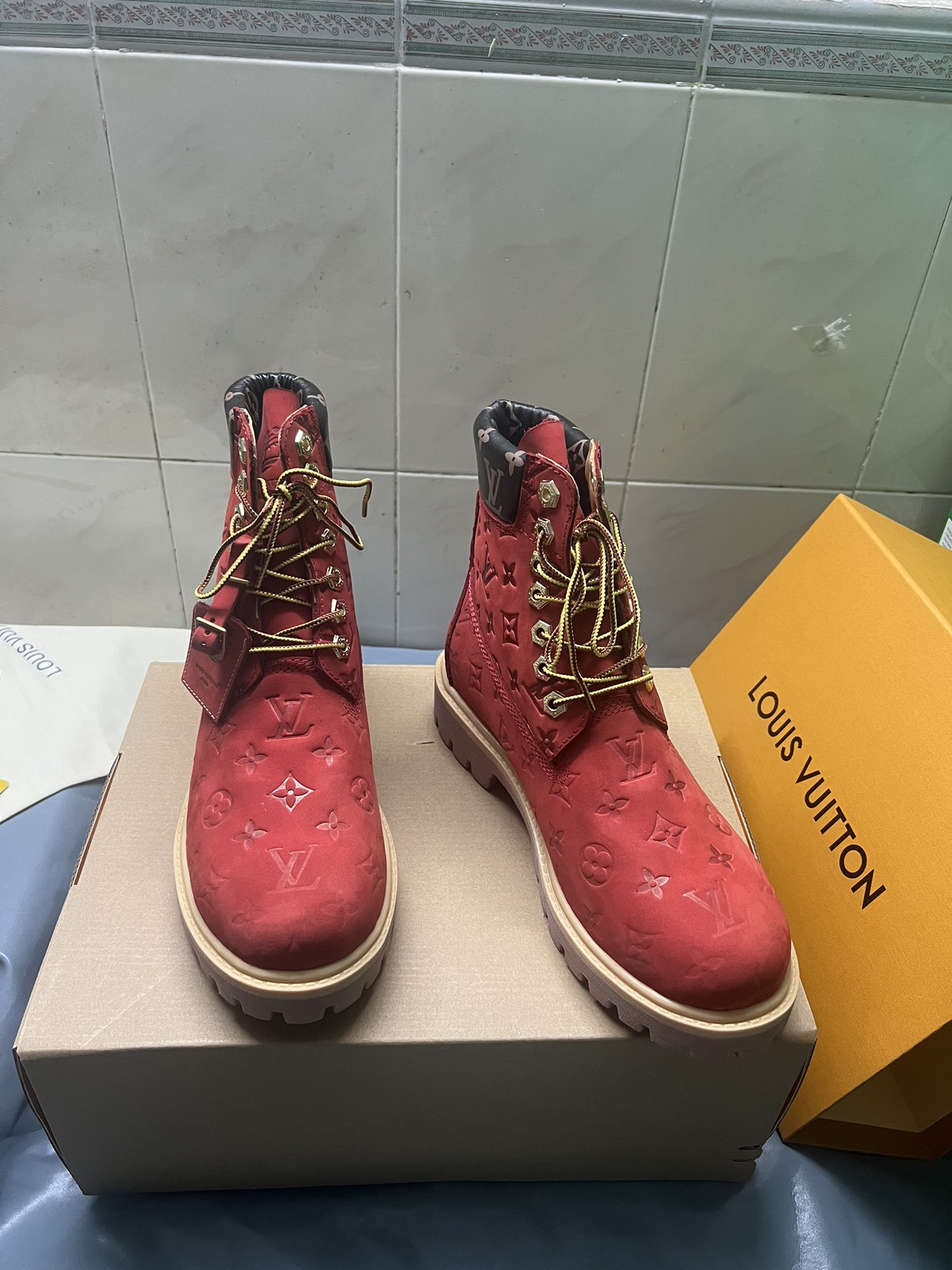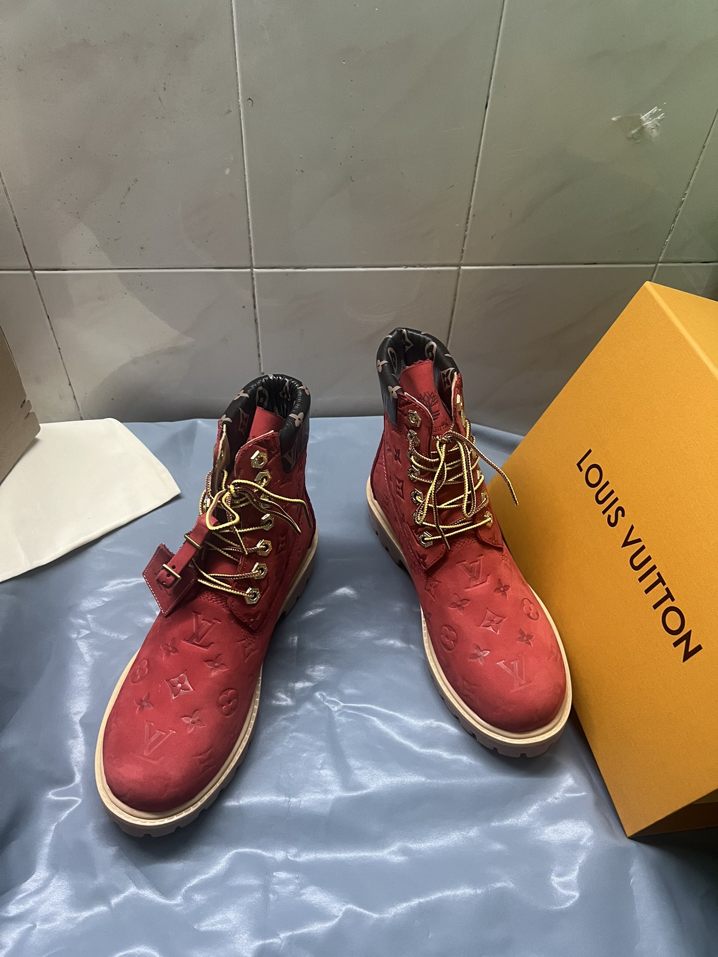 這款鞋子是AAAAA 1:1 質量(非常棒). 使用了和原版一模一樣的材料. 商標部分也保持了和路易威登/Louis Vuitton一樣. 圖片拍攝是實物鞋子拍攝, 您所收到的實物保證和我們圖片一模一樣.
