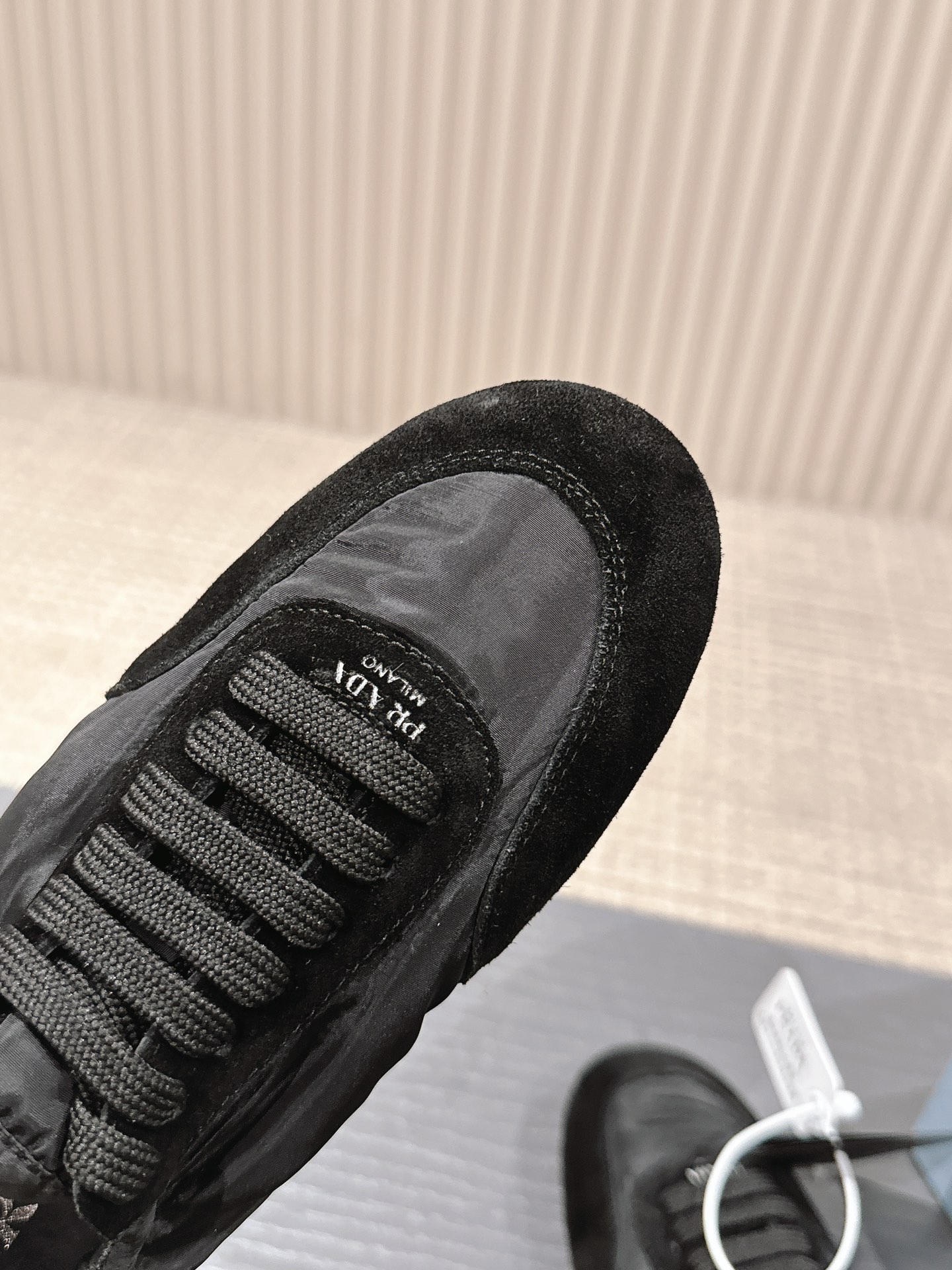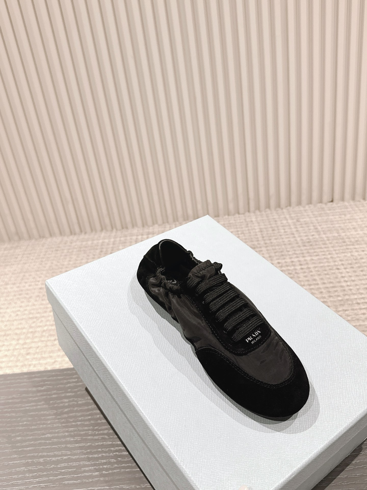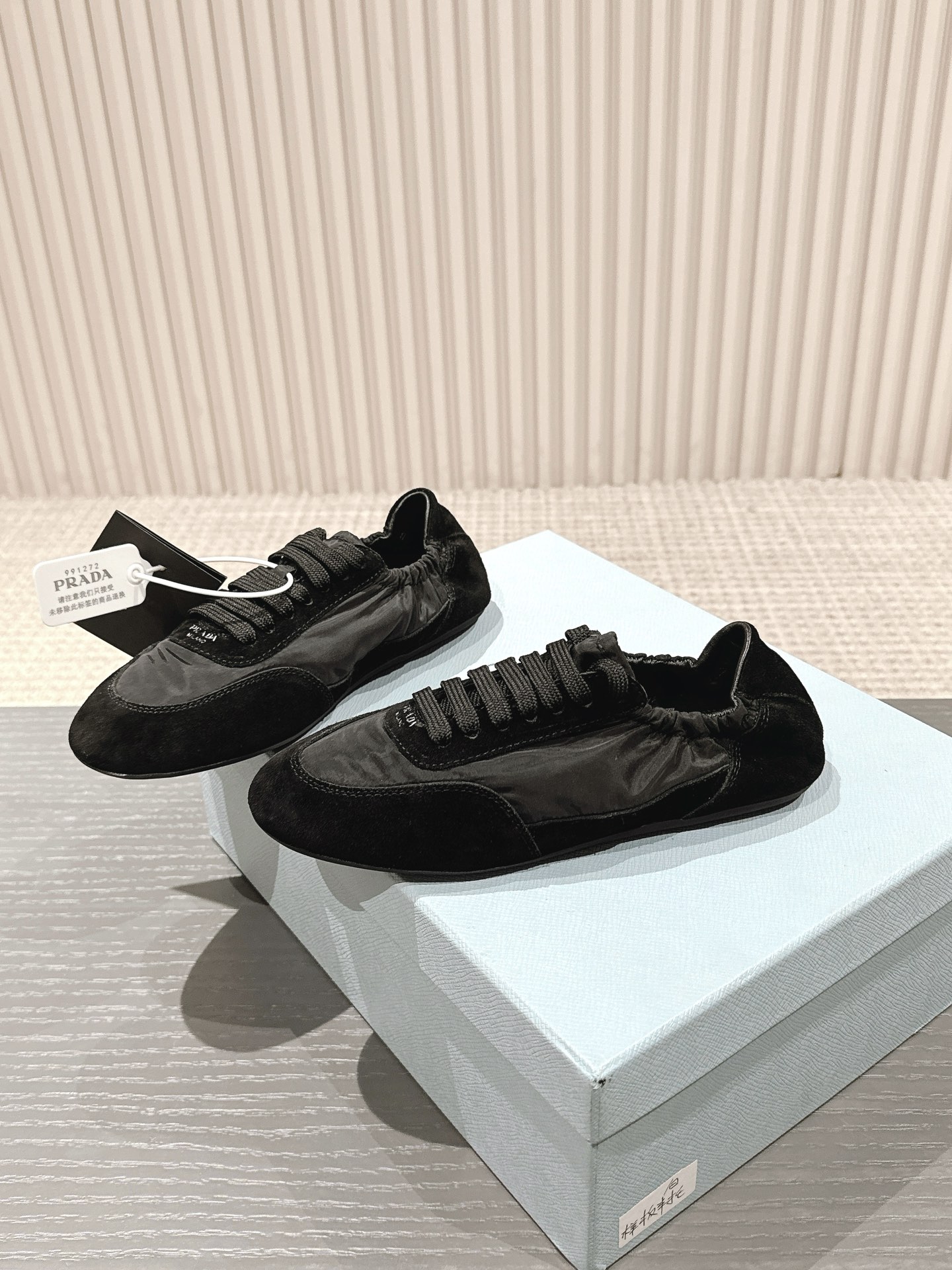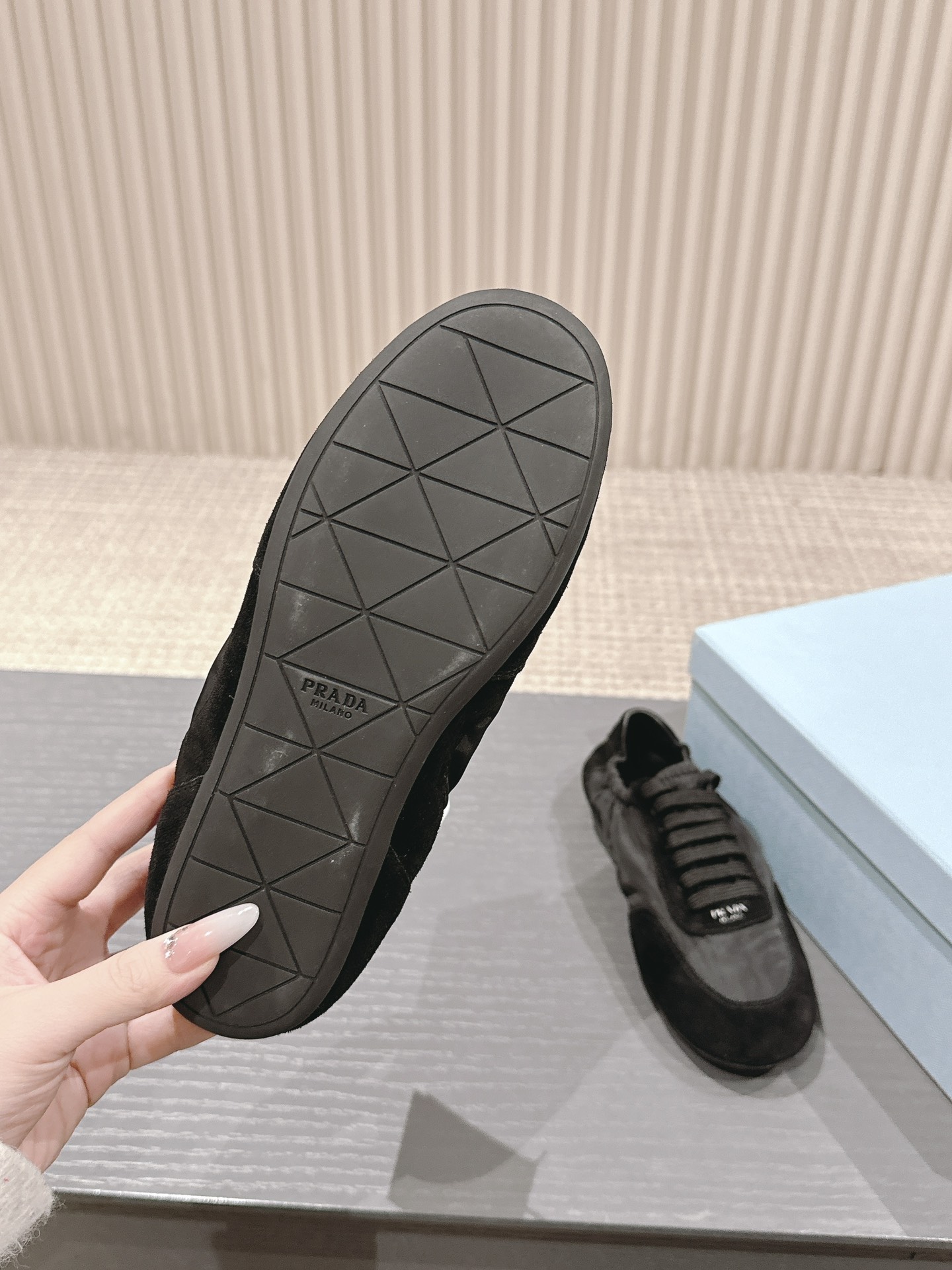 這款鞋子是AAAAA 1:1 質量(非常棒). 使用了和原版一模一樣的材料. 商標部分也保持了和普拉達/Prada一樣. 圖片拍攝是實物鞋子拍攝, 您所收到的實物保證和我們圖片一模一樣.