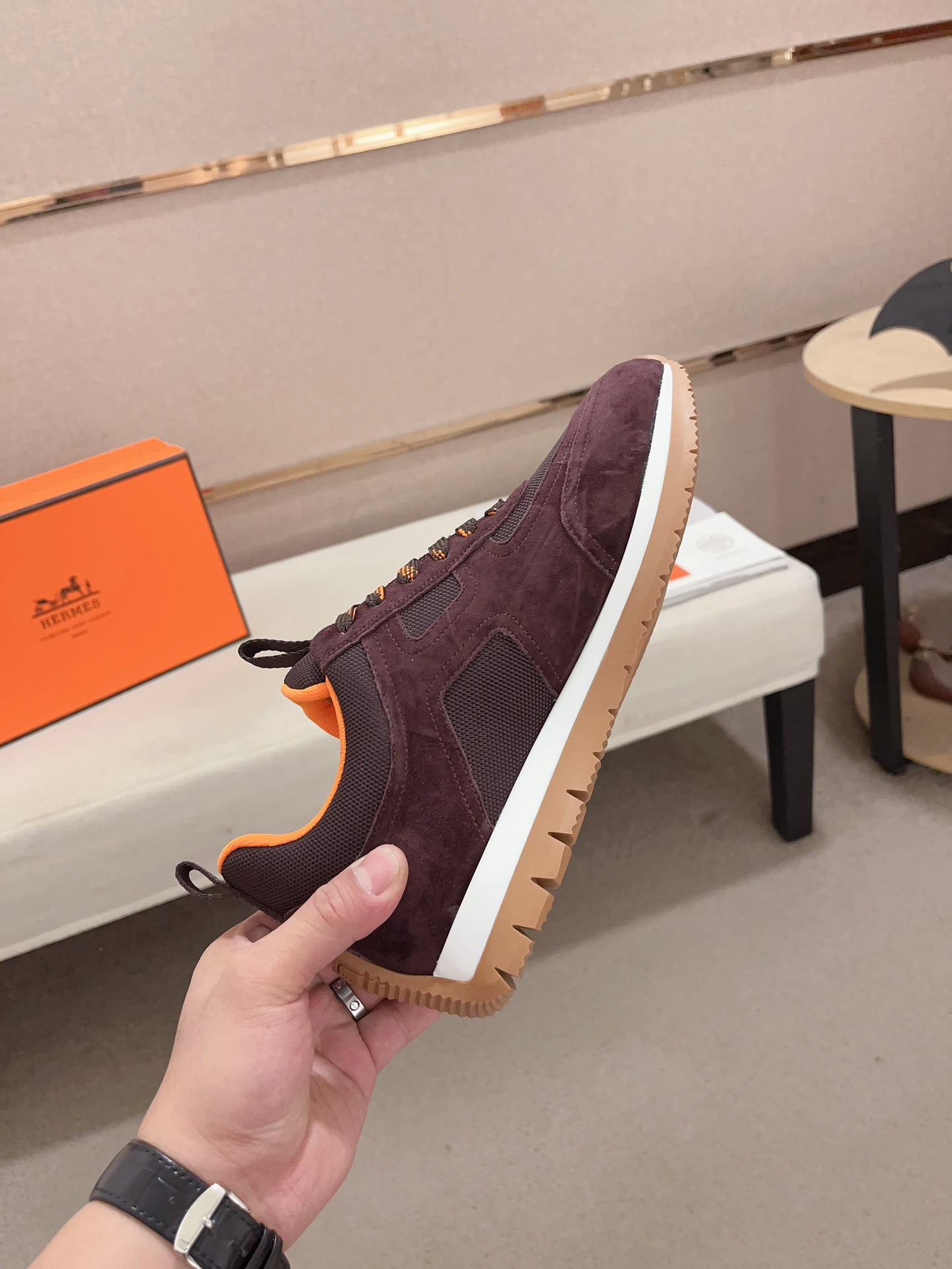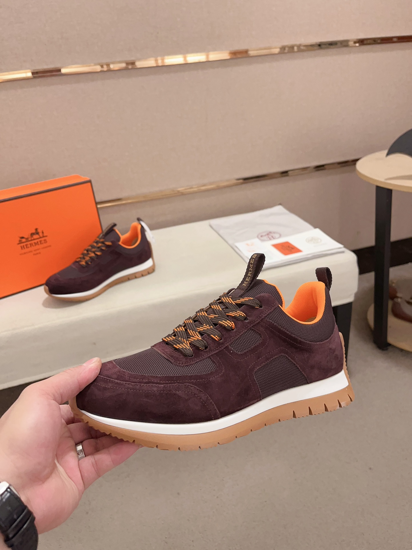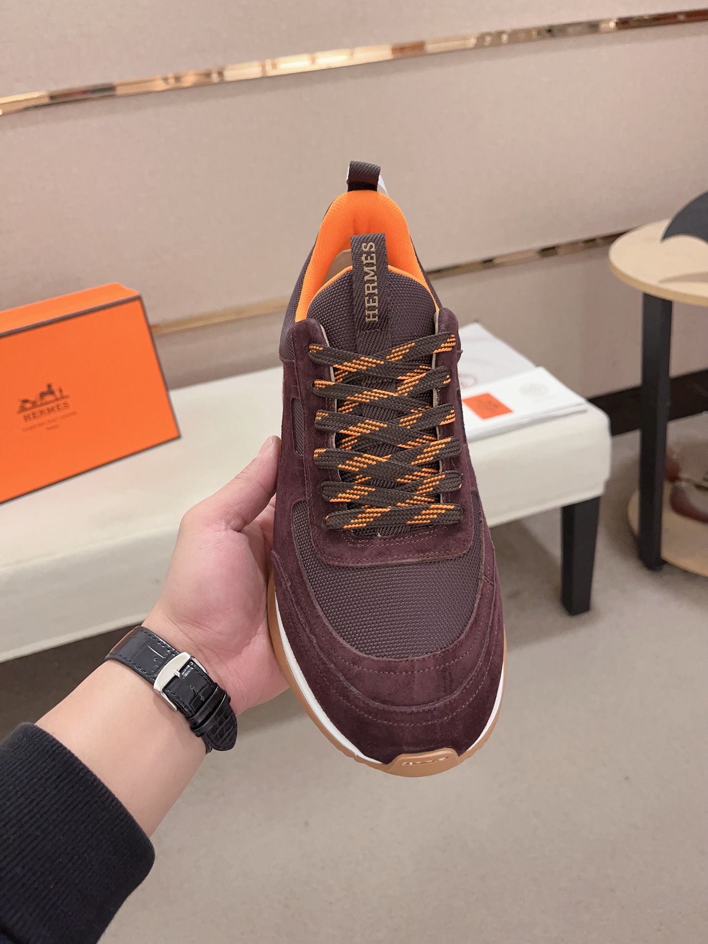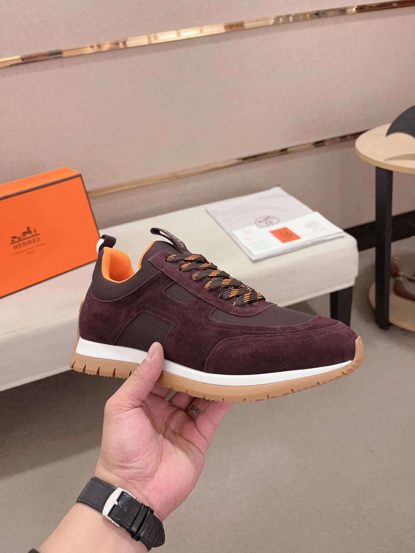 這款鞋子是AAAAA 1:1 質量(非常棒). 使用了和原版一模一樣的材料. 商標部分也保持了和愛馬仕/Hermes一樣. 圖片拍攝是實物鞋子拍攝, 您所收到的實物保證和我們圖片一模一樣.