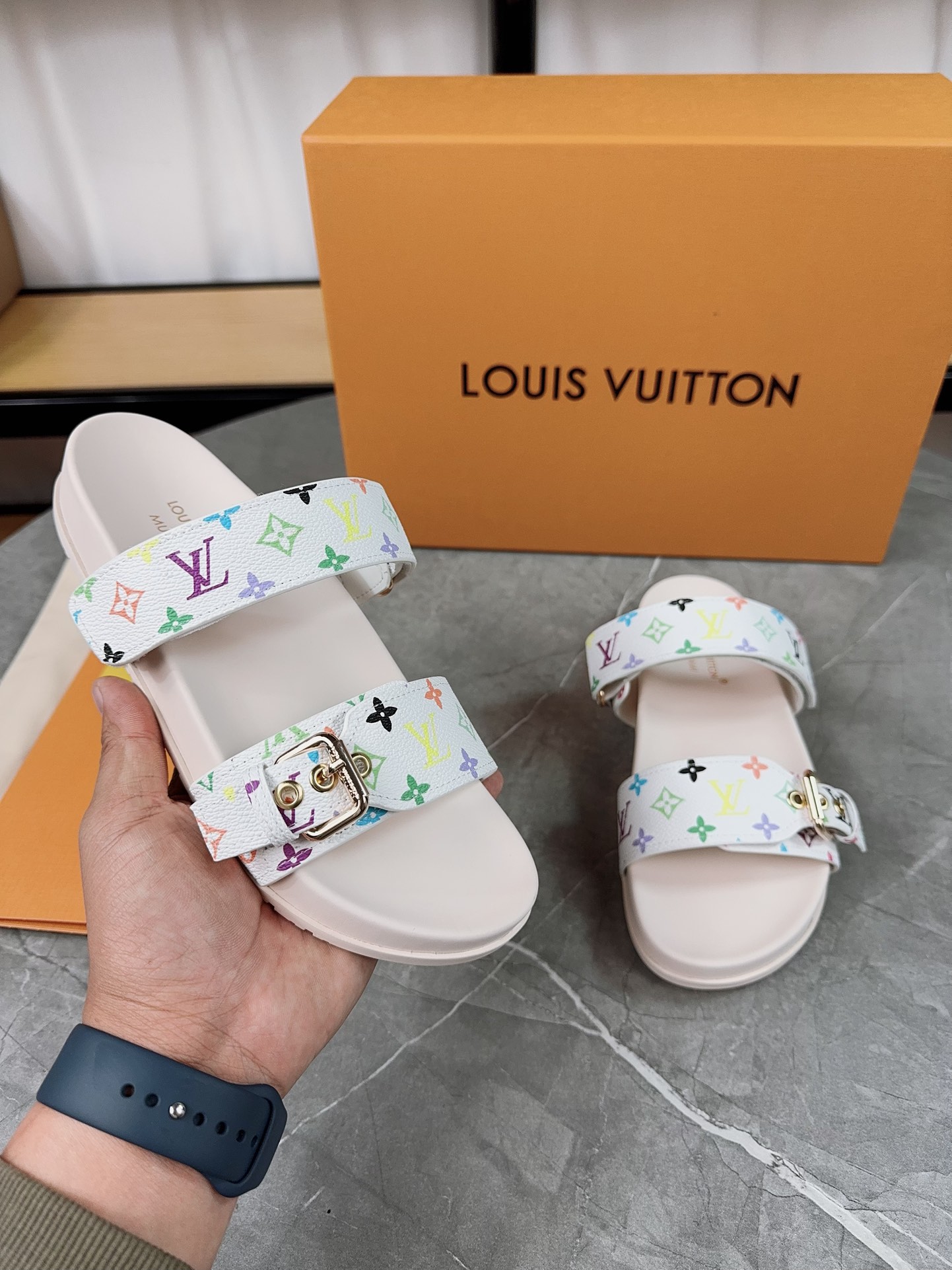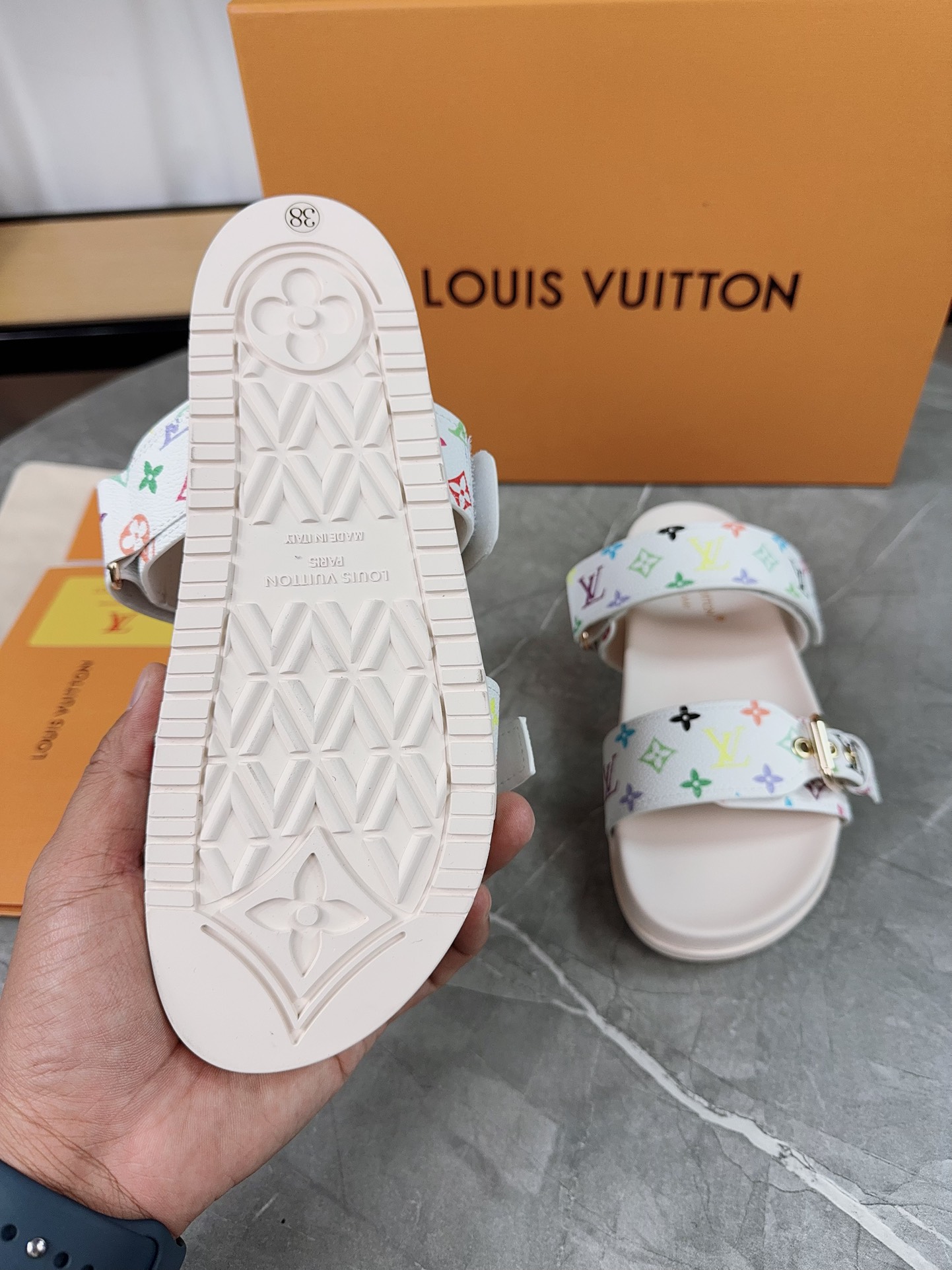 這款鞋子是AAAAA 1:1 質量(非常棒). 使用了和原版一模一樣的材料. 商標部分也保持了和路易威登/Louis Vuitton一樣. 圖片拍攝是實物鞋子拍攝, 您所收到的實物保證和我們圖片一模一樣.