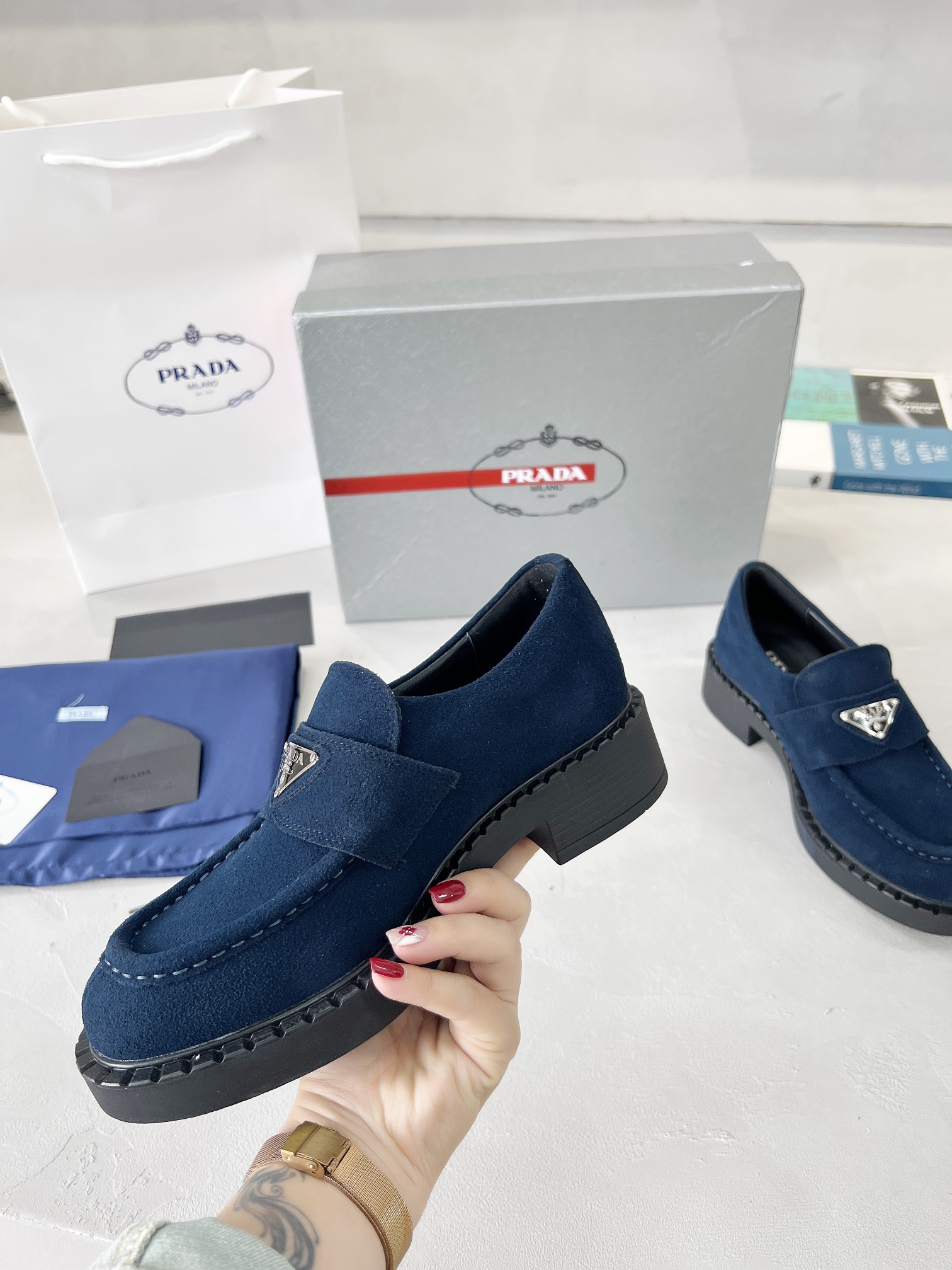 這款鞋子是AAAAA 1:1 質量(非常棒). 使用了和原版一模一樣的材料. 商標部分也保持了和普拉達/Prada一樣. 圖片拍攝是實物鞋子拍攝, 您所收到的實物保證和我們圖片一模一樣.