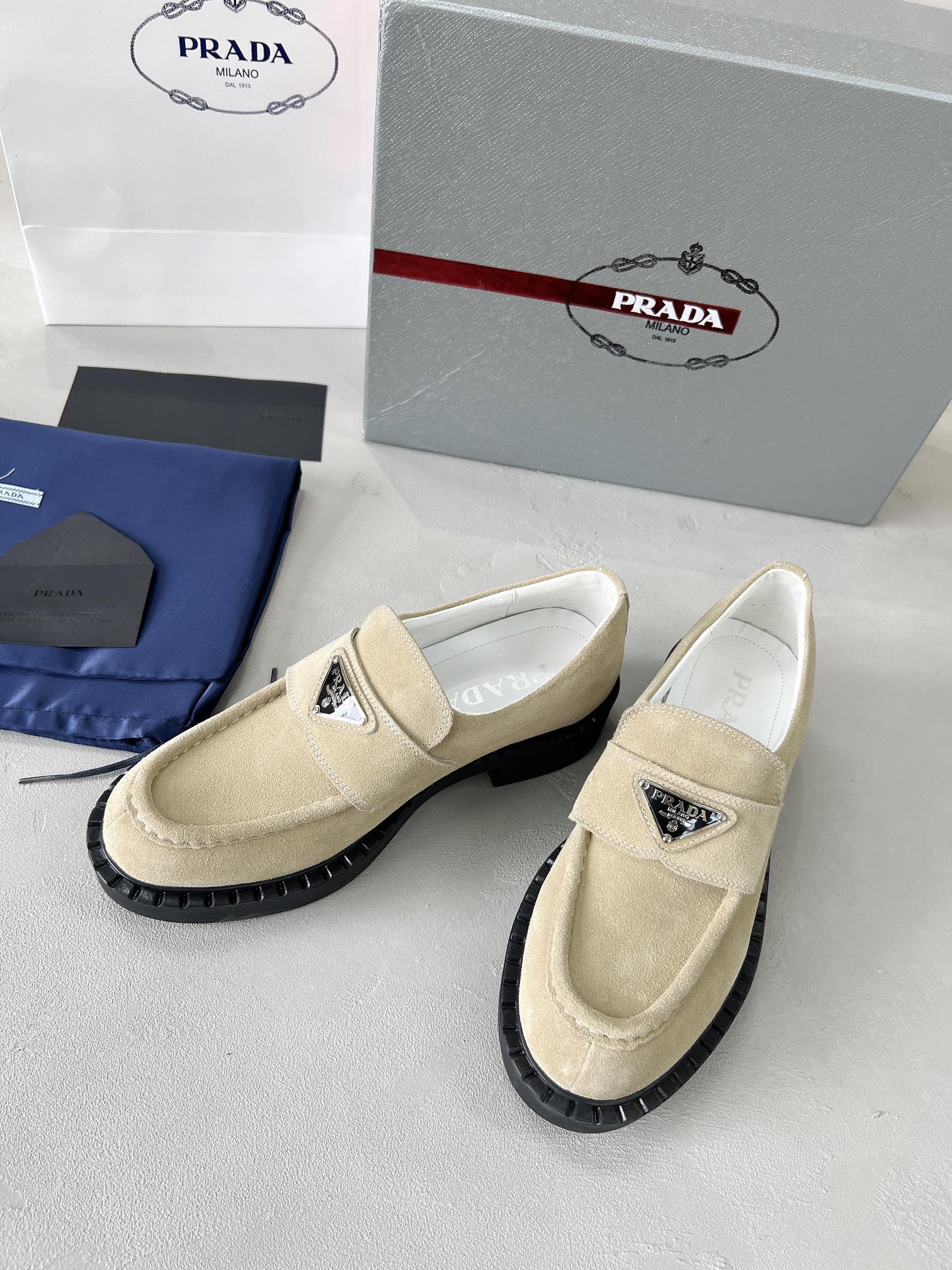 這款鞋子是AAAAA 1:1 質量(非常棒). 使用了和原版一模一樣的材料. 商標部分也保持了和普拉達/Prada一樣. 圖片拍攝是實物鞋子拍攝, 您所收到的實物保證和我們圖片一模一樣.