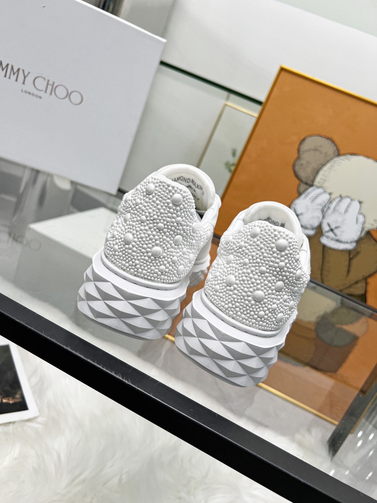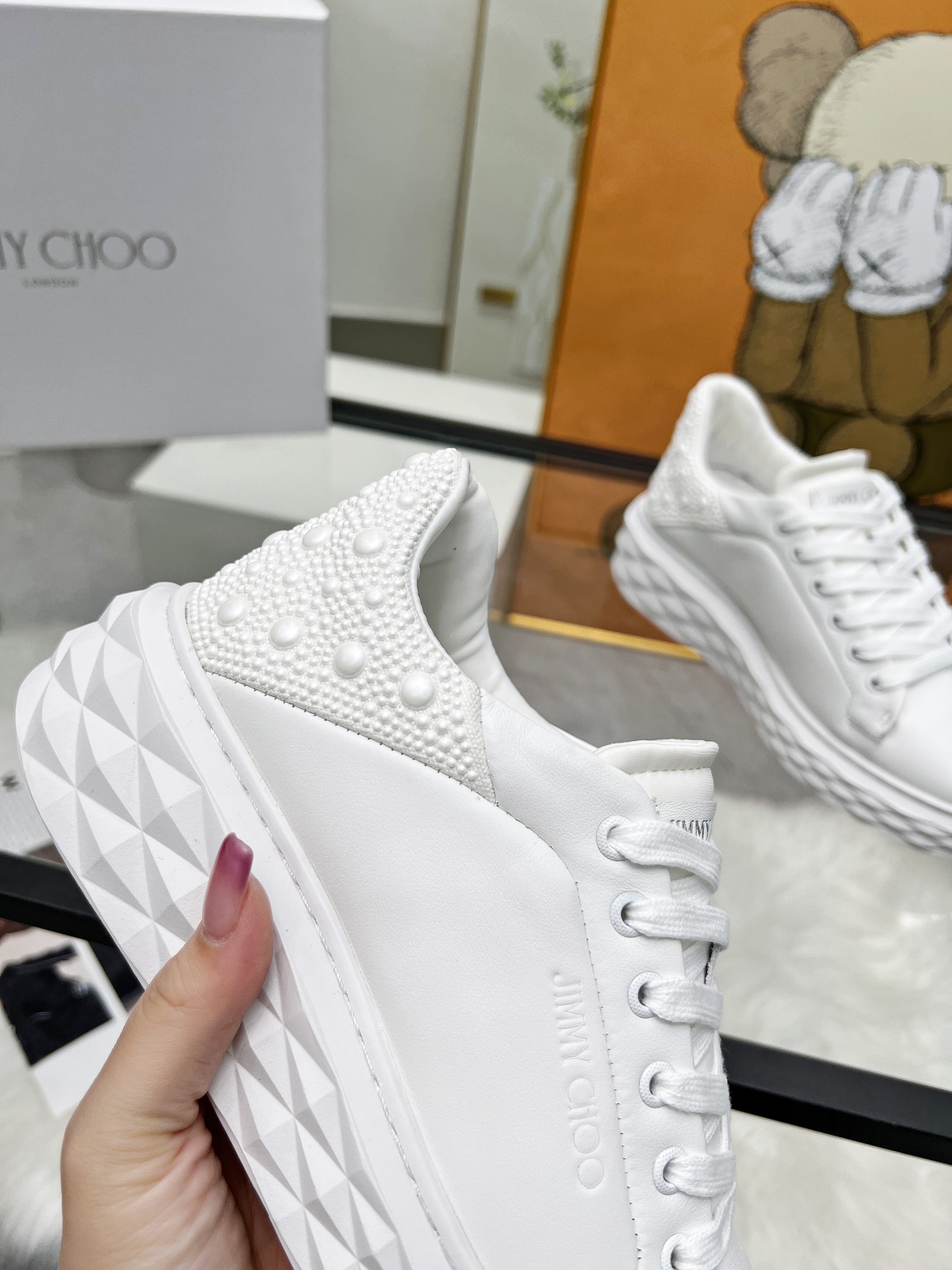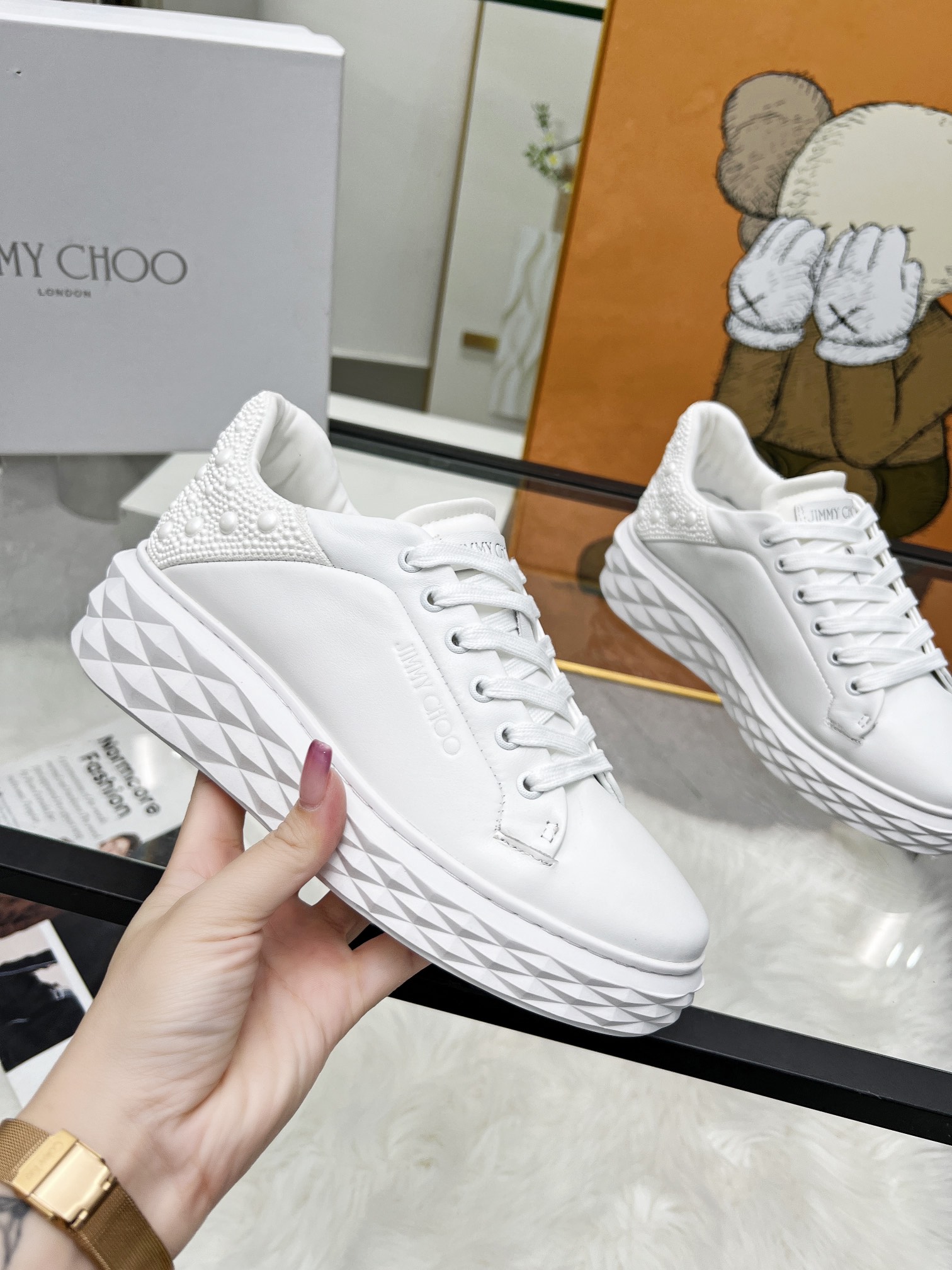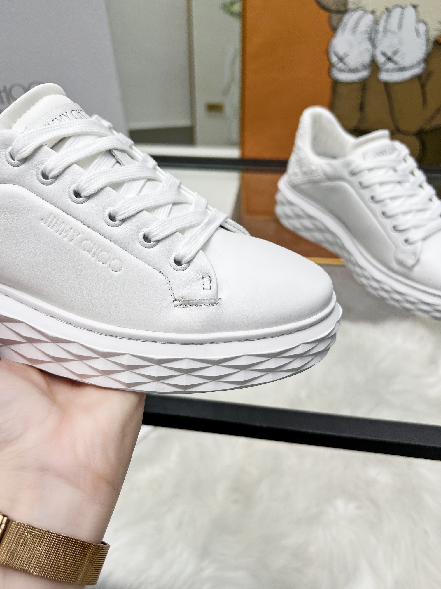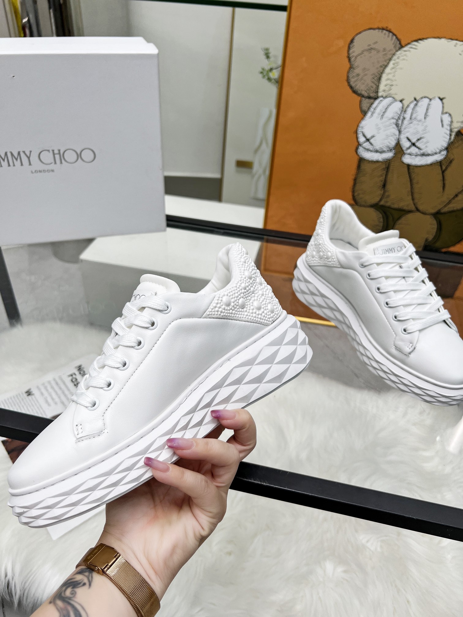 這款鞋子是AAAAA 1:1 質量(非常棒). 使用了和原版一模一樣的材料. 商標部分也保持了和吉米喬/JIMMY CHOO一樣. 圖片拍攝是實物鞋子拍攝, 您所收到的實物保證和我們圖片一模一樣.