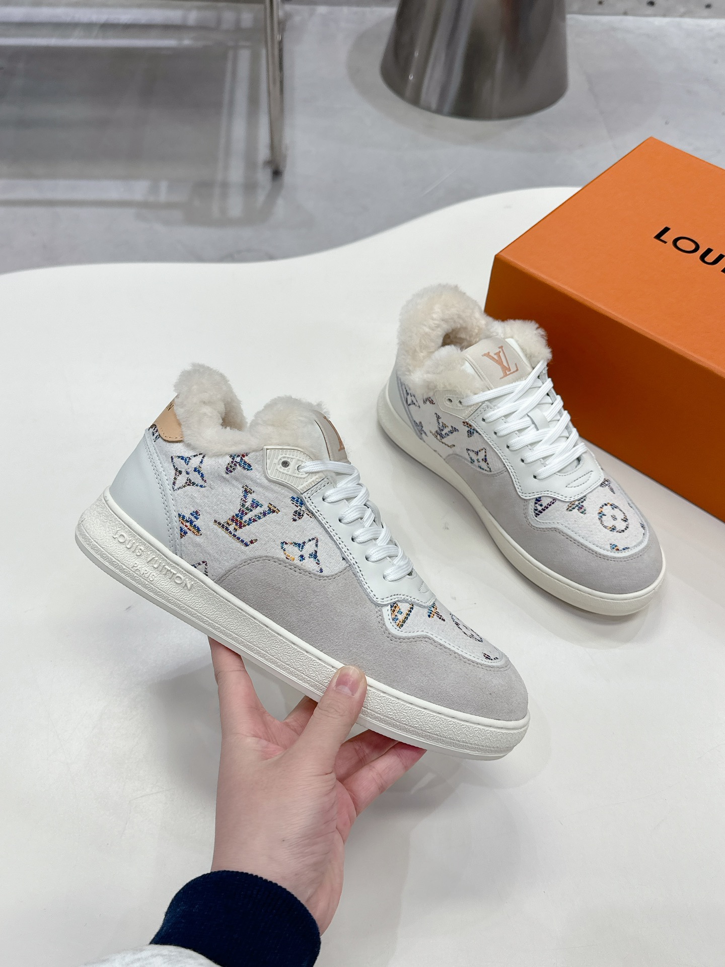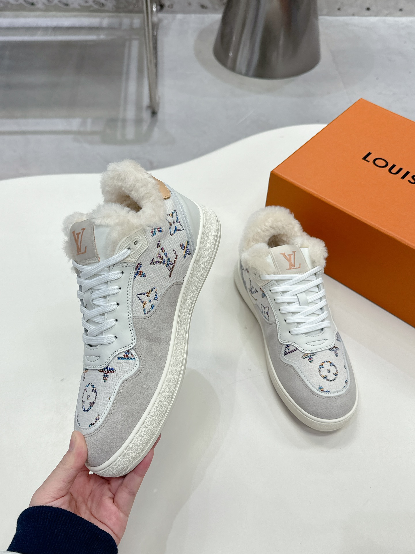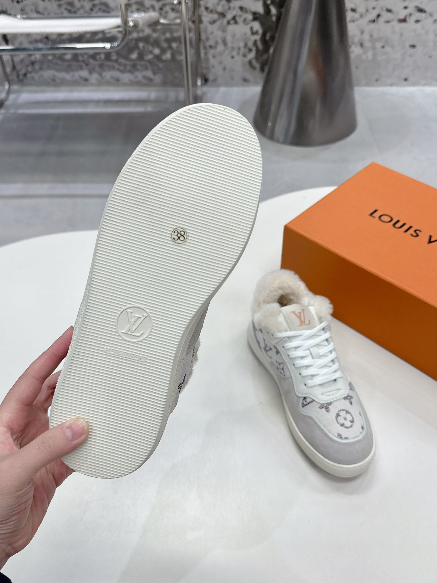 這款鞋子是AAAAA 1:1 質量(非常棒). 使用了和原版一模一樣的材料. 商標部分也保持了和路易威登/Louis Vuitton一樣. 圖片拍攝是實物鞋子拍攝, 您所收到的實物保證和我們圖片一模一樣.
