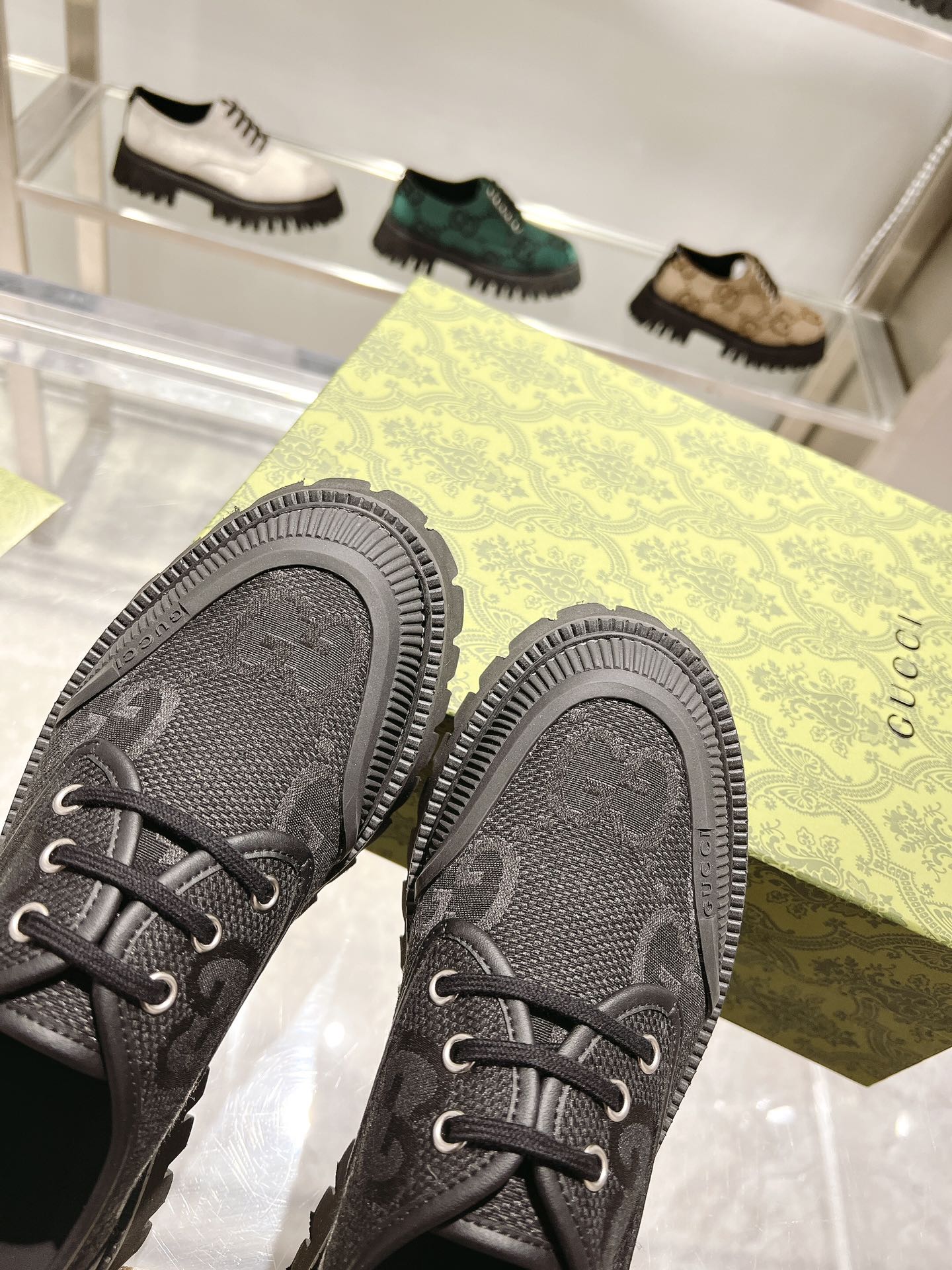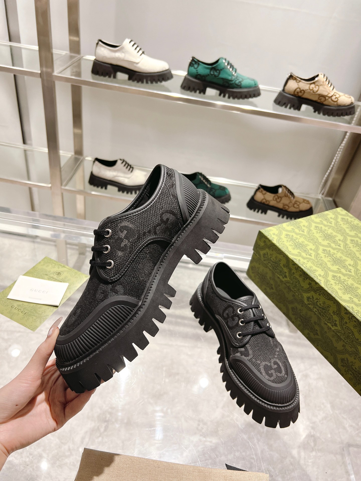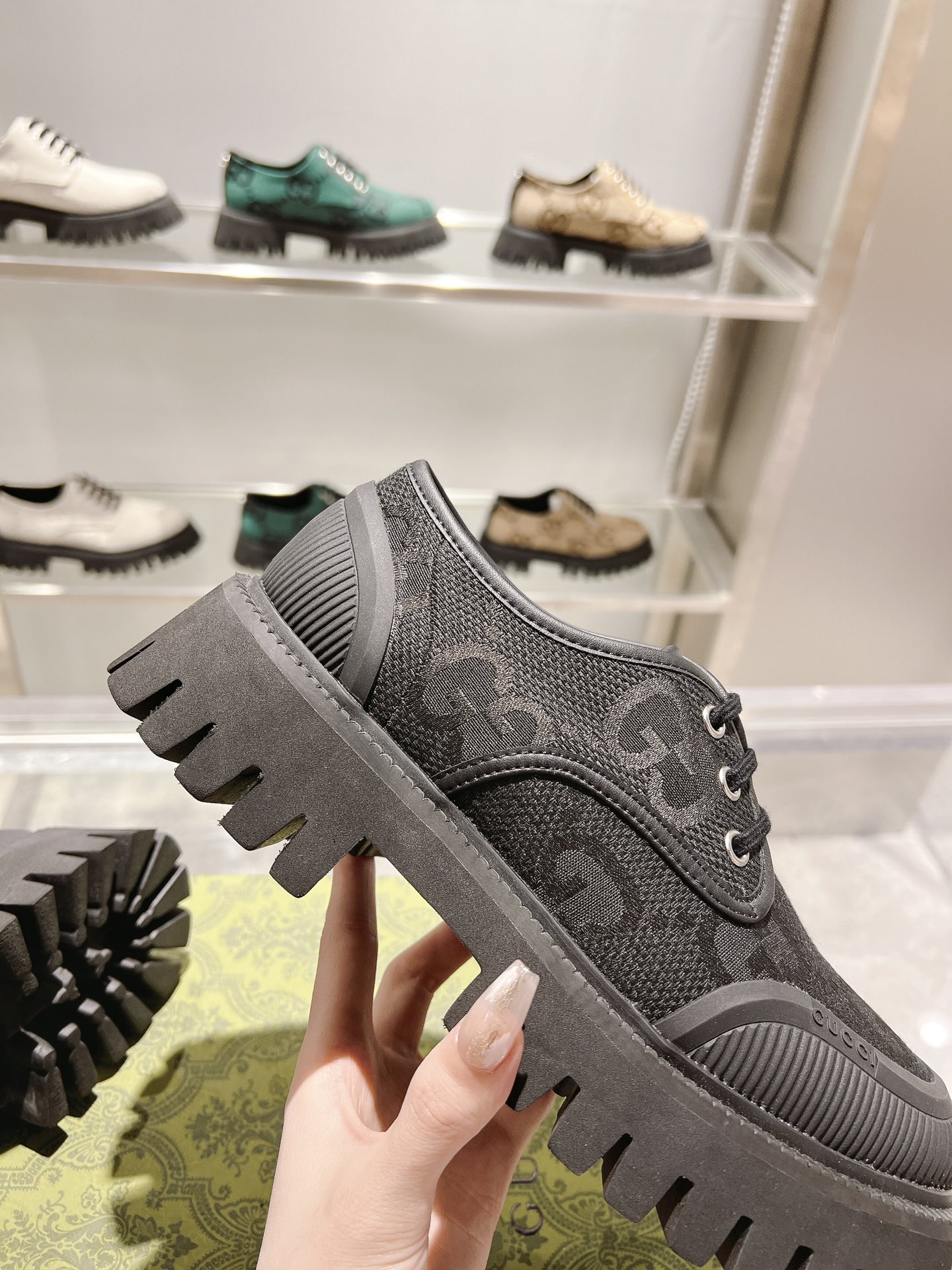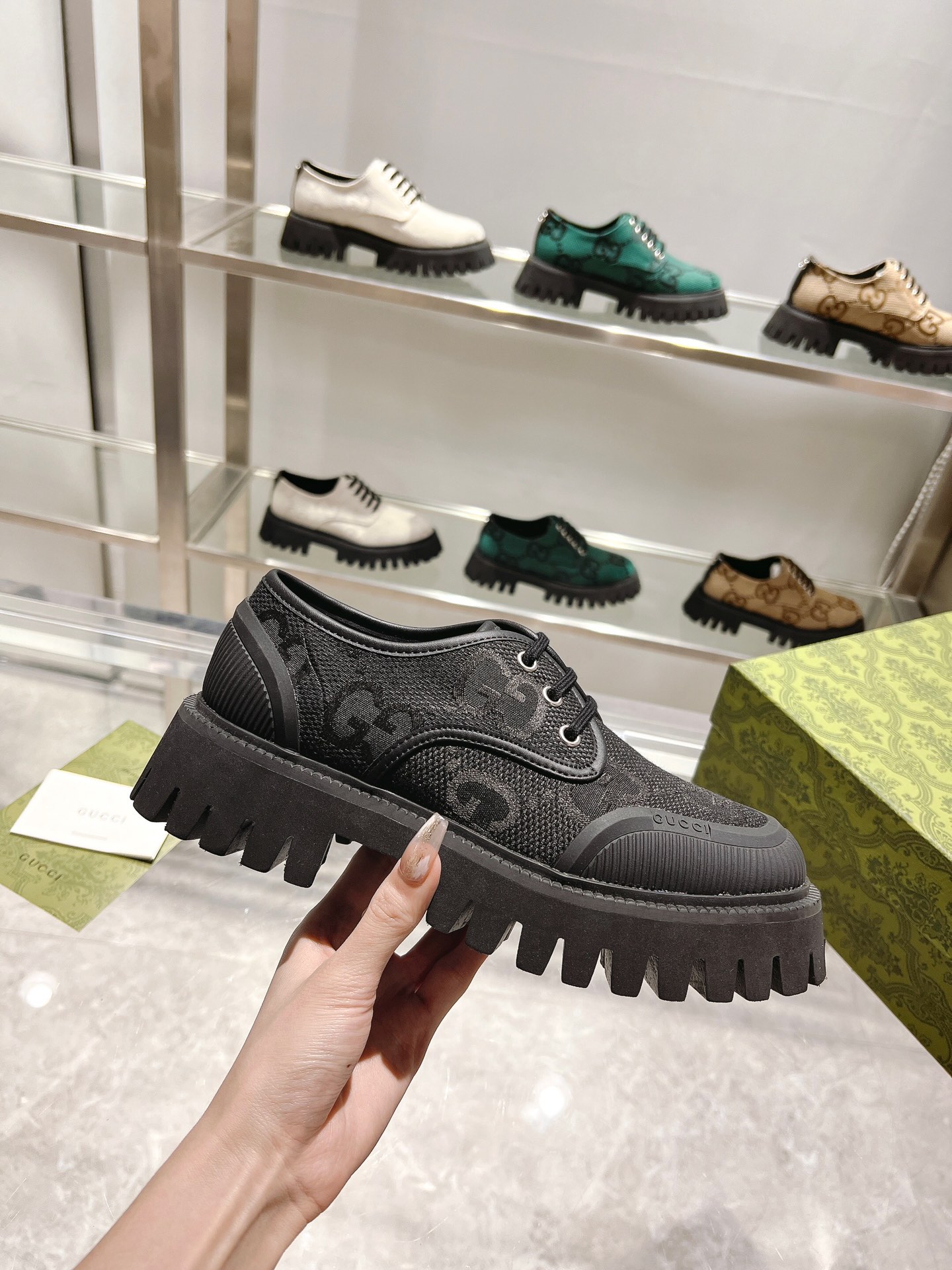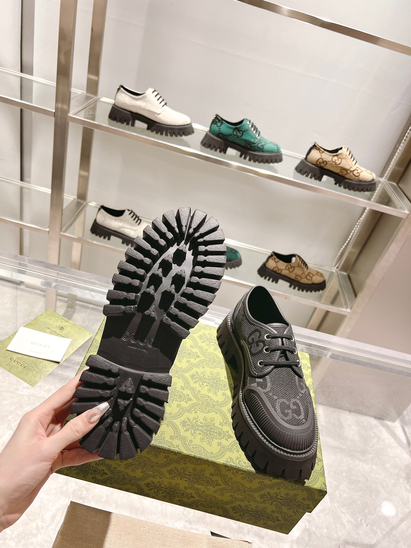 這款鞋子是AAAAA 1:1 質量(非常棒). 使用了和原版一模一樣的材料. 商標部分也保持了和古奇/Gucci一樣. 圖片拍攝是實物鞋子拍攝, 您所收到的實物保證和我們圖片一模一樣.