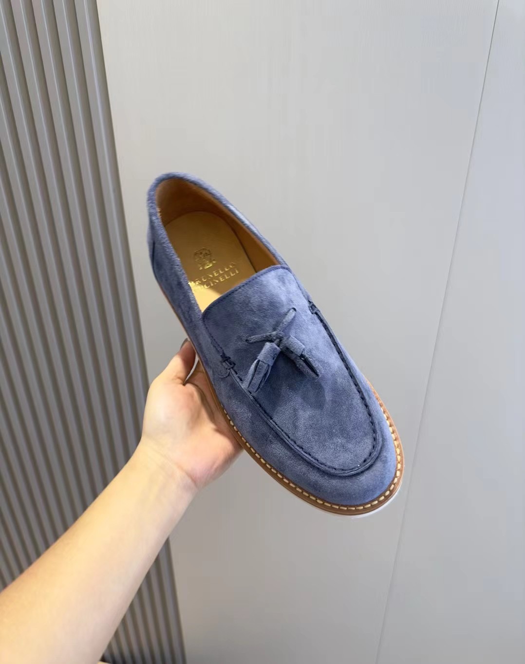 這款鞋子是AAAAA 1:1 質量(非常棒). 使用了和原版一模一樣的材料. 商標部分也保持了和Brunello Cucinelli一樣. 圖片拍攝是實物鞋子拍攝, 您所收到的實物保證和我們圖片一模一樣.