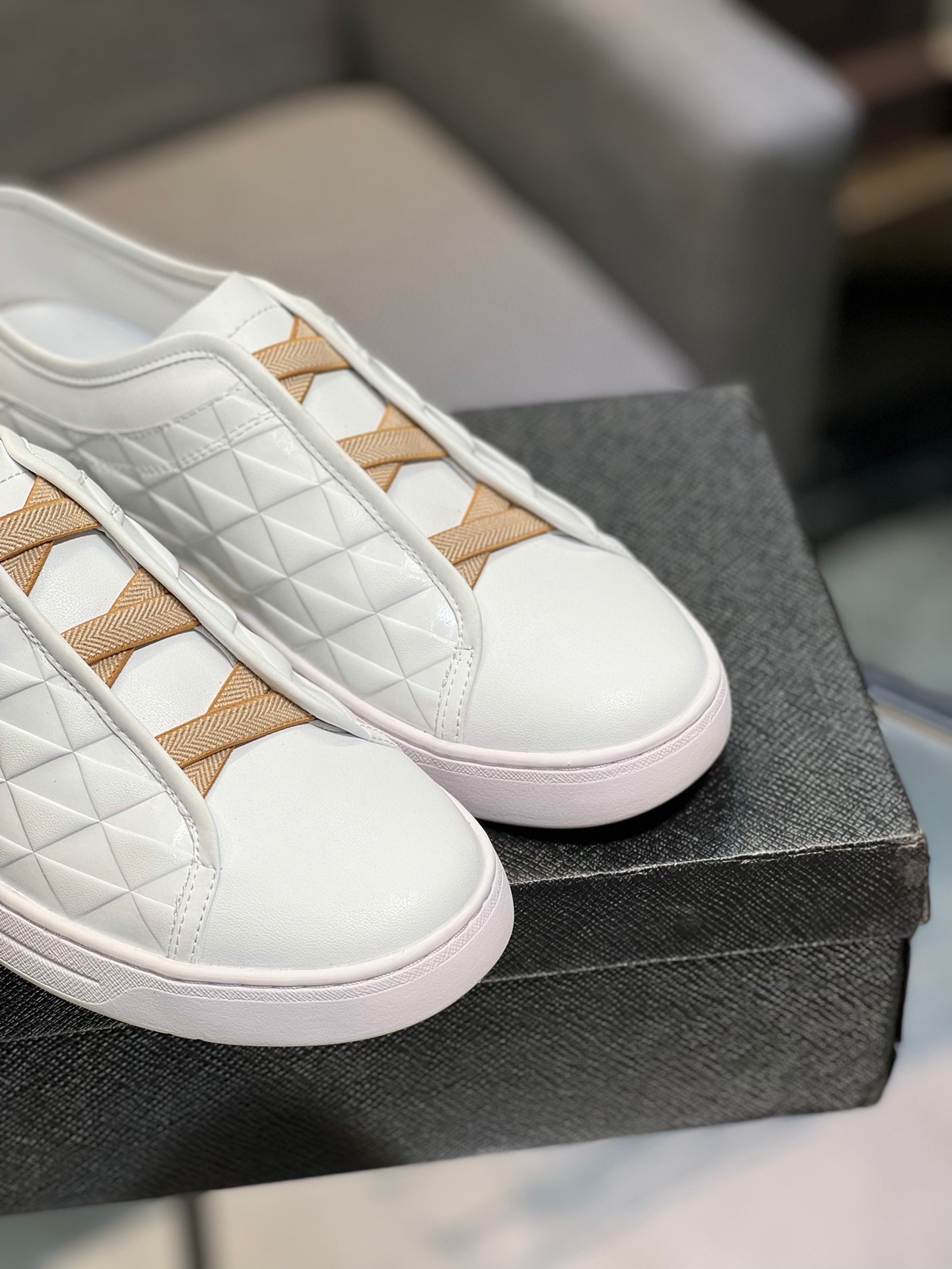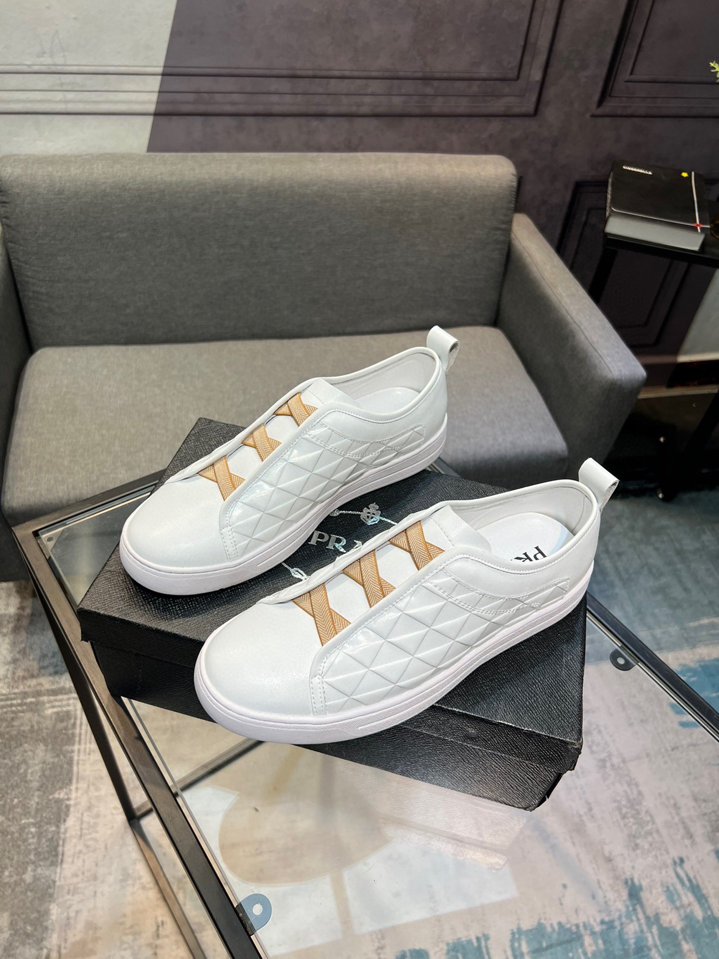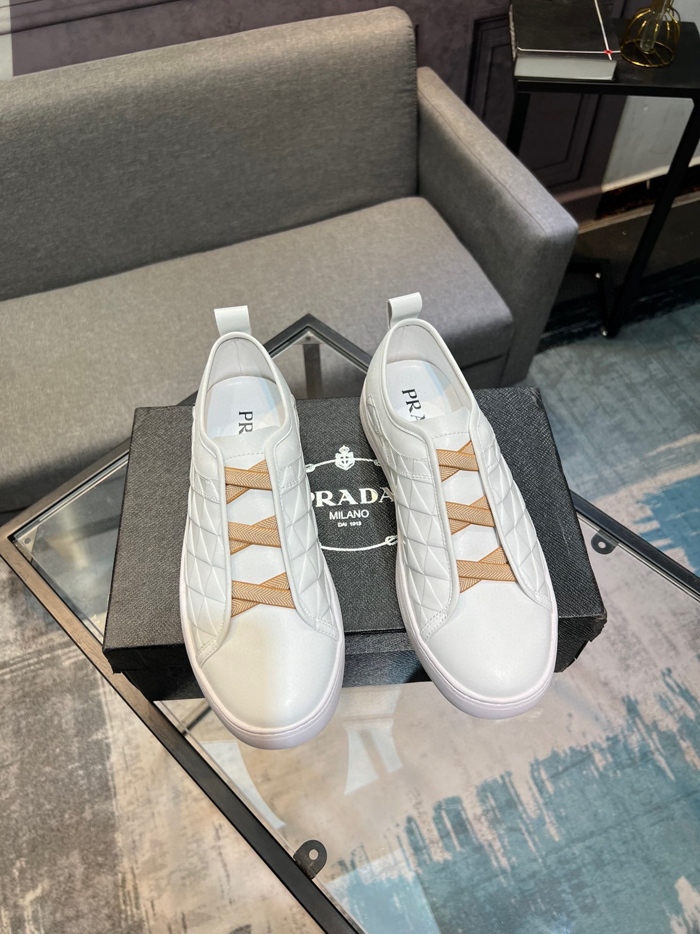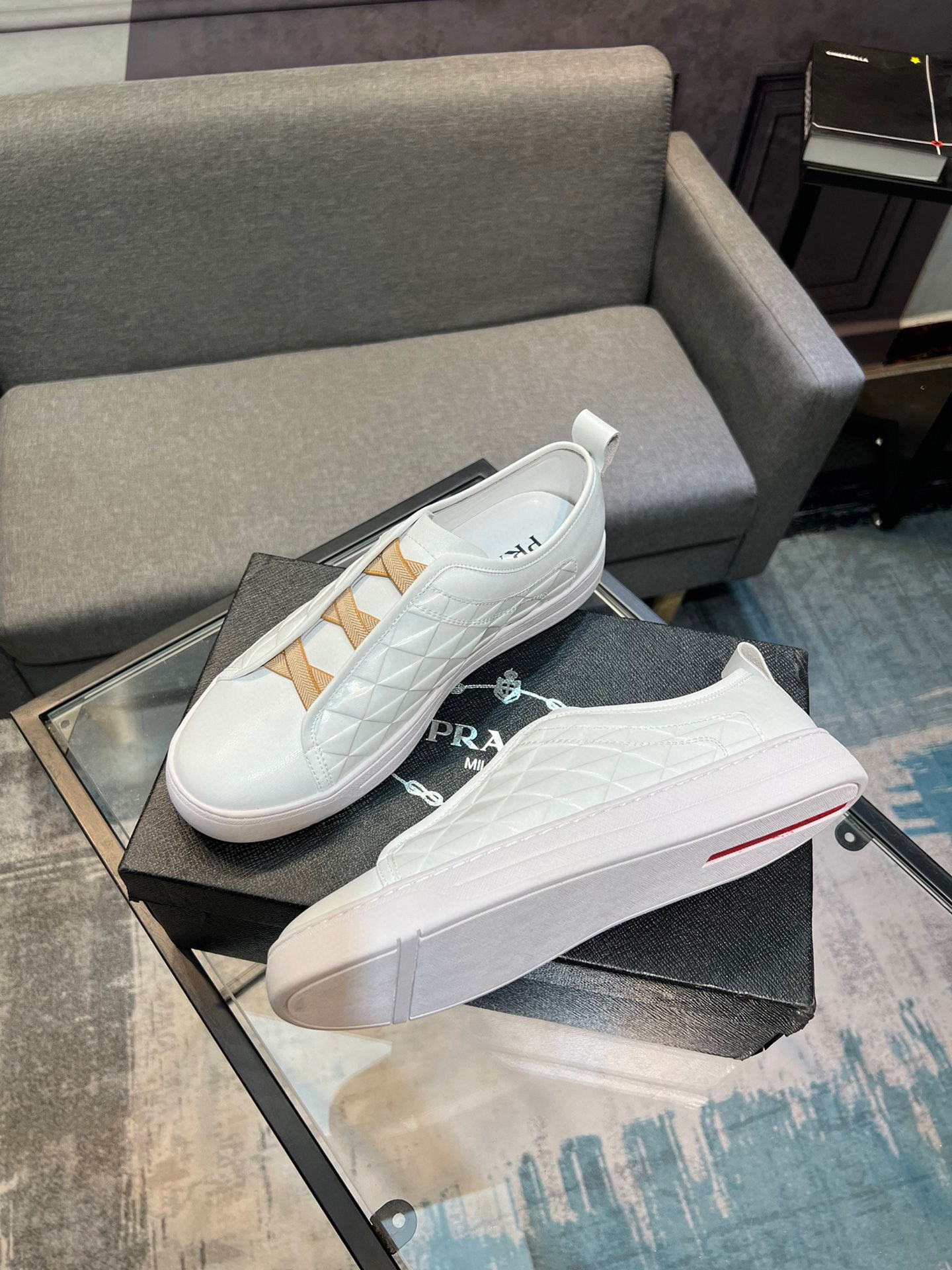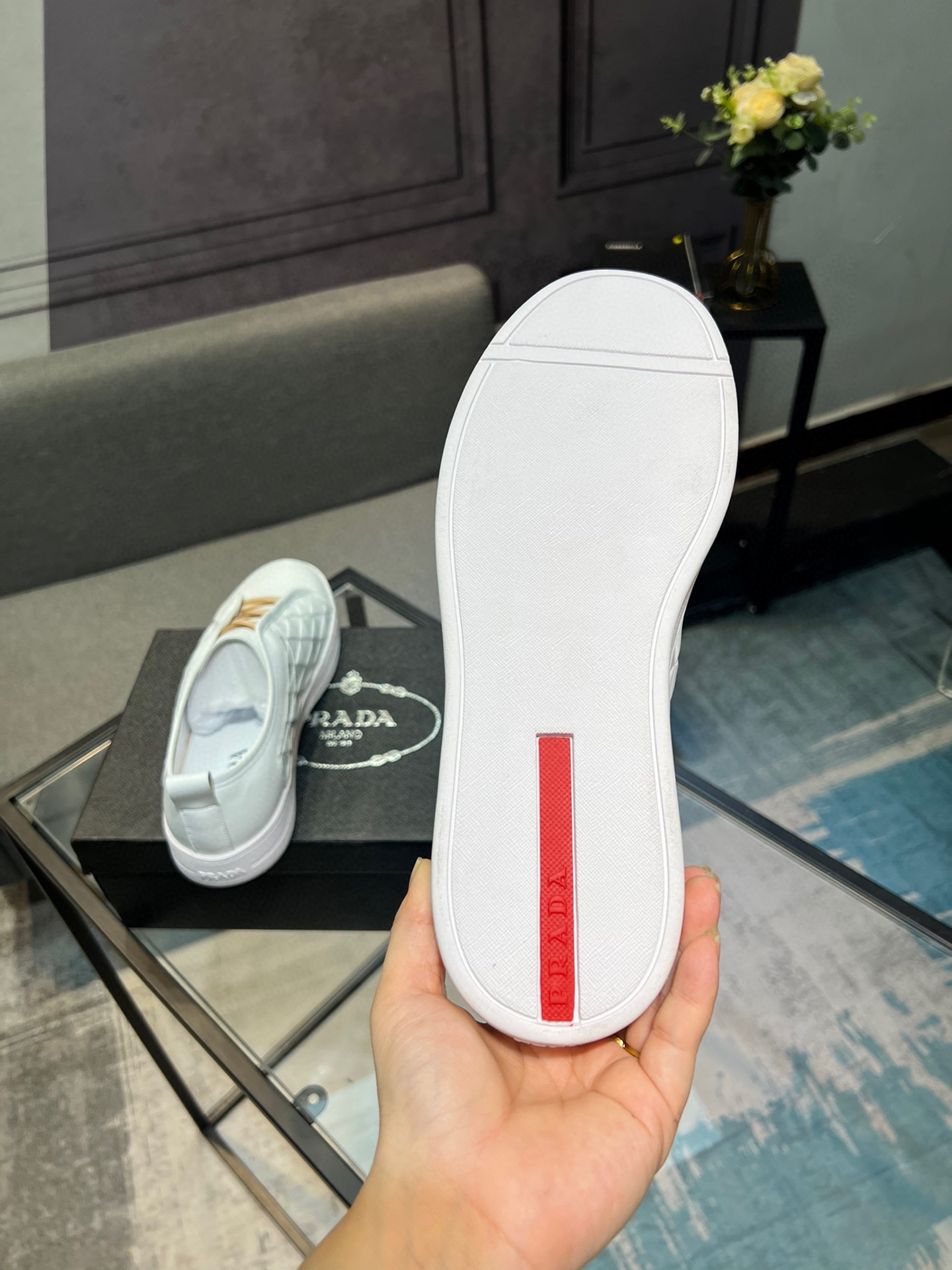這款鞋子是AAAAA 1:1 質量(非常棒). 使用了和原版一模一樣的材料. 商標部分也保持了和普拉達/Prada一樣. 圖片拍攝是實物鞋子拍攝, 您所收到的實物保證和我們圖片一模一樣.