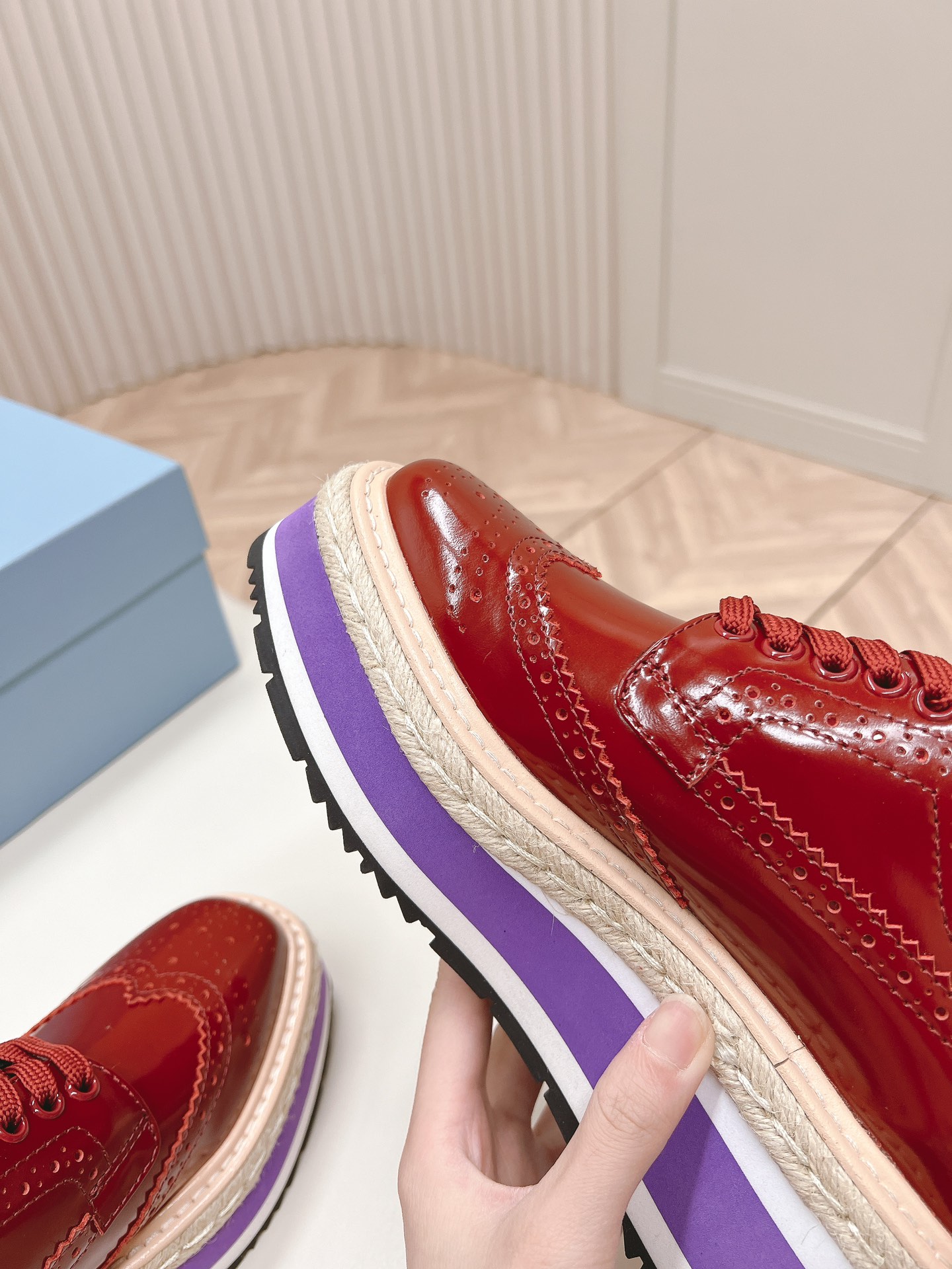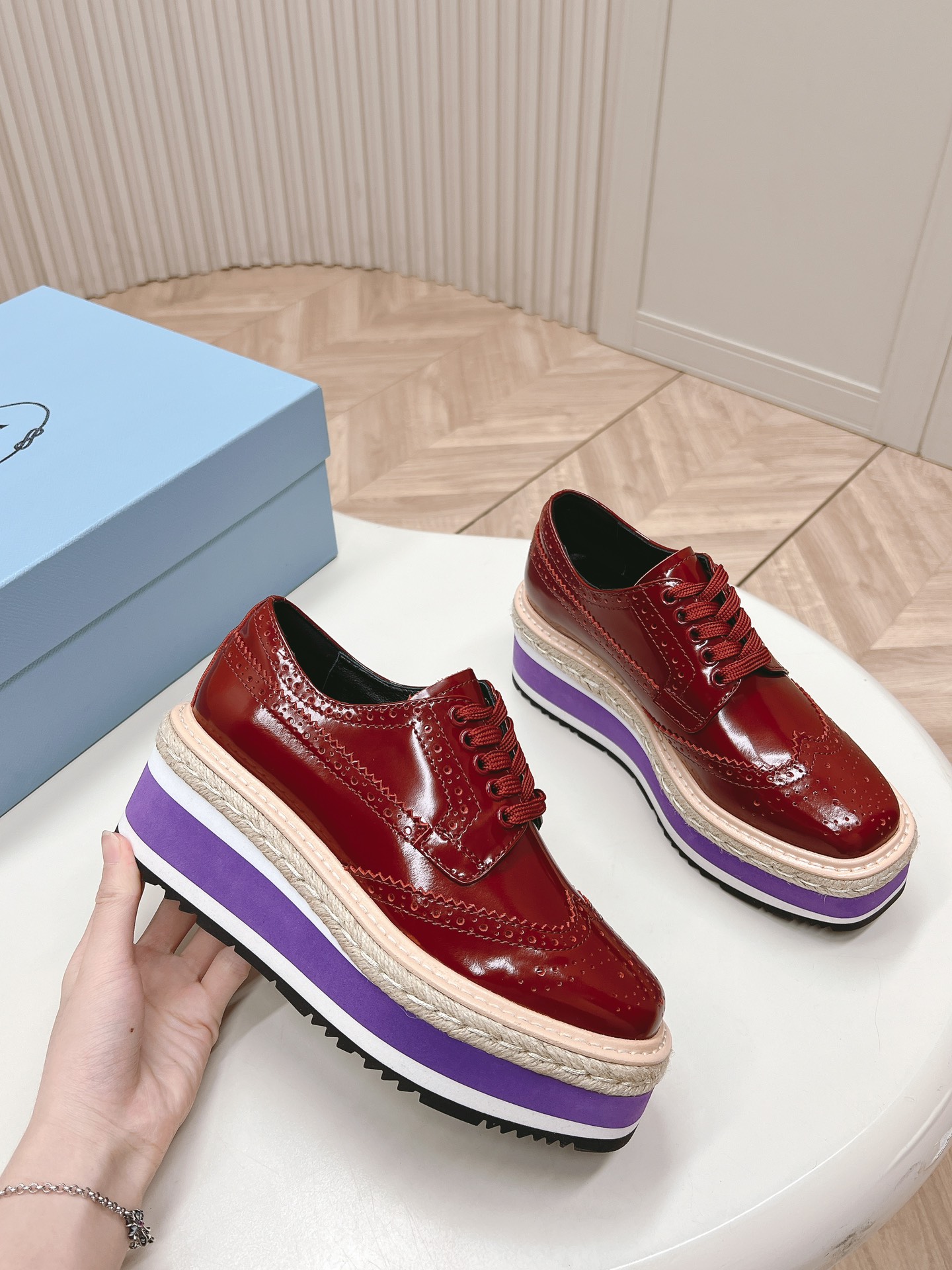 這款鞋子是AAAAA 1:1 質量(非常棒). 使用了和原版一模一樣的材料. 商標部分也保持了和普拉達/Prada一樣. 圖片拍攝是實物鞋子拍攝, 您所收到的實物保證和我們圖片一模一樣.