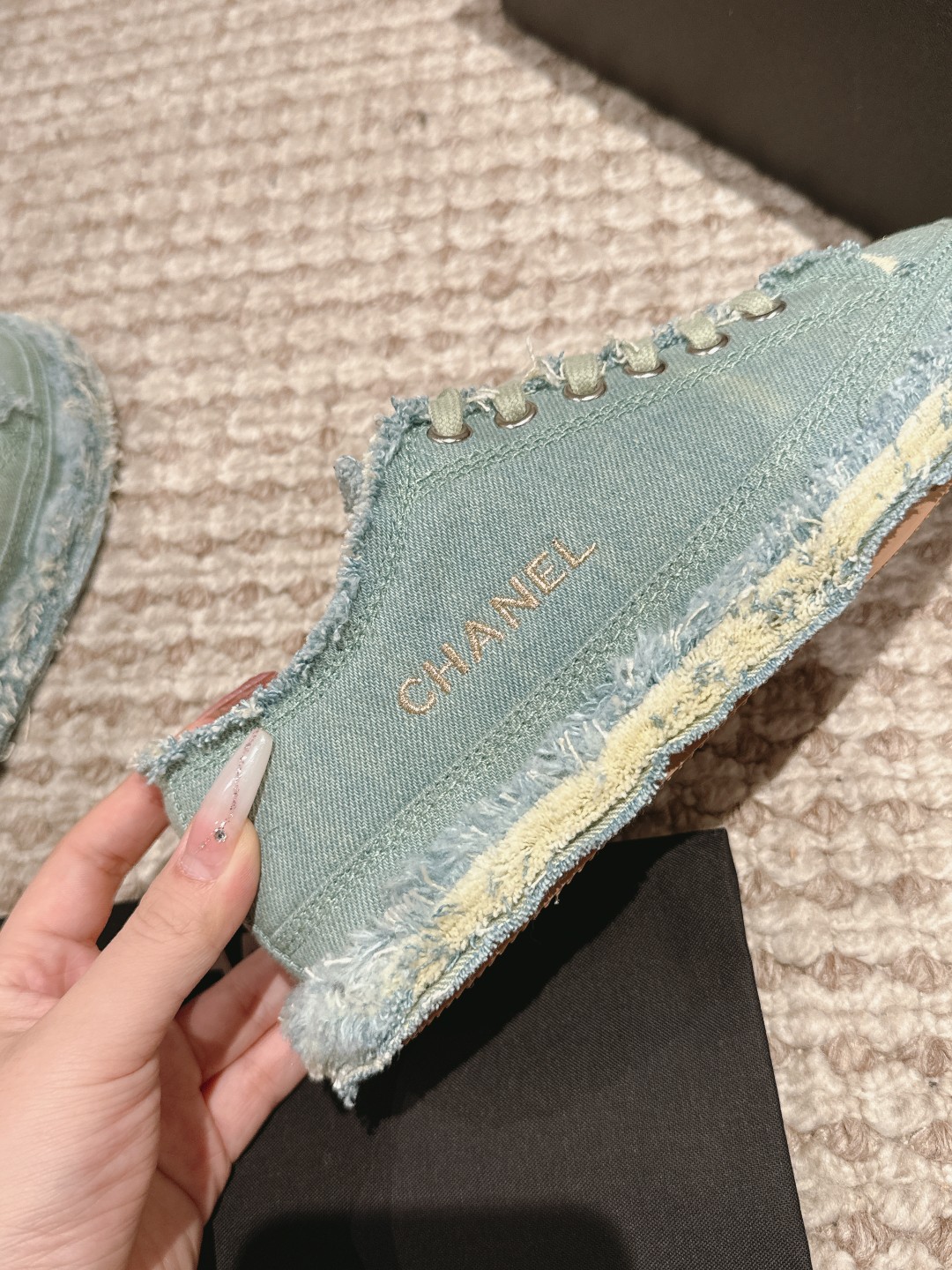 這款鞋子是AAAAA 1:1 質量(非常棒). 使用了和原版一模一樣的材料. 商標部分也保持了和香奈兒/Chanel一樣. 圖片拍攝是實物鞋子拍攝, 您所收到的實物保證和我們圖片一模一樣.