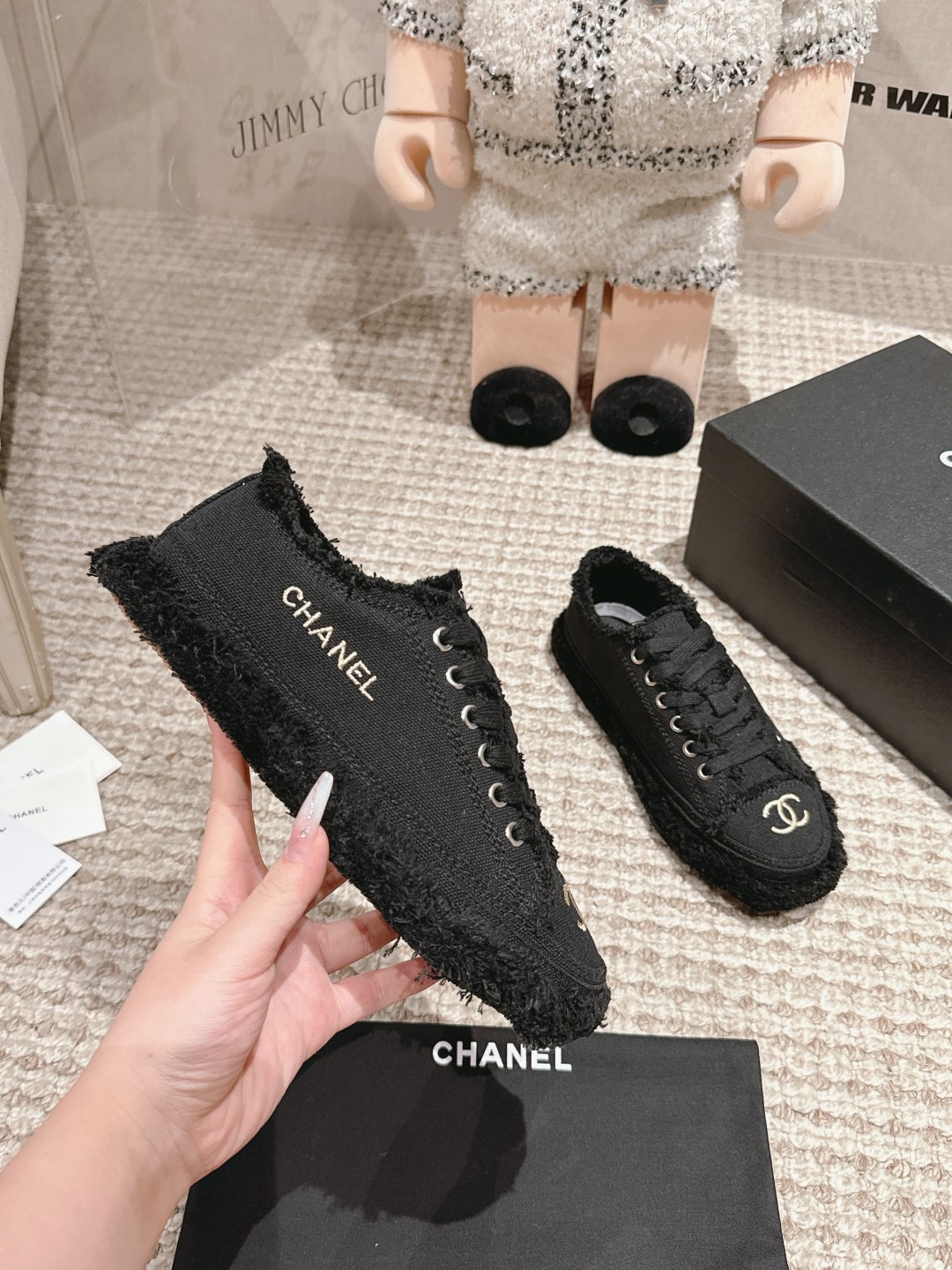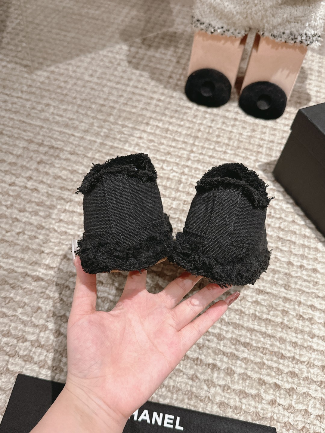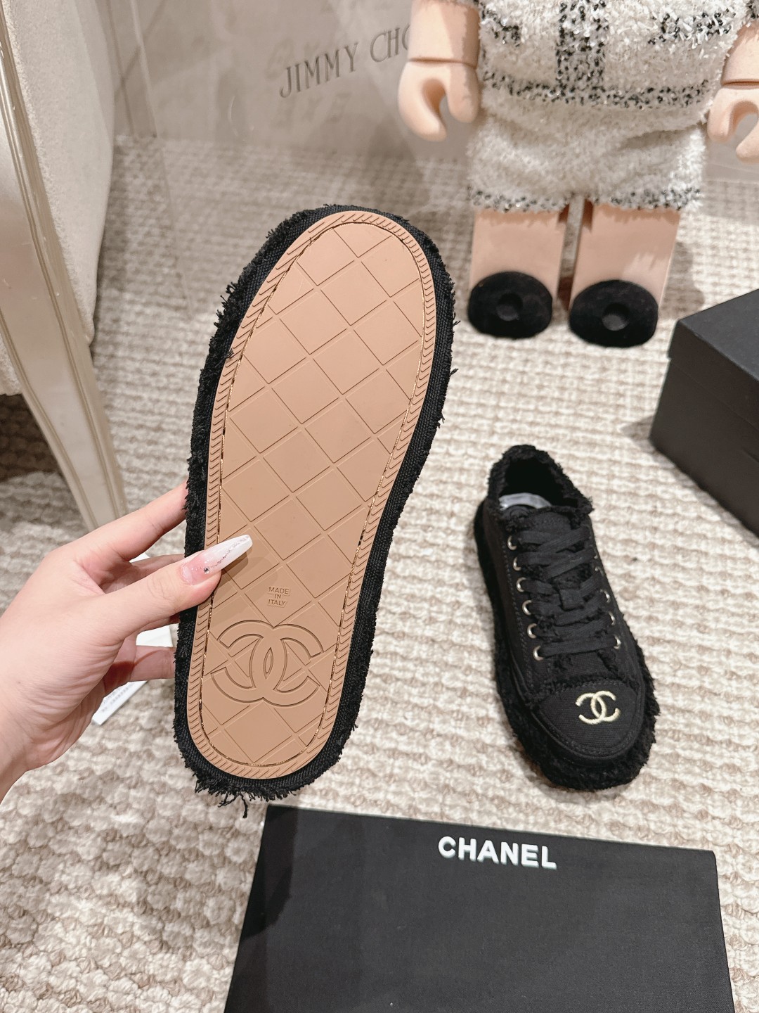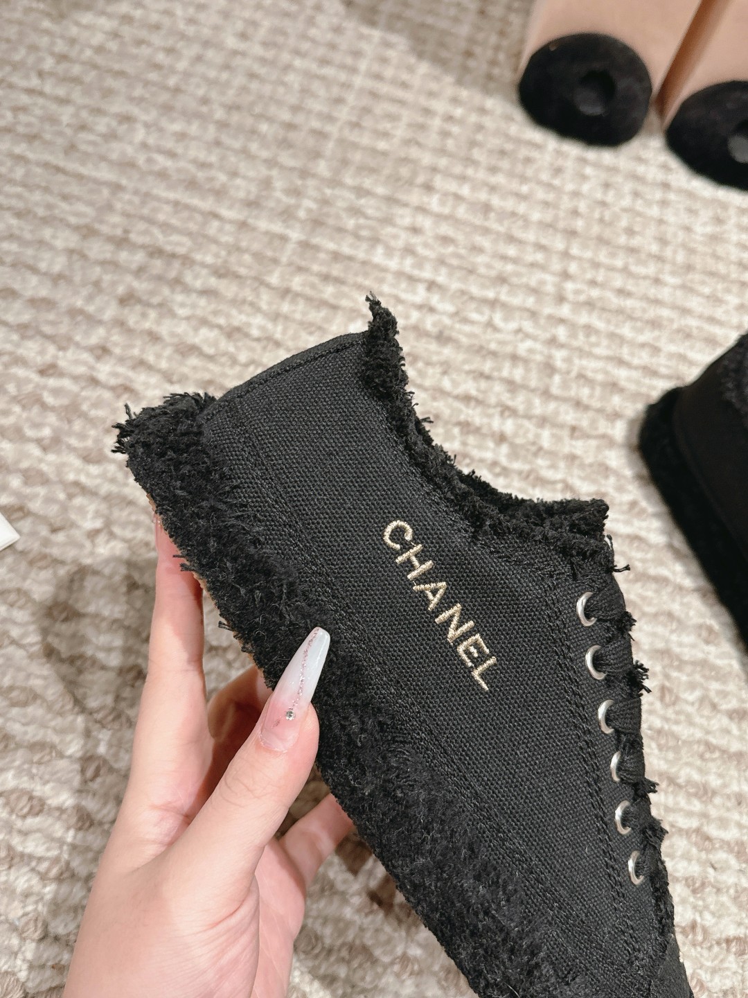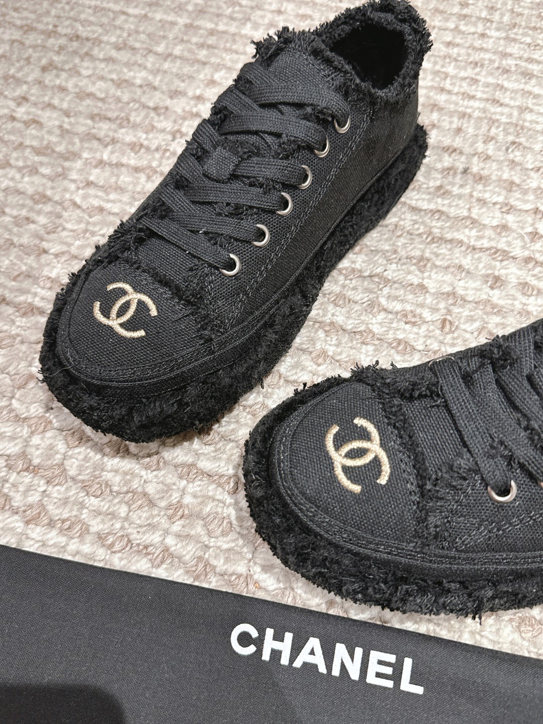 這款鞋子是AAAAA 1:1 質量(非常棒). 使用了和原版一模一樣的材料. 商標部分也保持了和香奈兒/Chanel一樣. 圖片拍攝是實物鞋子拍攝, 您所收到的實物保證和我們圖片一模一樣.