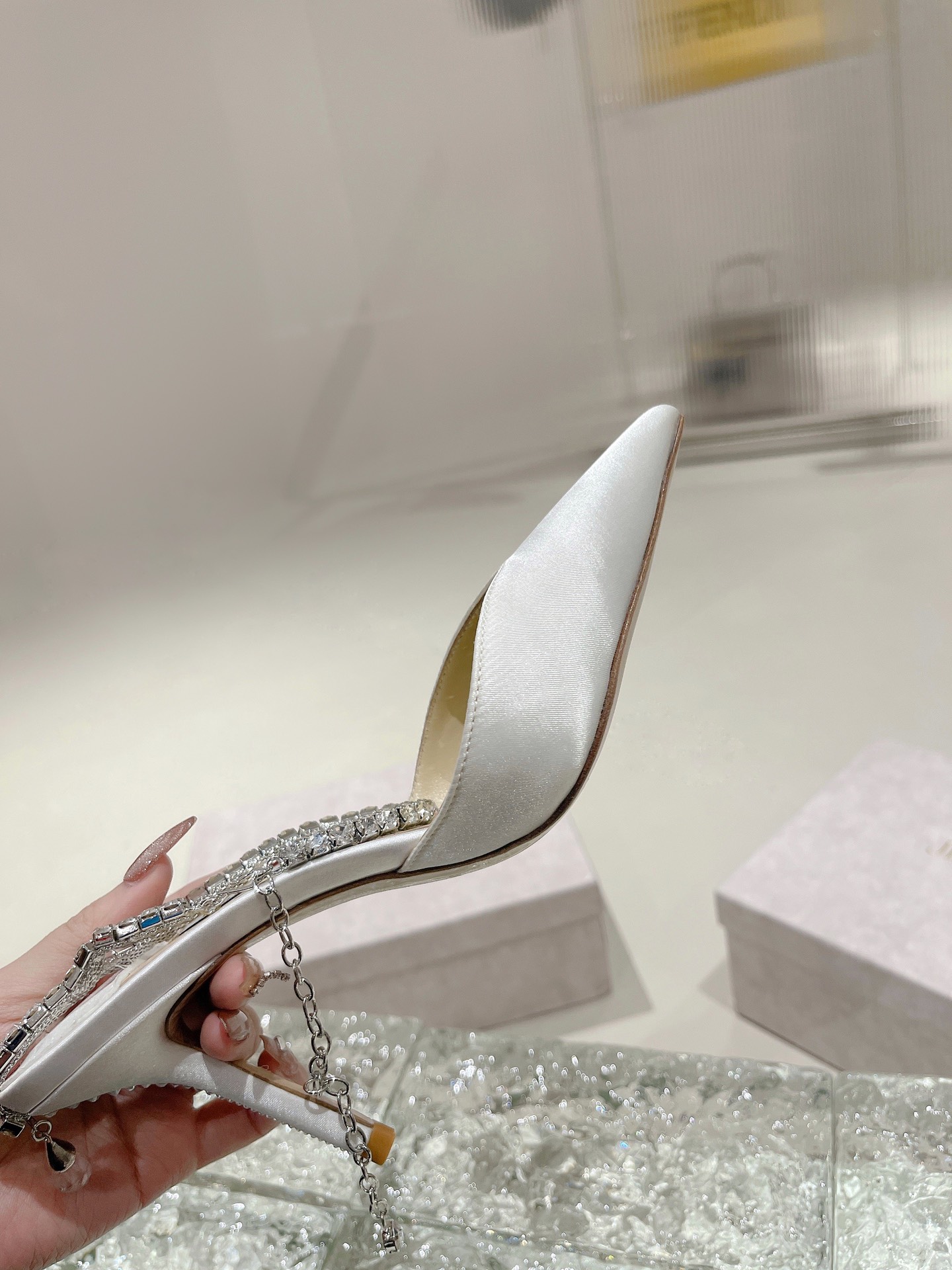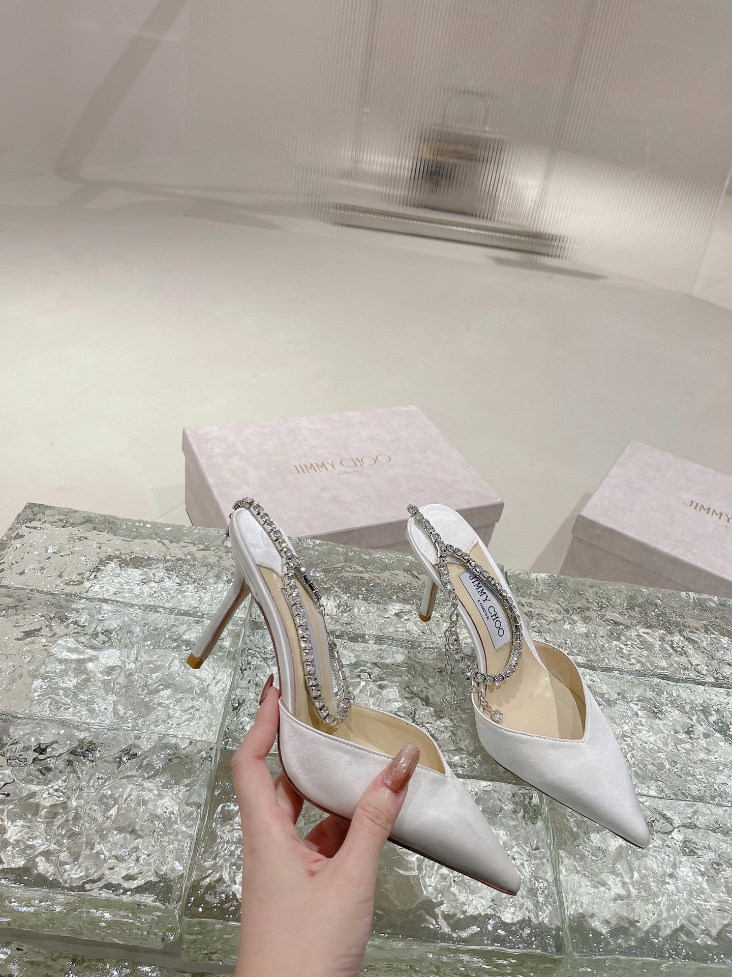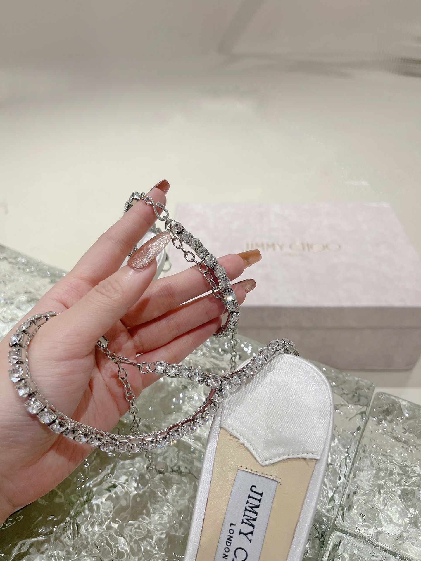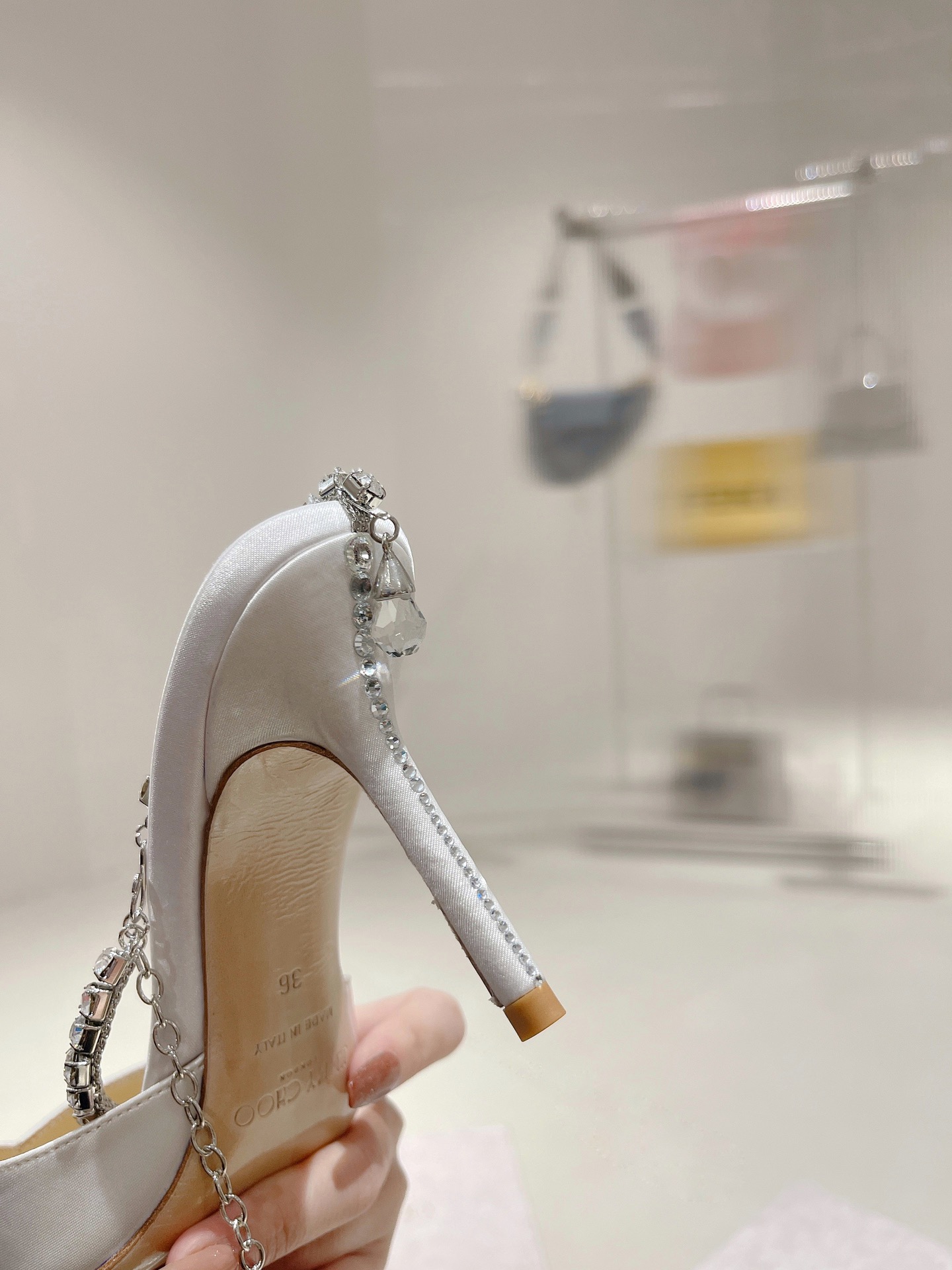 這款鞋子是AAAAA 1:1 質量(非常棒). 使用了和原版一模一樣的材料. 商標部分也保持了和吉米喬/JIMMY CHOO一樣. 圖片拍攝是實物鞋子拍攝, 您所收到的實物保證和我們圖片一模一樣.