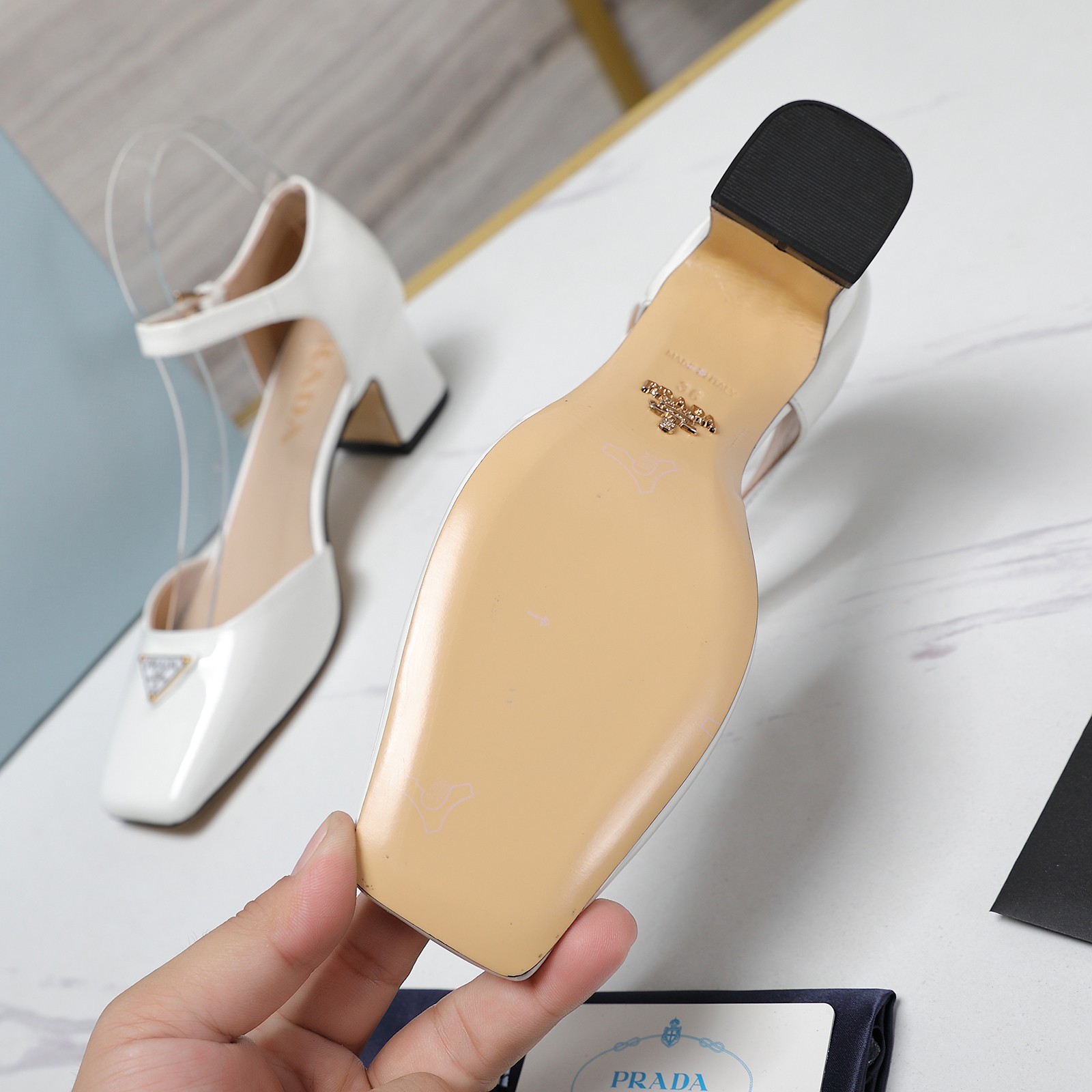 這款鞋子是AAAAA 1:1 質量(非常棒). 使用了和原版一模一樣的材料. 商標部分也保持了和普拉達/Prada一樣. 圖片拍攝是實物鞋子拍攝, 您所收到的實物保證和我們圖片一模一樣.