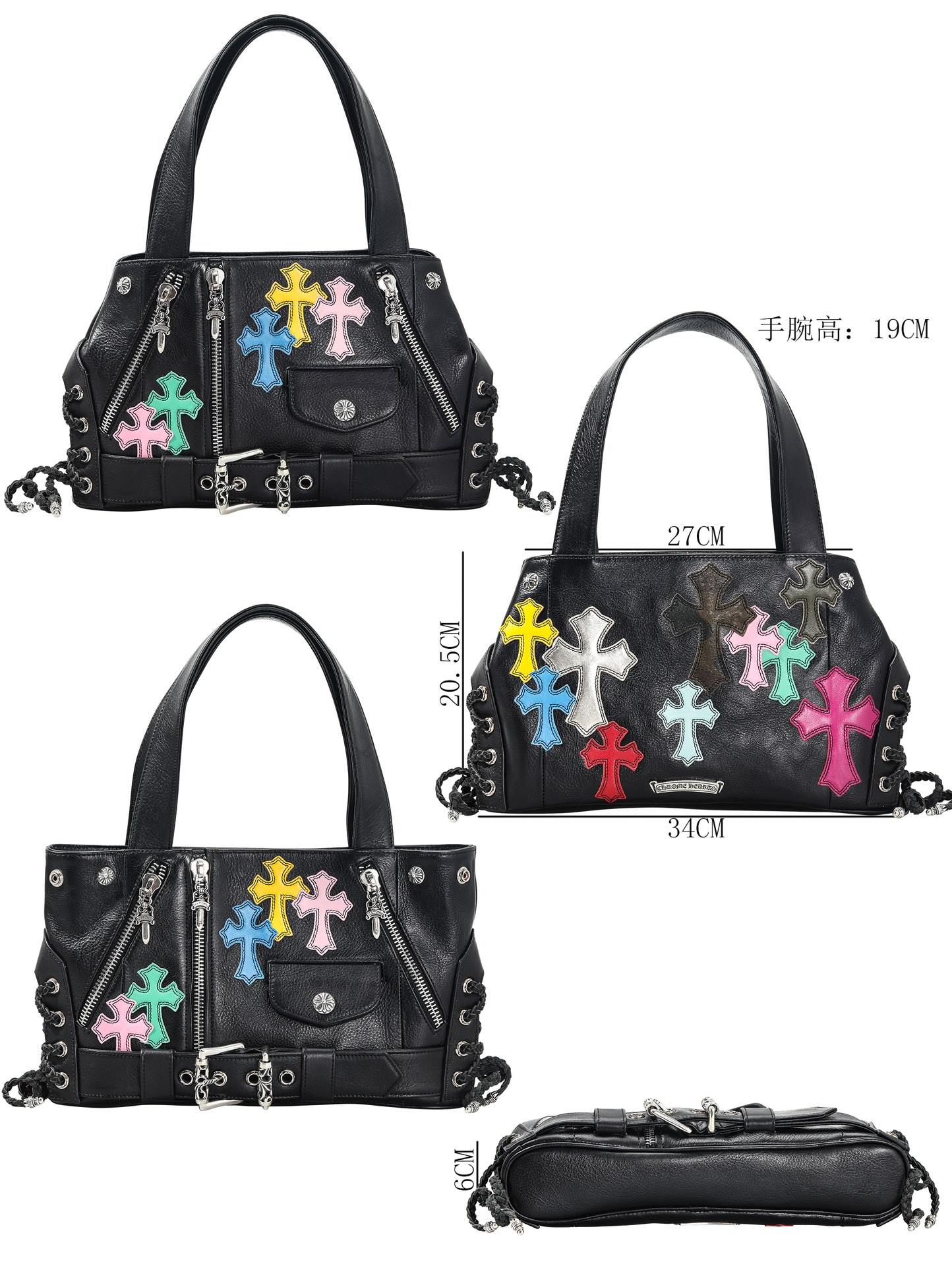 這款包包是AAAAA 1:1 質量(非常棒). 使用了和原版一模一樣的材料. 商標部分也保持了和鉻心/Chrome Hearts一樣. 圖片拍攝是實物包包拍攝, 您所收到的實物保證和我們圖片一模一樣.