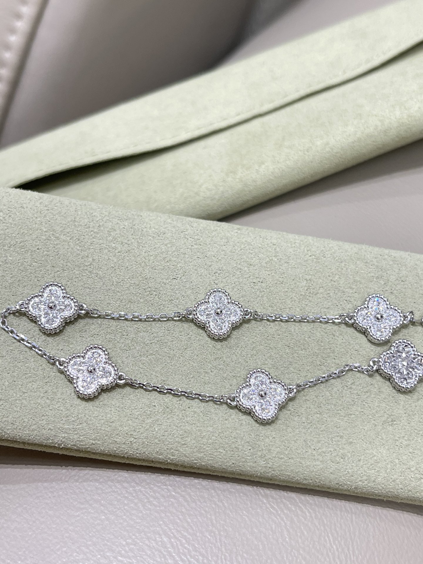 這款首飾是AAAAA 1:1 質量(非常棒). 使用了和原版一模一樣的材料. 商標部分也保持了和梵克雅寶/Van Cleef & Arpels一樣. 圖片拍攝是實物首飾拍攝, 您所收到的實物保證和我們圖片一模一樣.