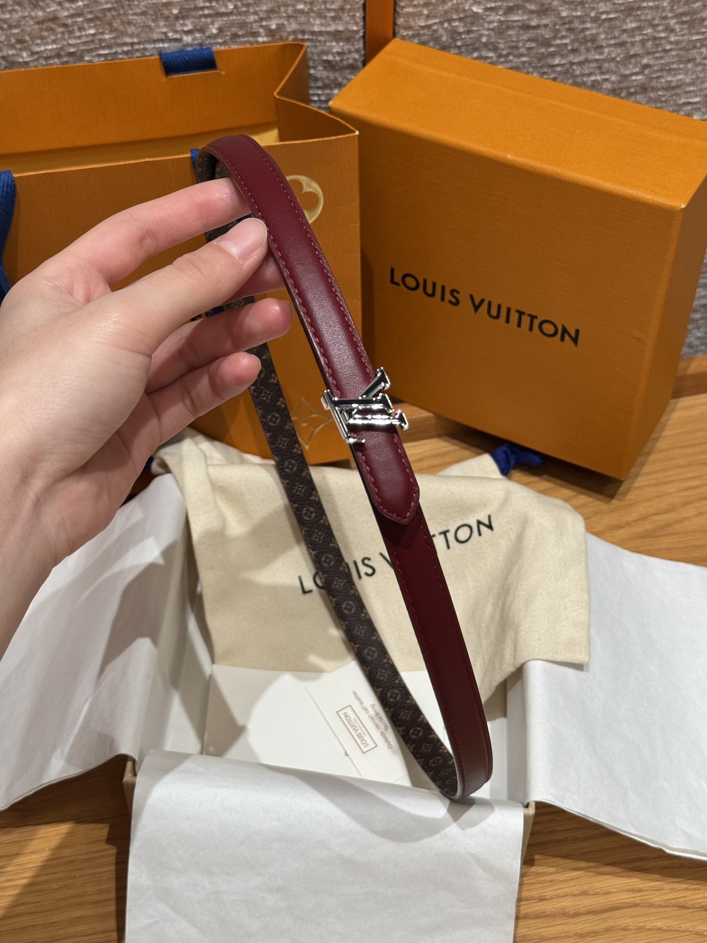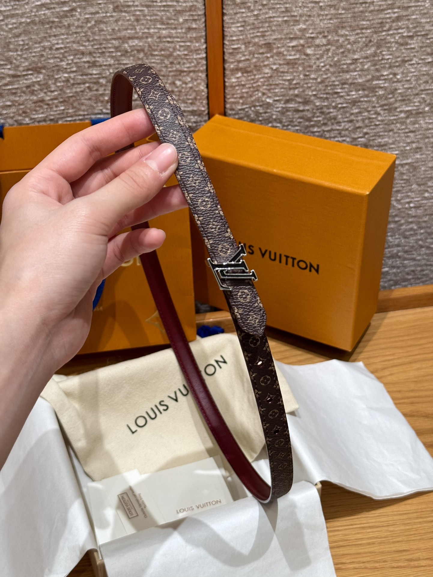 這款皮帶是AAAAA 1:1 質量(非常棒). 使用了和原版一模一樣的材料. 商標部分也保持了和路易威登/Louis Vuitton一樣. 圖片拍攝是實物皮帶拍攝, 您所收到的實物保證和我們圖片一模一樣.