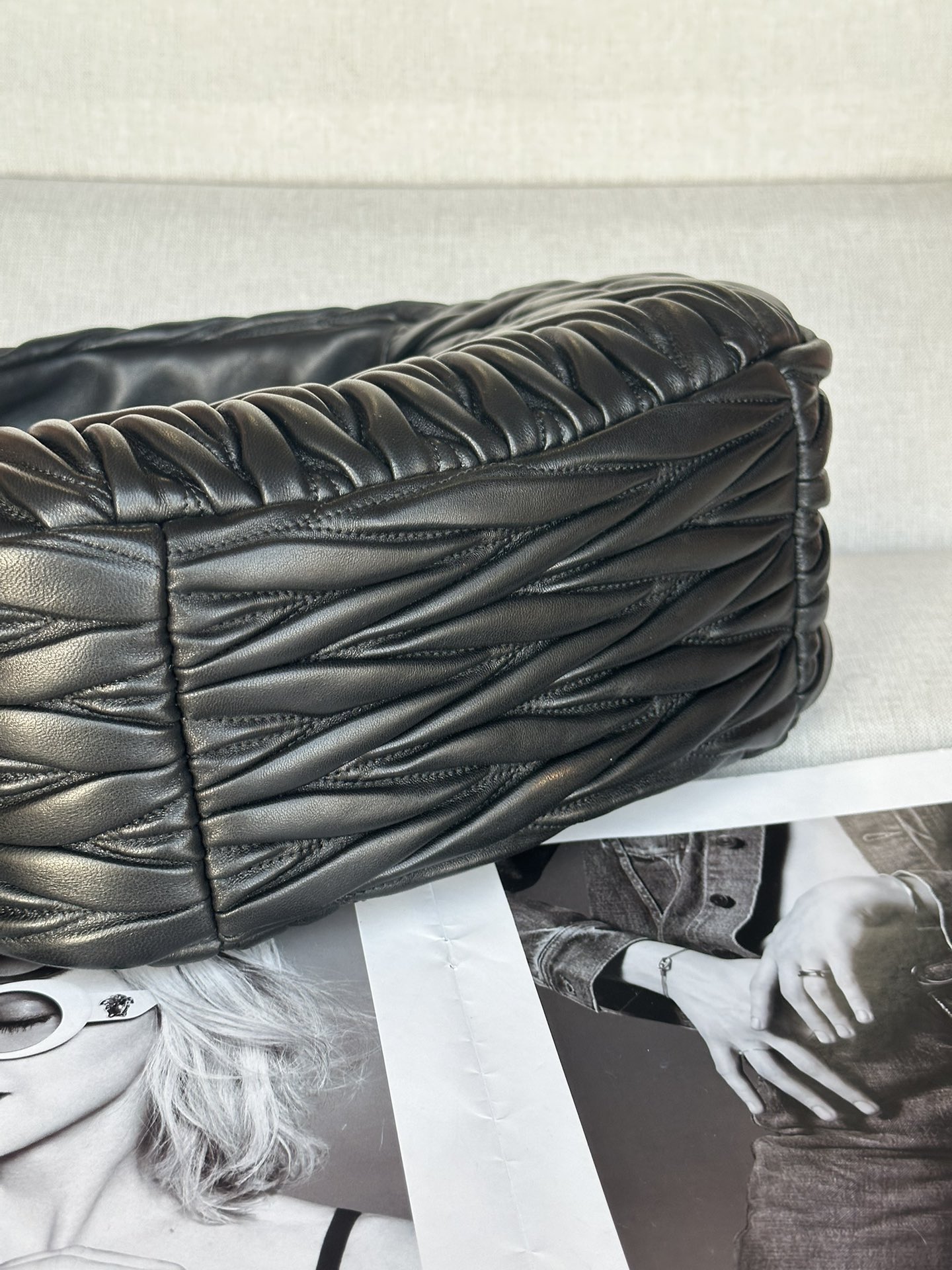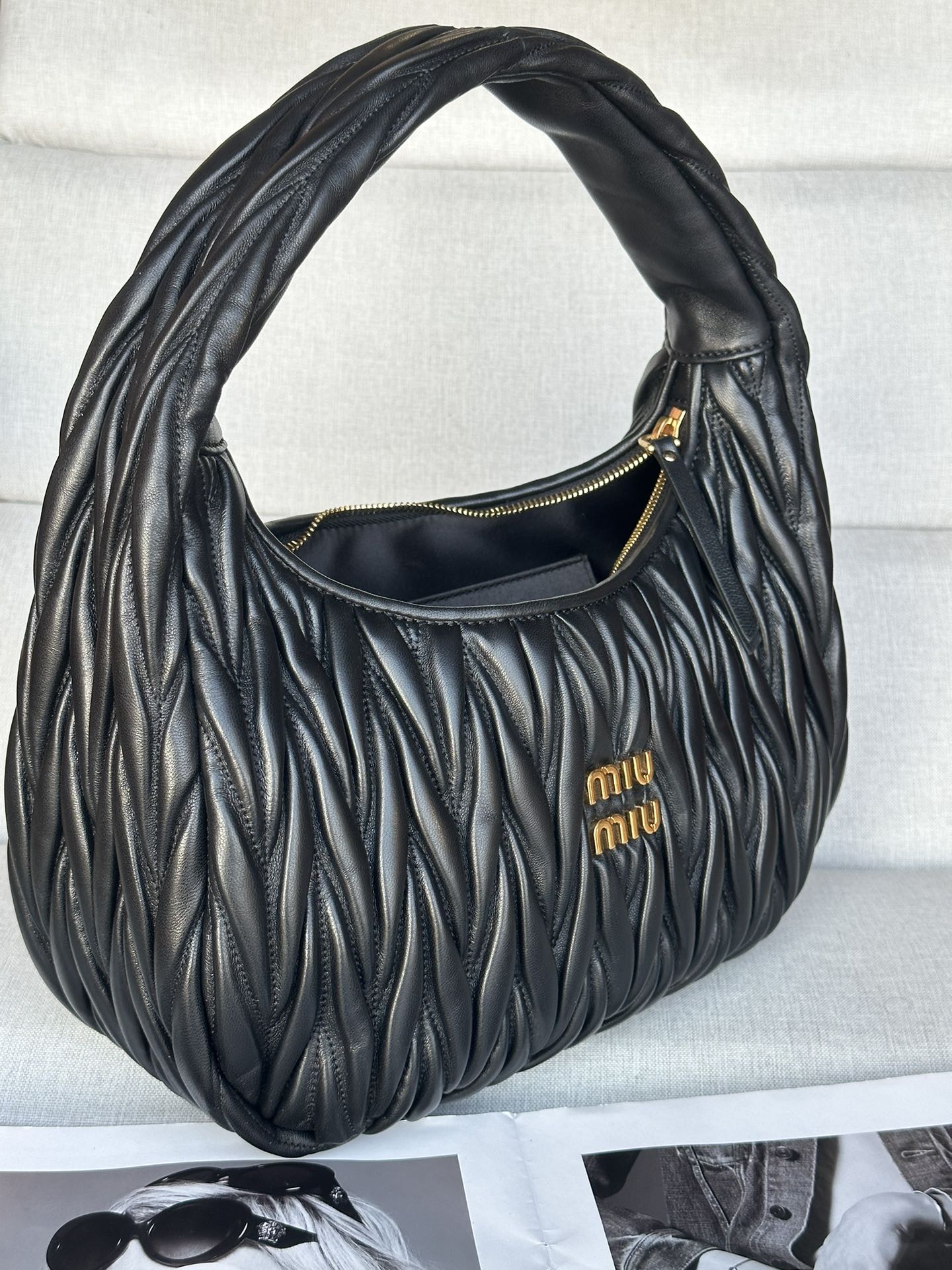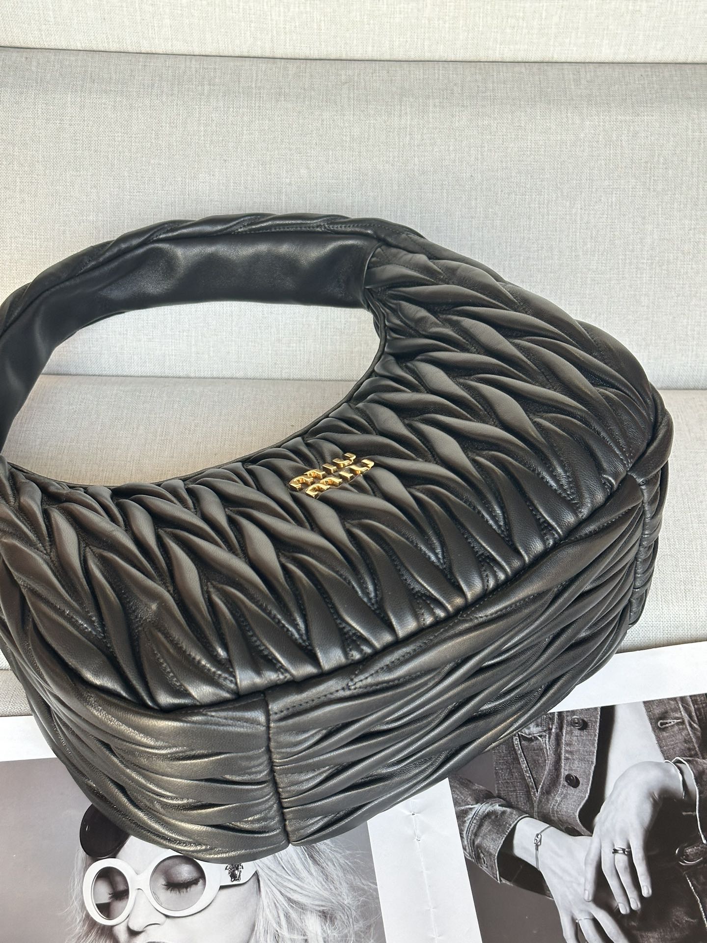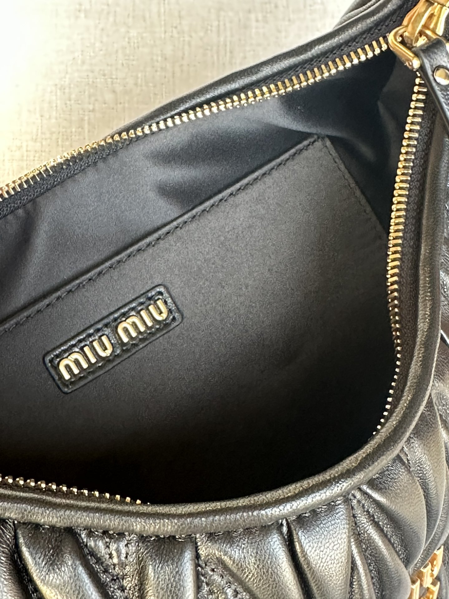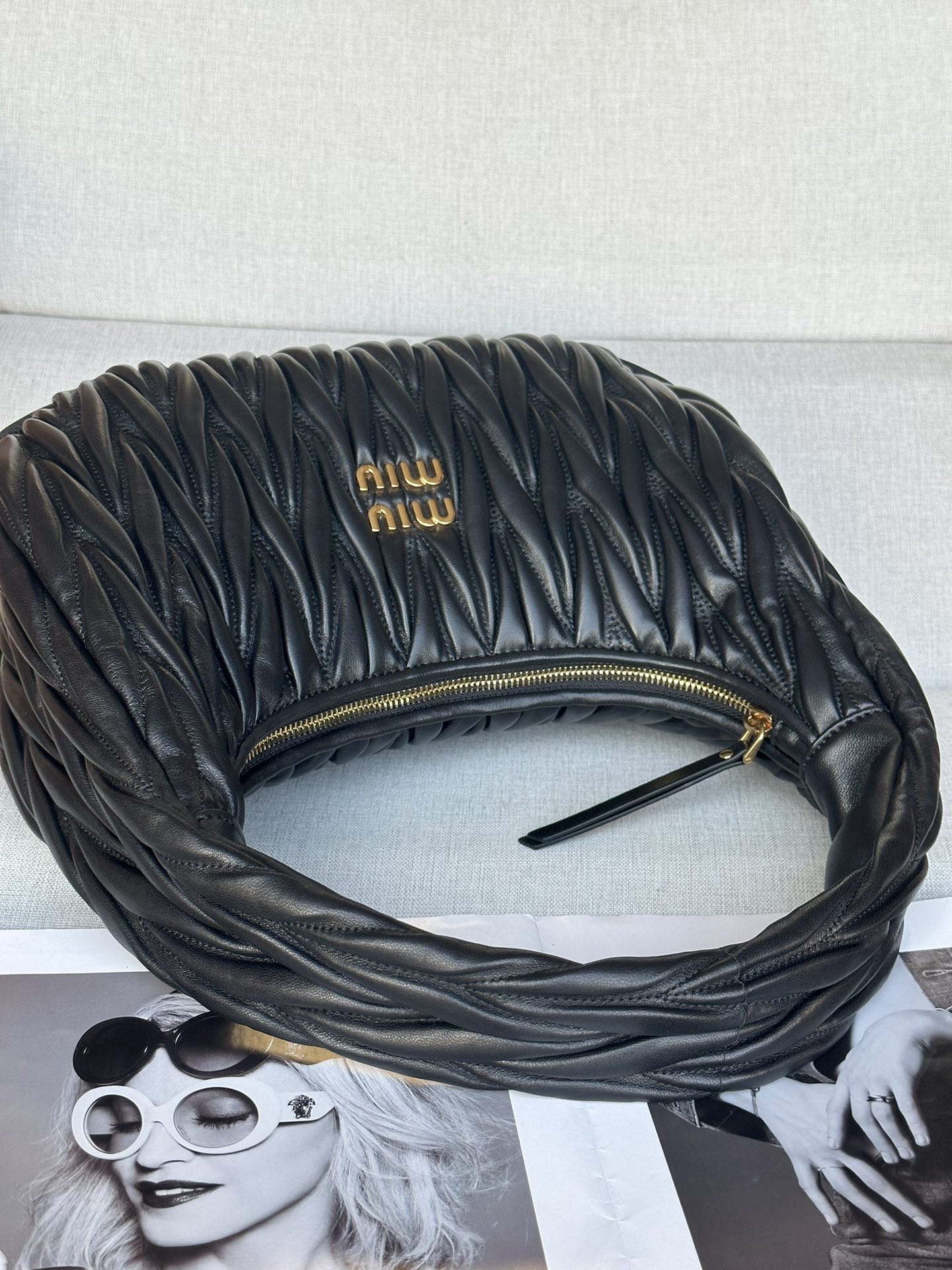 這款包包是AAAAA 1:1 質量(非常棒). 使用了和原版一模一樣的材料. 商標部分也保持了和繆繆/Miu Miu一樣. 圖片拍攝是實物包包拍攝, 您所收到的實物保證和我們圖片一模一樣.
