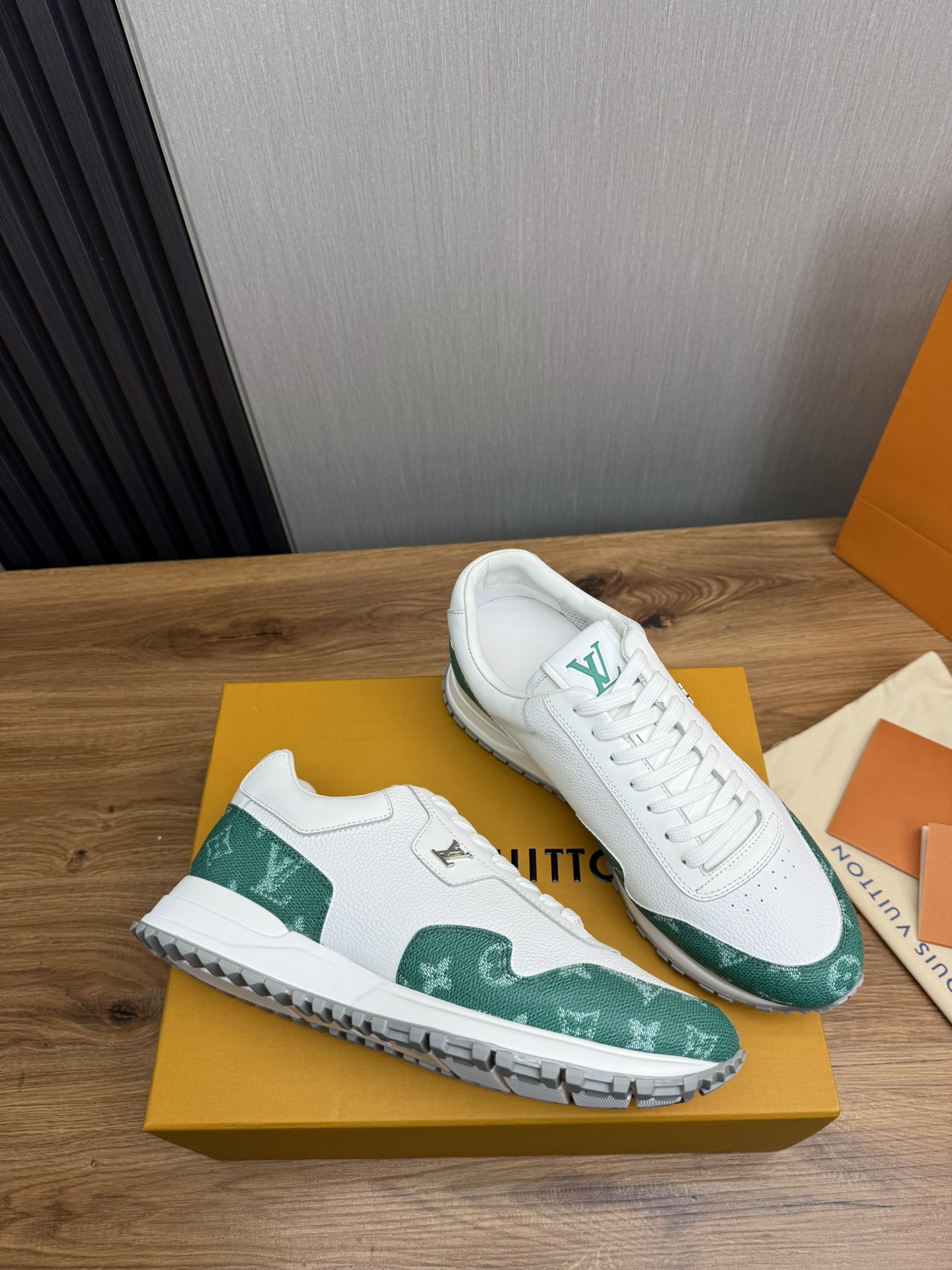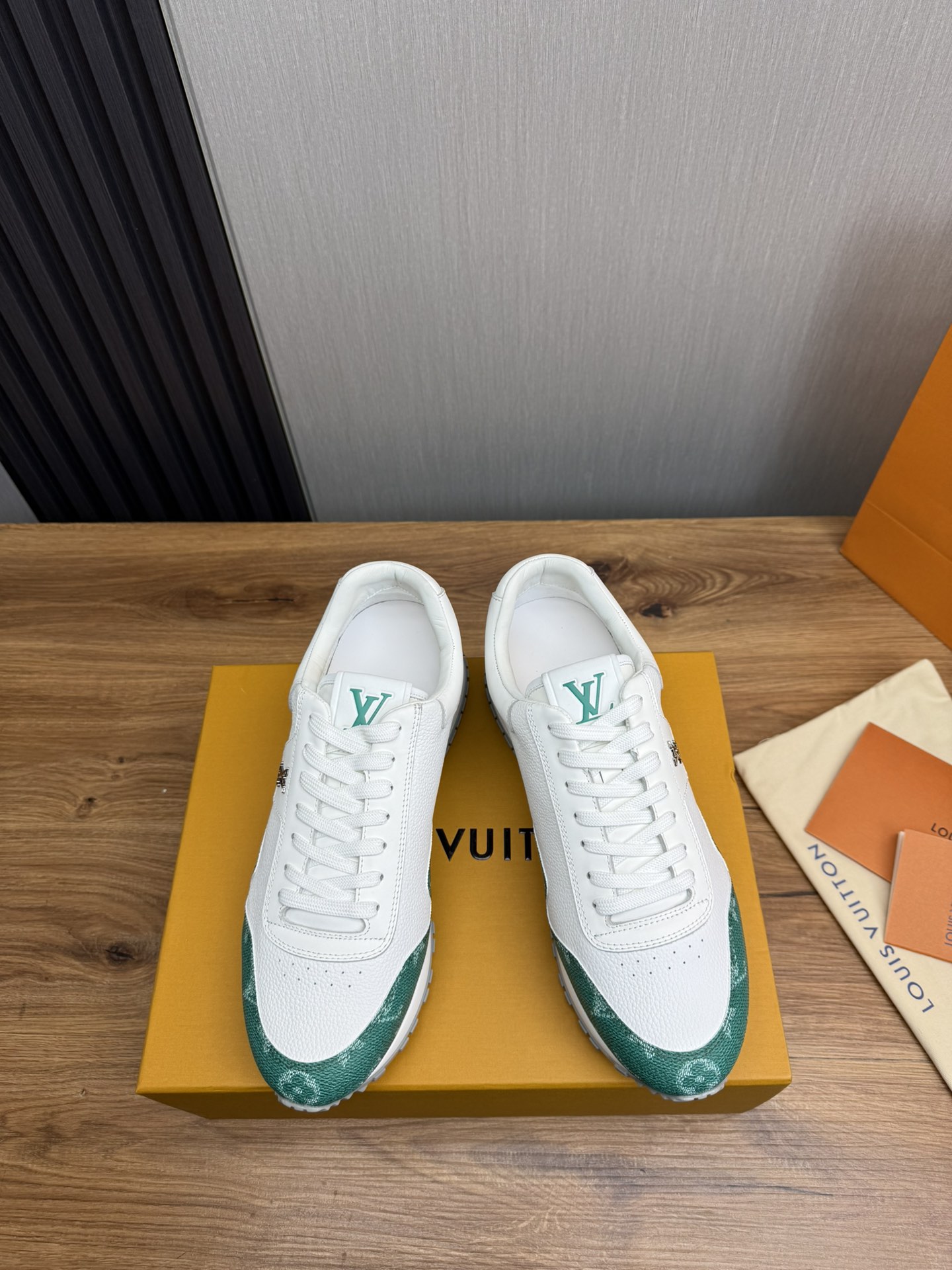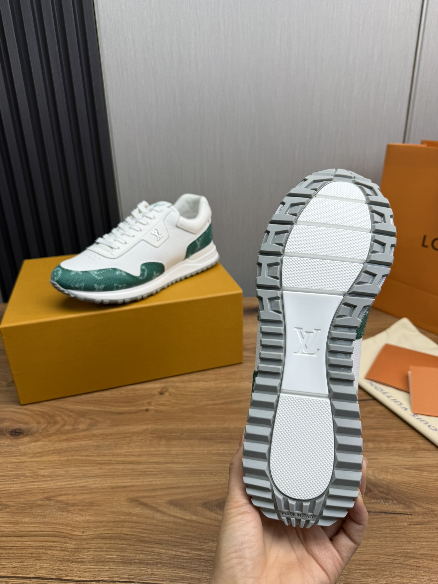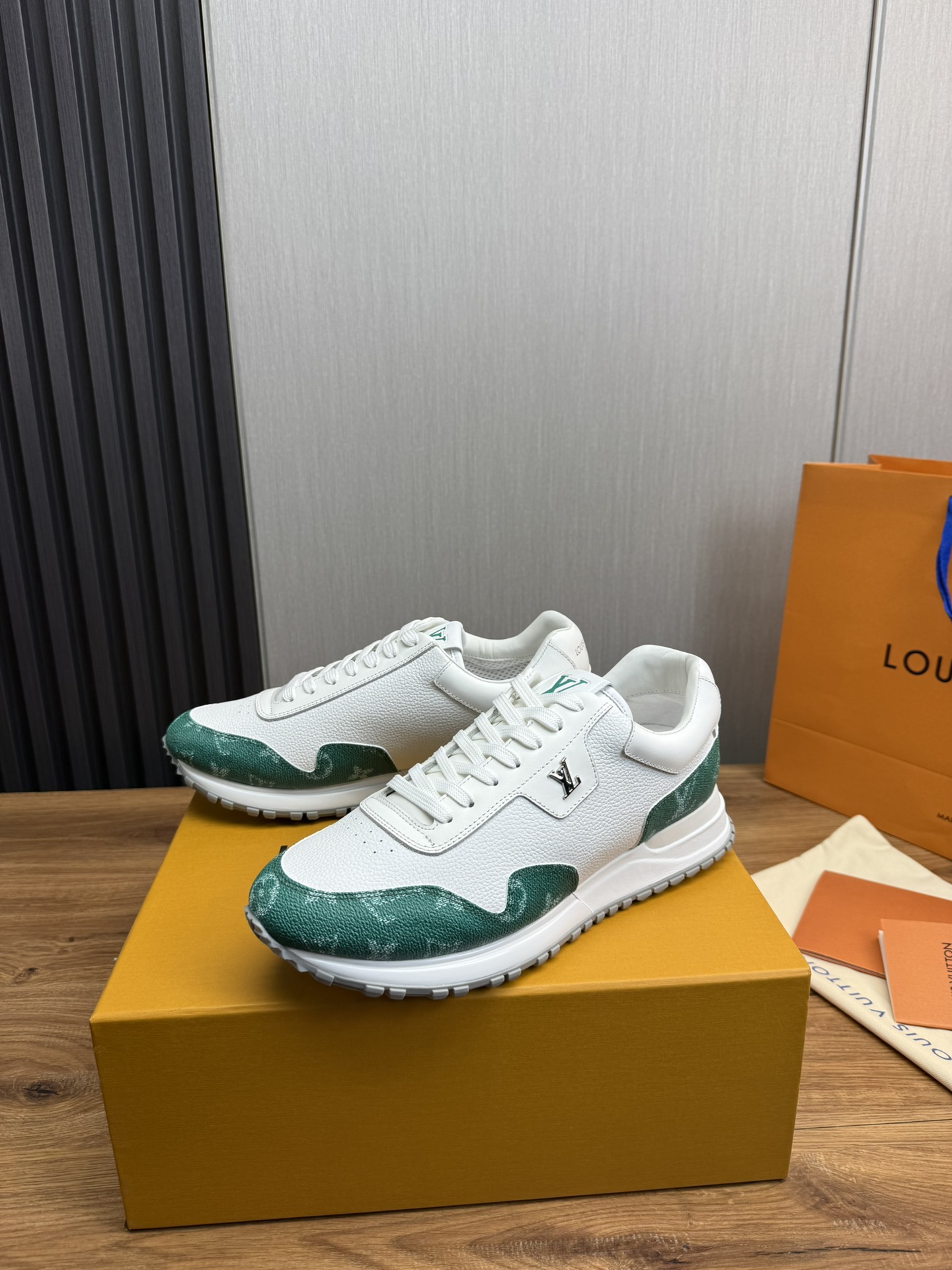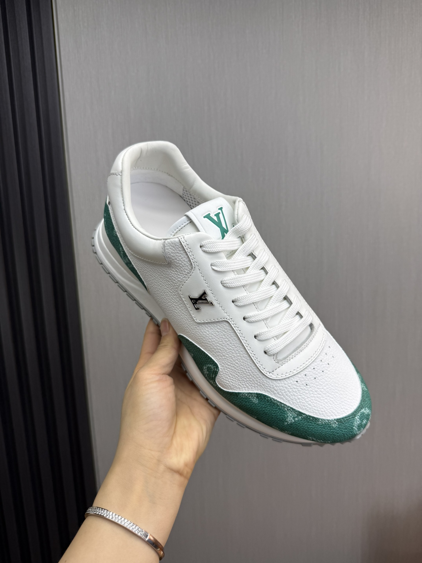 這款鞋子是AAAAA 1:1 質量(非常棒). 使用了和原版一模一樣的材料. 商標部分也保持了和路易威登/Louis Vuitton一樣. 圖片拍攝是實物鞋子拍攝, 您所收到的實物保證和我們圖片一模一樣.