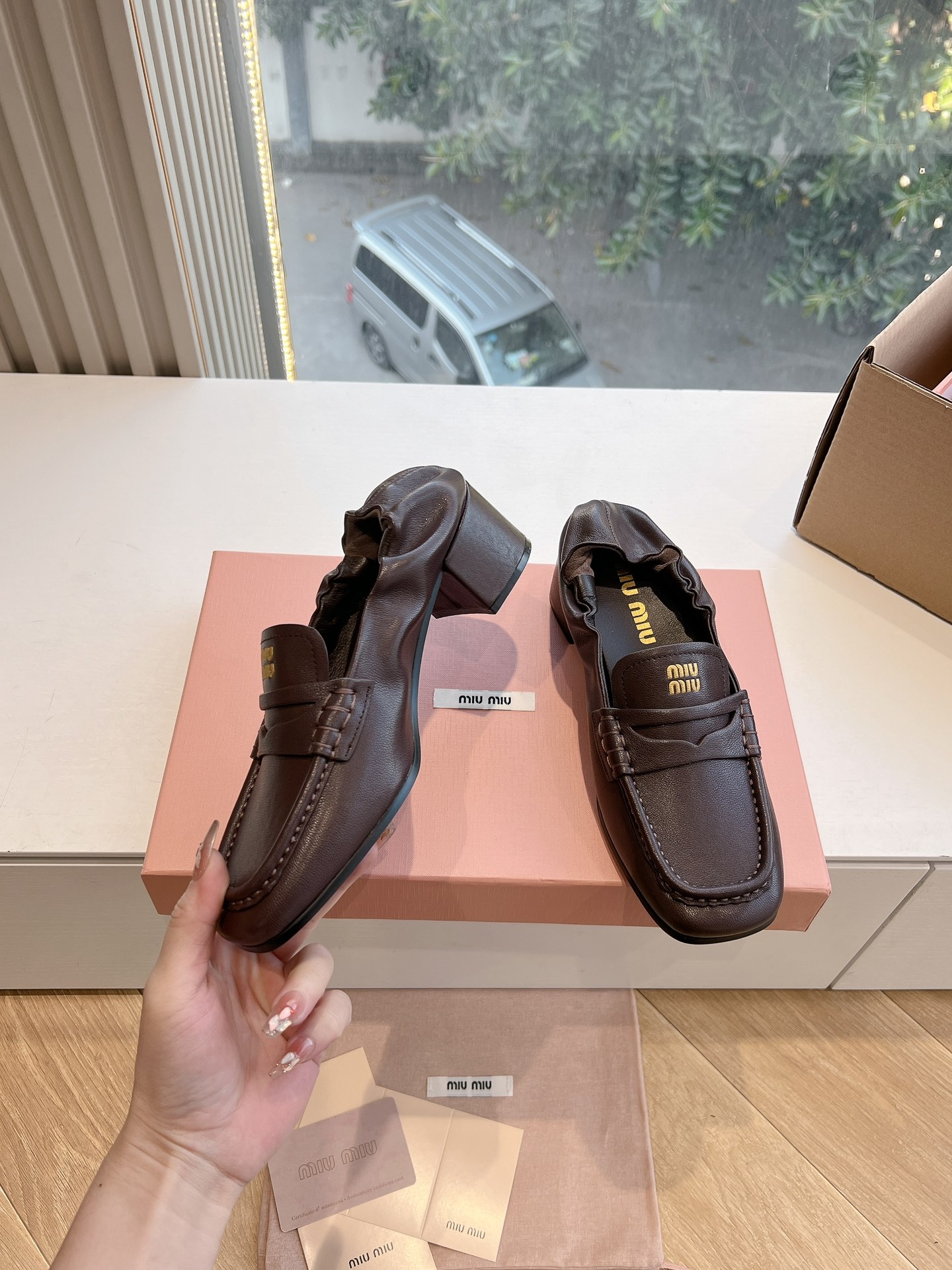 這款鞋子是AAAAA 1:1 質量(非常棒). 使用了和原版一模一樣的材料. 商標部分也保持了和繆繆/Miu Miu一樣. 圖片拍攝是實物鞋子拍攝, 您所收到的實物保證和我們圖片一模一樣.