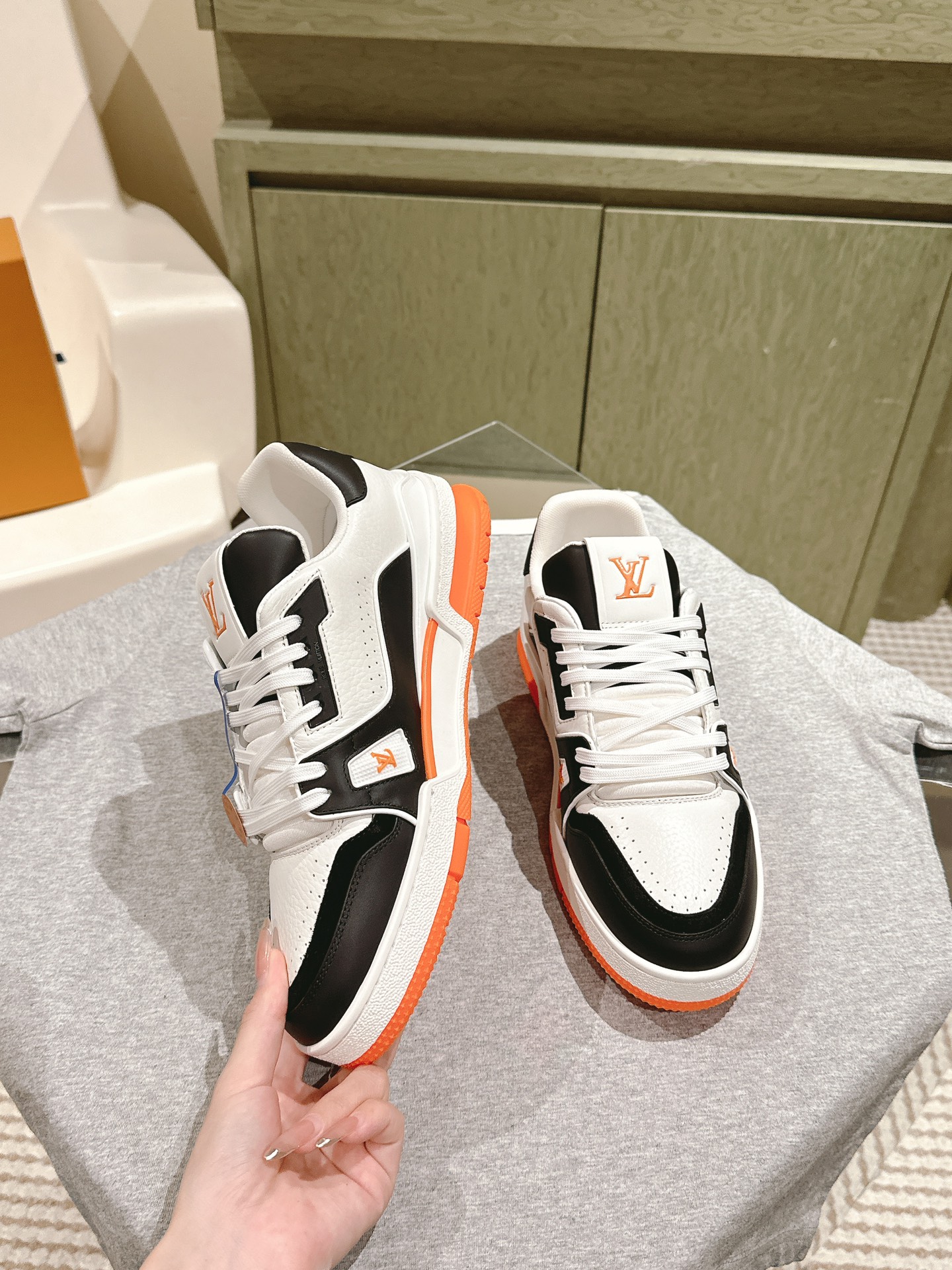 這款鞋子是AAAAA 1:1 質量(非常棒). 使用了和原版一模一樣的材料. 商標部分也保持了和路易威登/Louis Vuitton一樣. 圖片拍攝是實物鞋子拍攝, 您所收到的實物保證和我們圖片一模一樣.