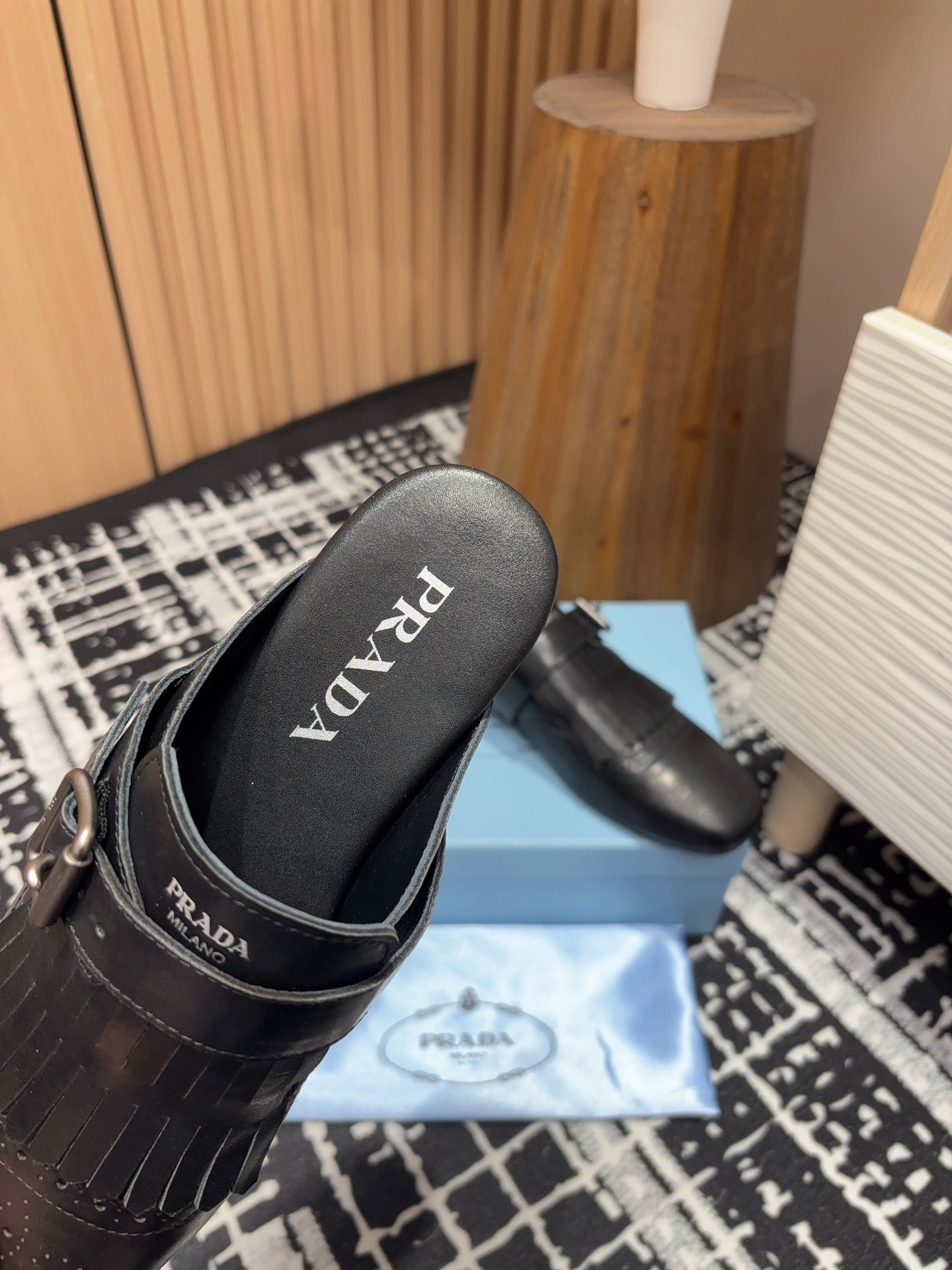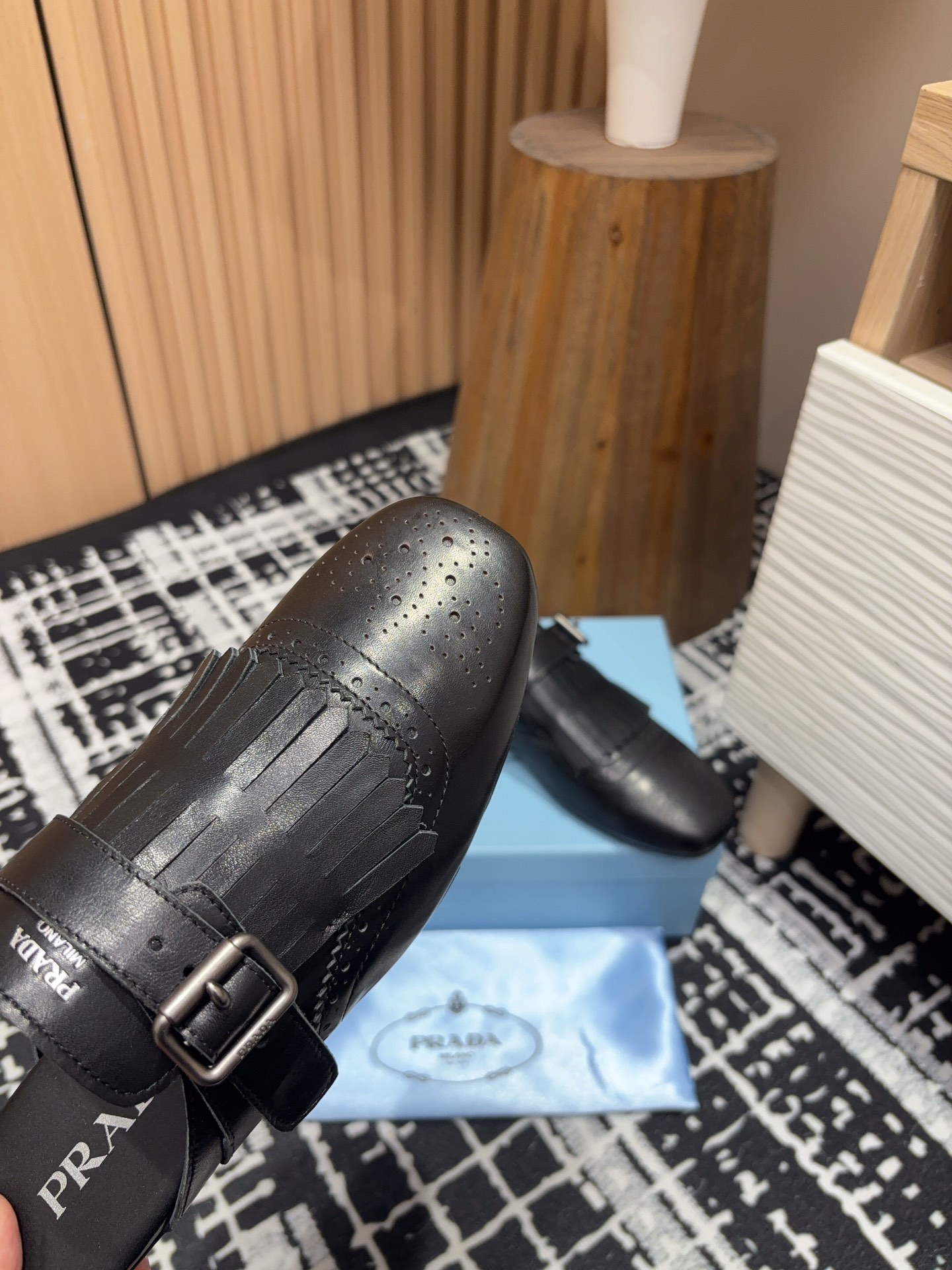 這款鞋子是AAAAA 1:1 質量(非常棒). 使用了和原版一模一樣的材料. 商標部分也保持了和普拉達/Prada一樣. 圖片拍攝是實物鞋子拍攝, 您所收到的實物保證和我們圖片一模一樣.