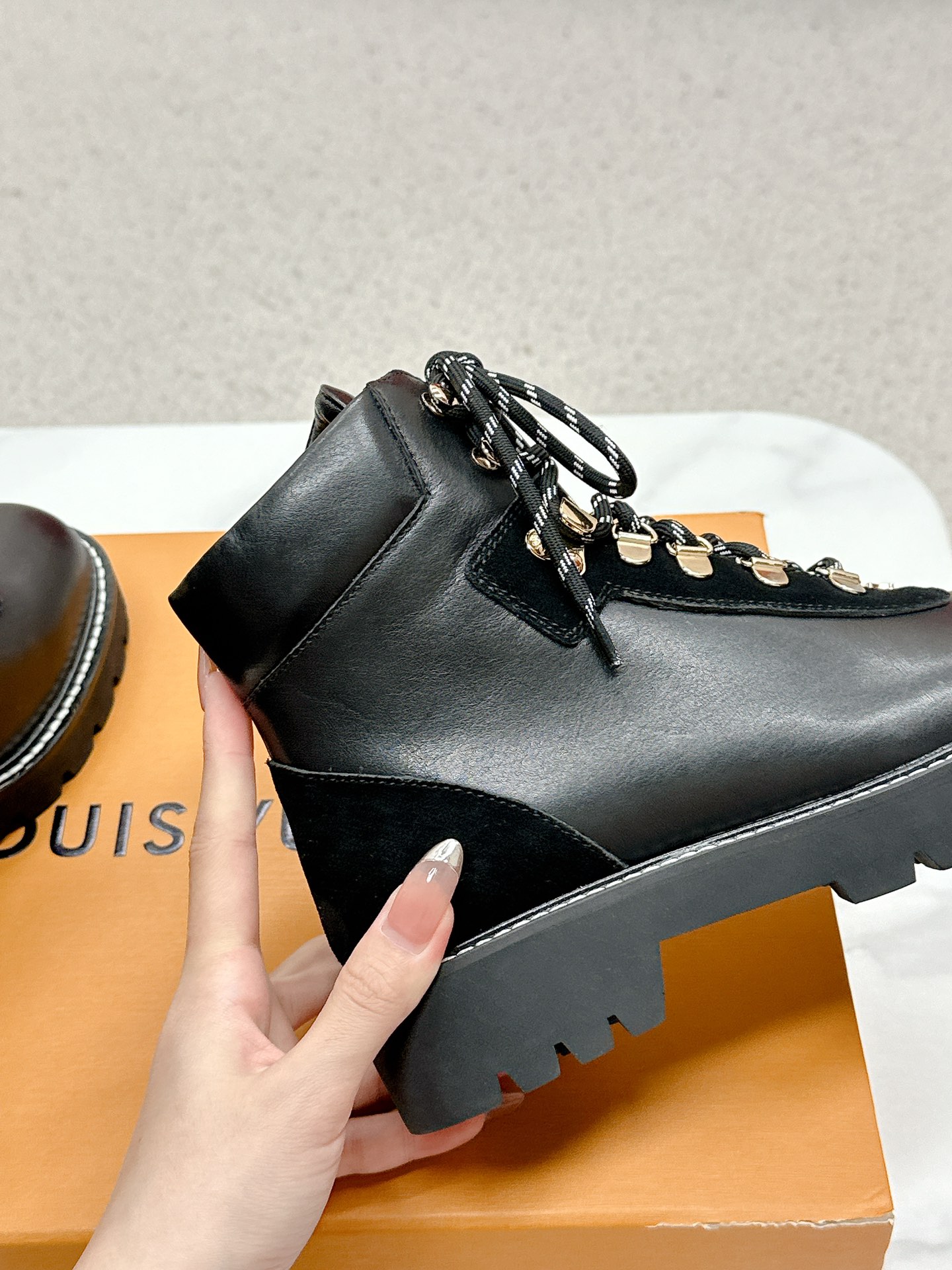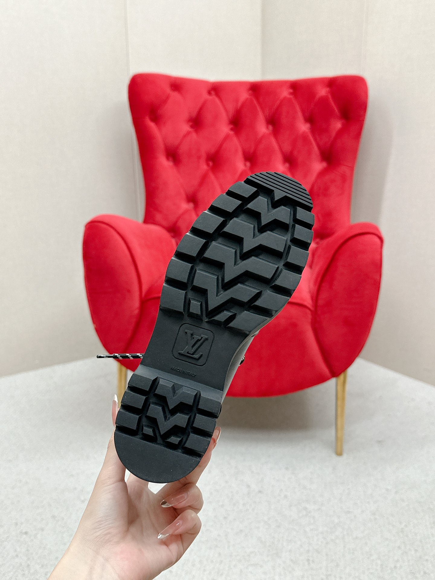 這款鞋子是AAAAA 1:1 質量(非常棒). 使用了和原版一模一樣的材料. 商標部分也保持了和路易威登/Louis Vuitton一樣. 圖片拍攝是實物鞋子拍攝, 您所收到的實物保證和我們圖片一模一樣.