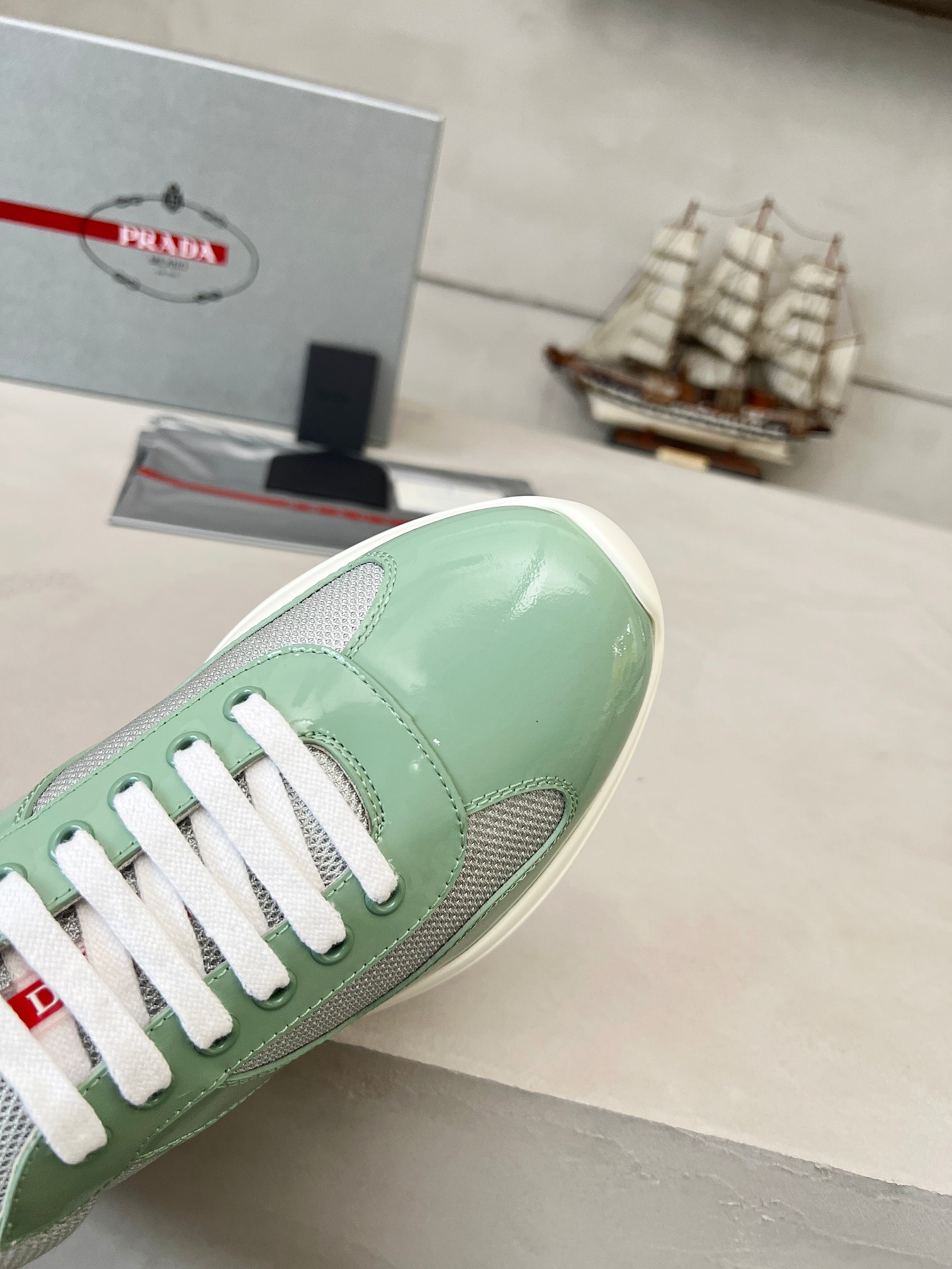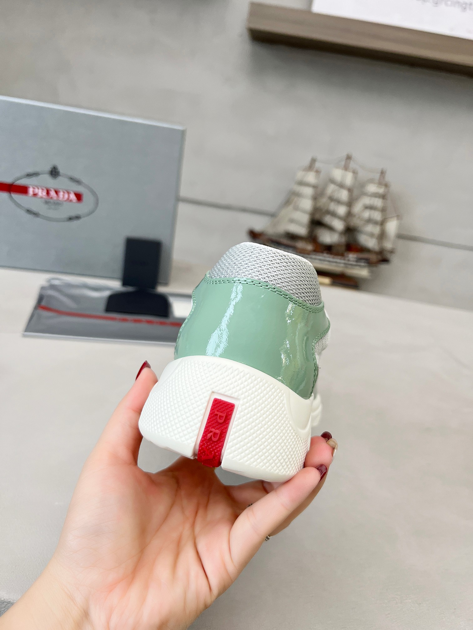 這款鞋子是AAAAA 1:1 質量(非常棒). 使用了和原版一模一樣的材料. 商標部分也保持了和普拉達/Prada一樣. 圖片拍攝是實物鞋子拍攝, 您所收到的實物保證和我們圖片一模一樣.