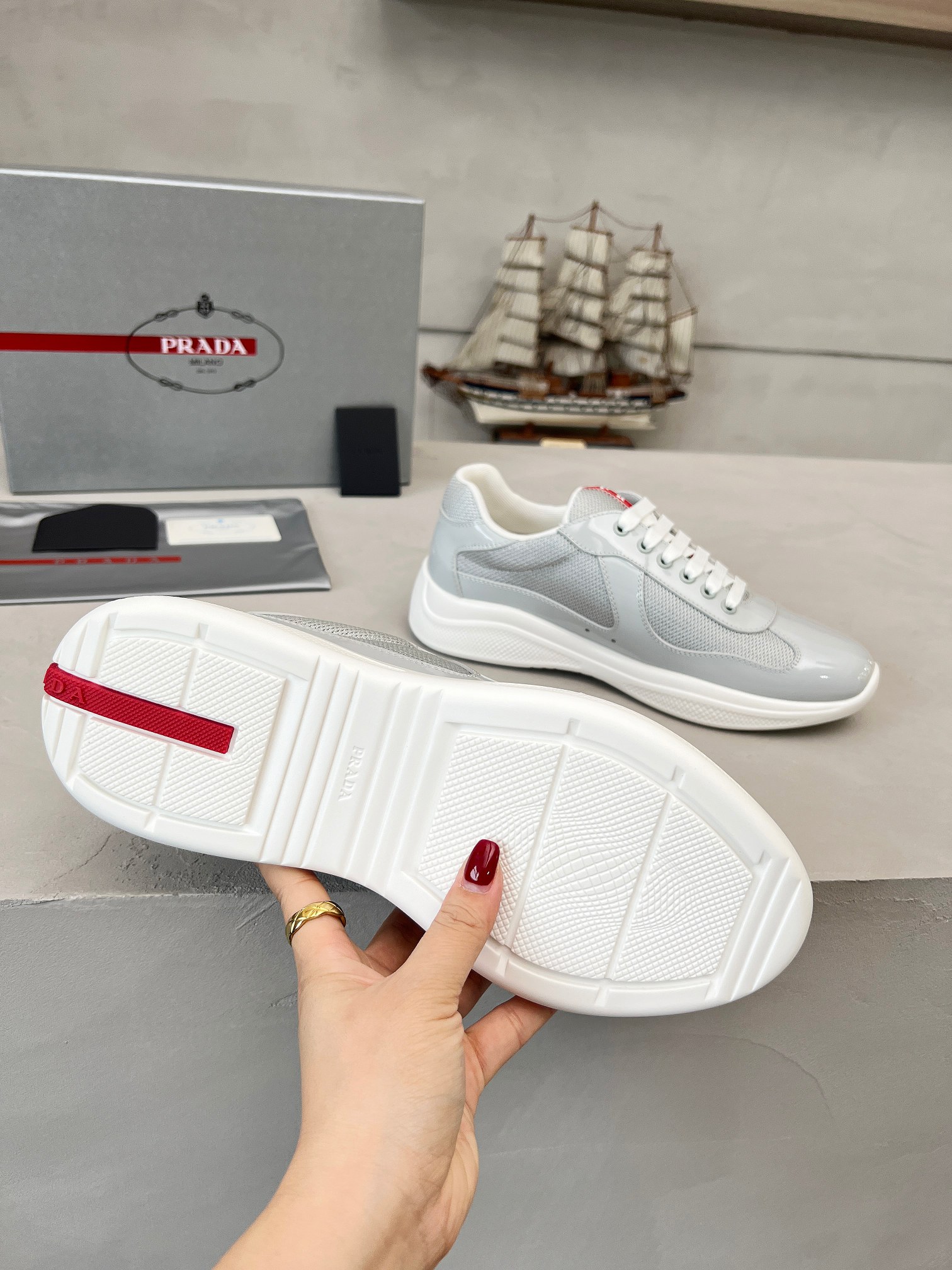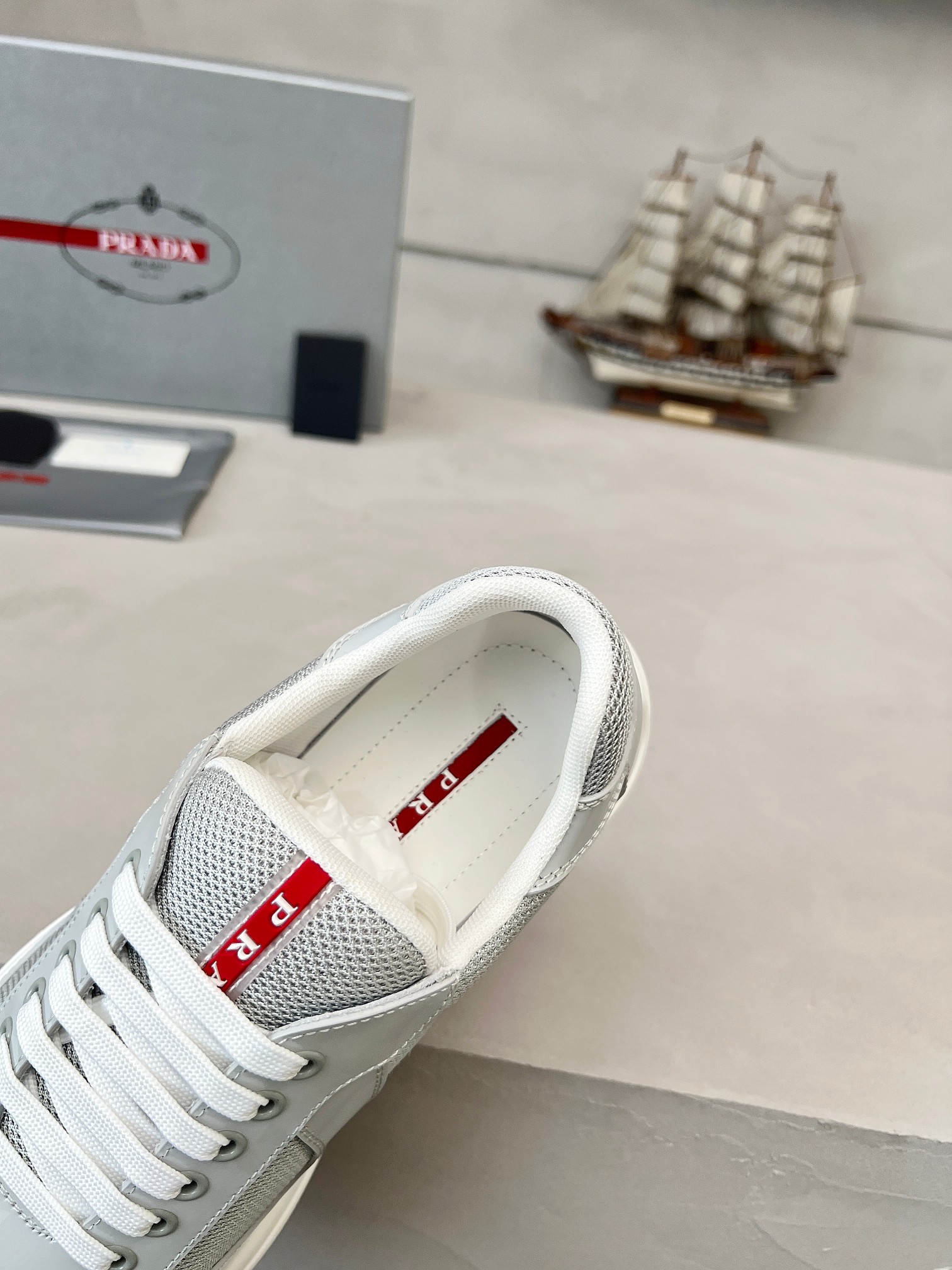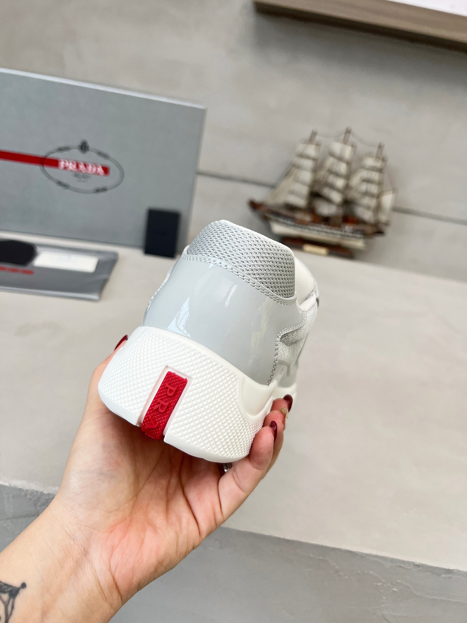 這款鞋子是AAAAA 1:1 質量(非常棒). 使用了和原版一模一樣的材料. 商標部分也保持了和普拉達/Prada一樣. 圖片拍攝是實物鞋子拍攝, 您所收到的實物保證和我們圖片一模一樣.