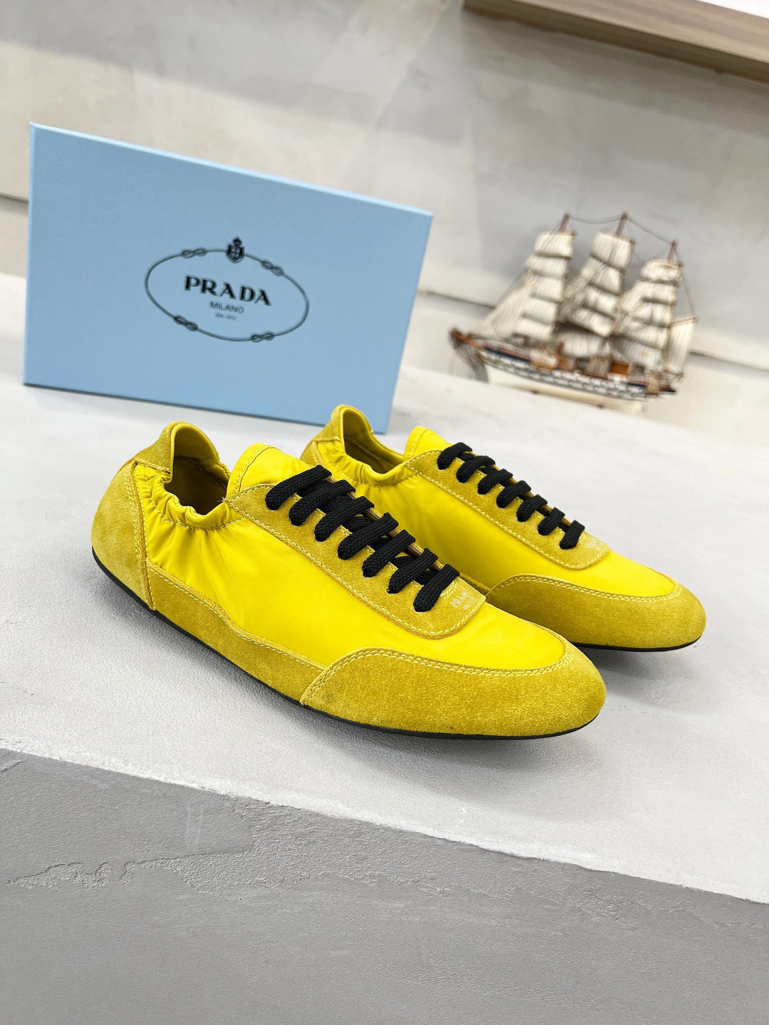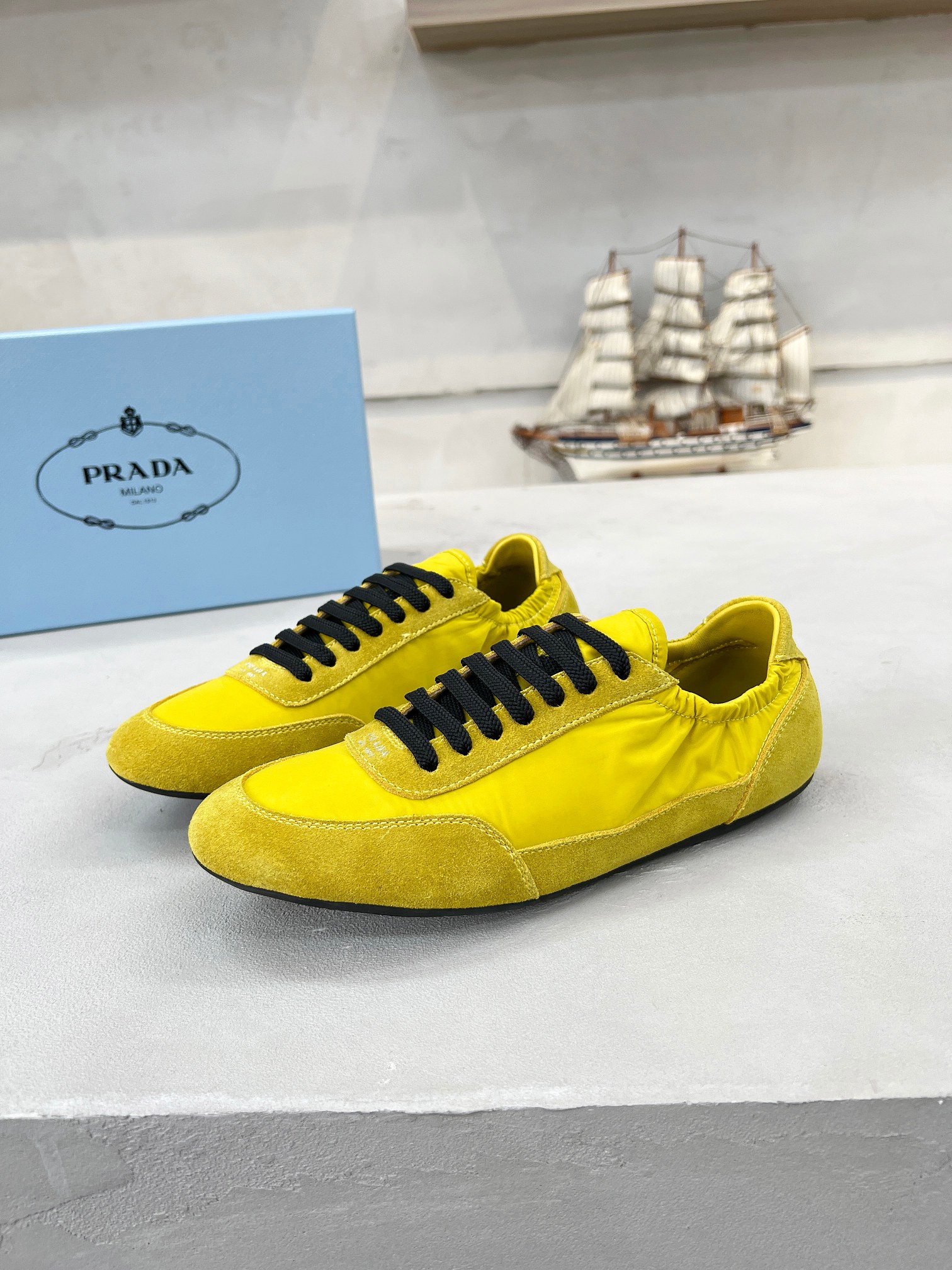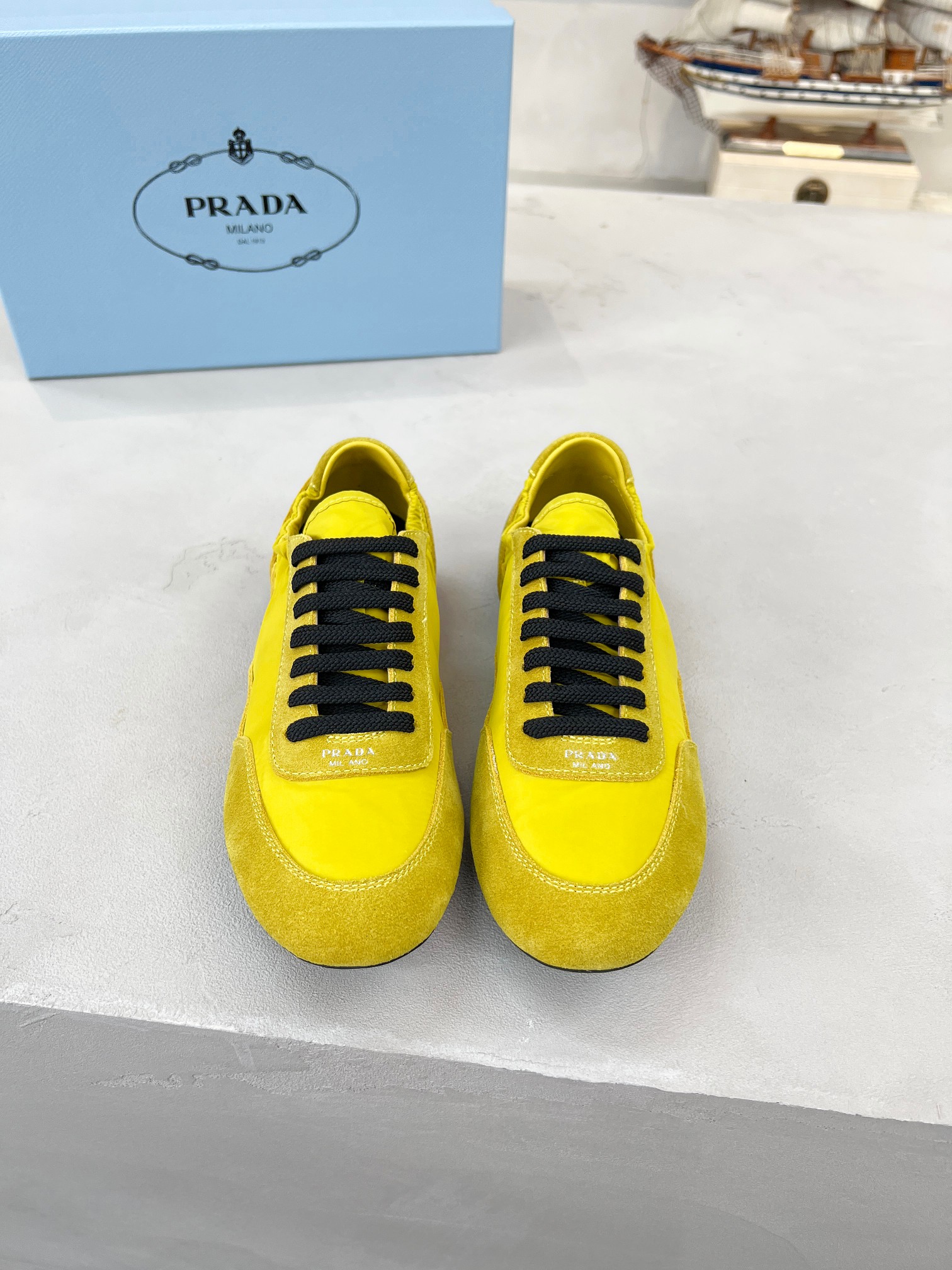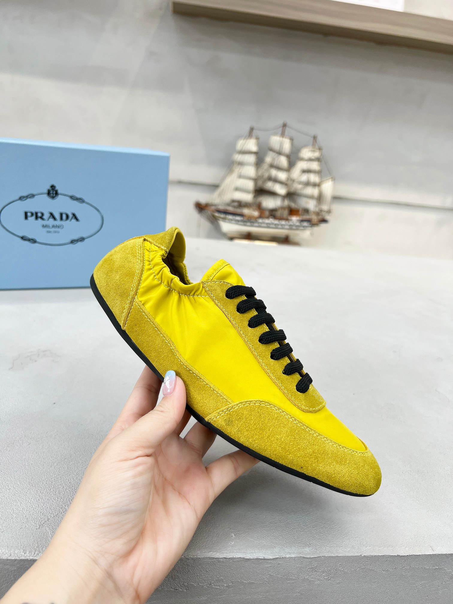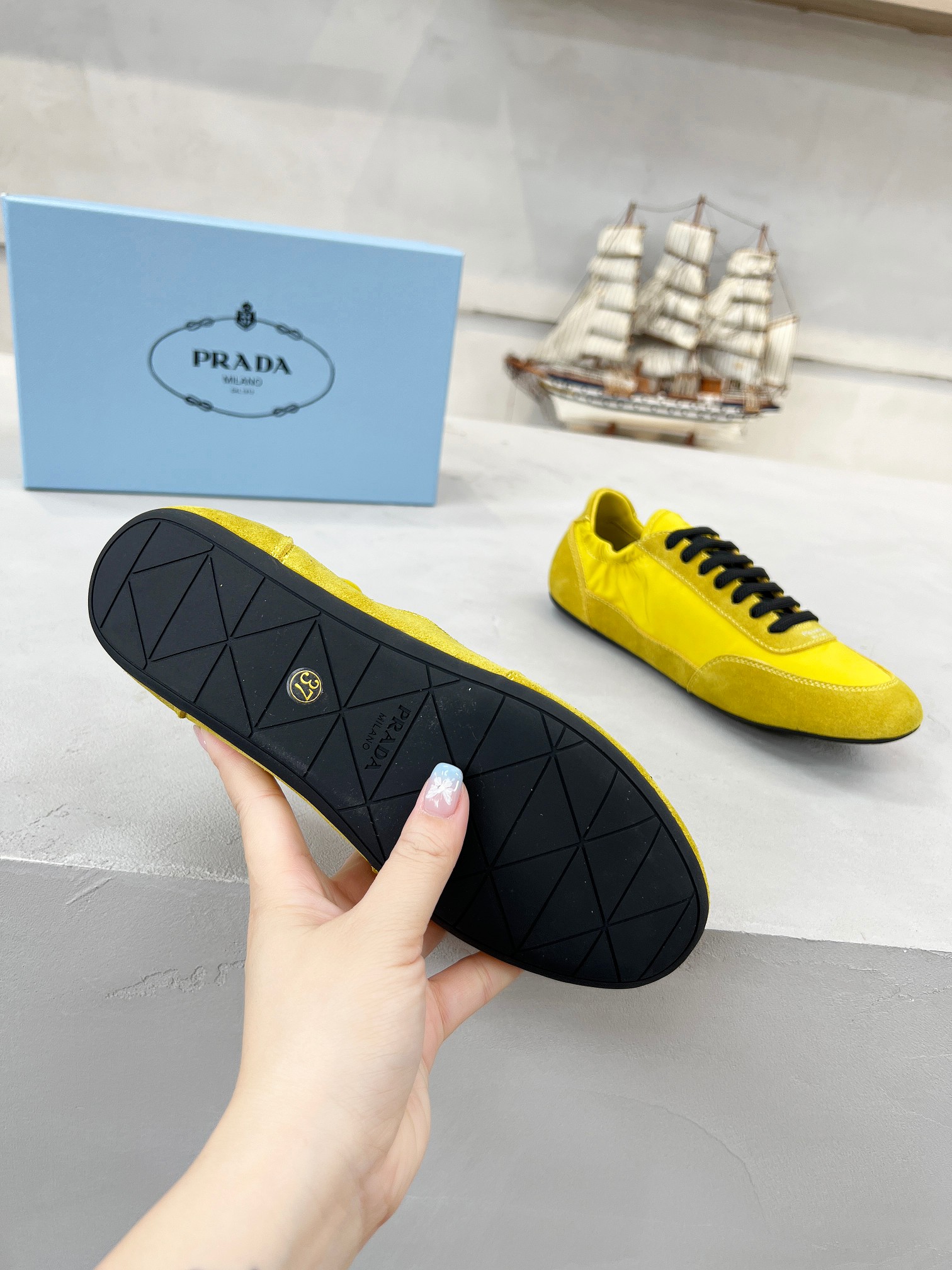 這款鞋子是AAAAA 1:1 質量(非常棒). 使用了和原版一模一樣的材料. 商標部分也保持了和普拉達/Prada一樣. 圖片拍攝是實物鞋子拍攝, 您所收到的實物保證和我們圖片一模一樣.