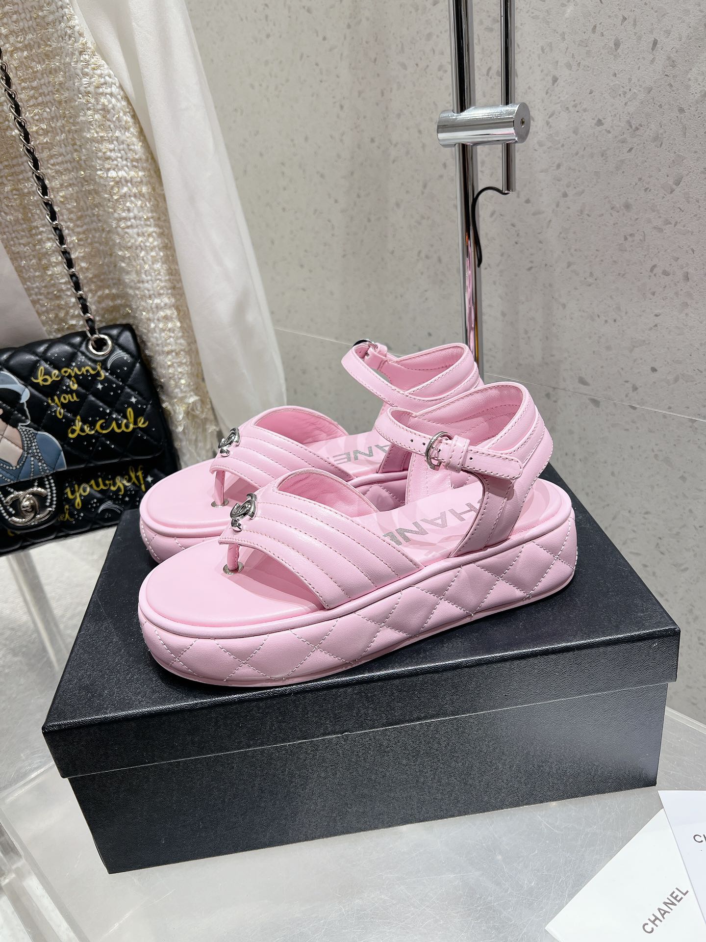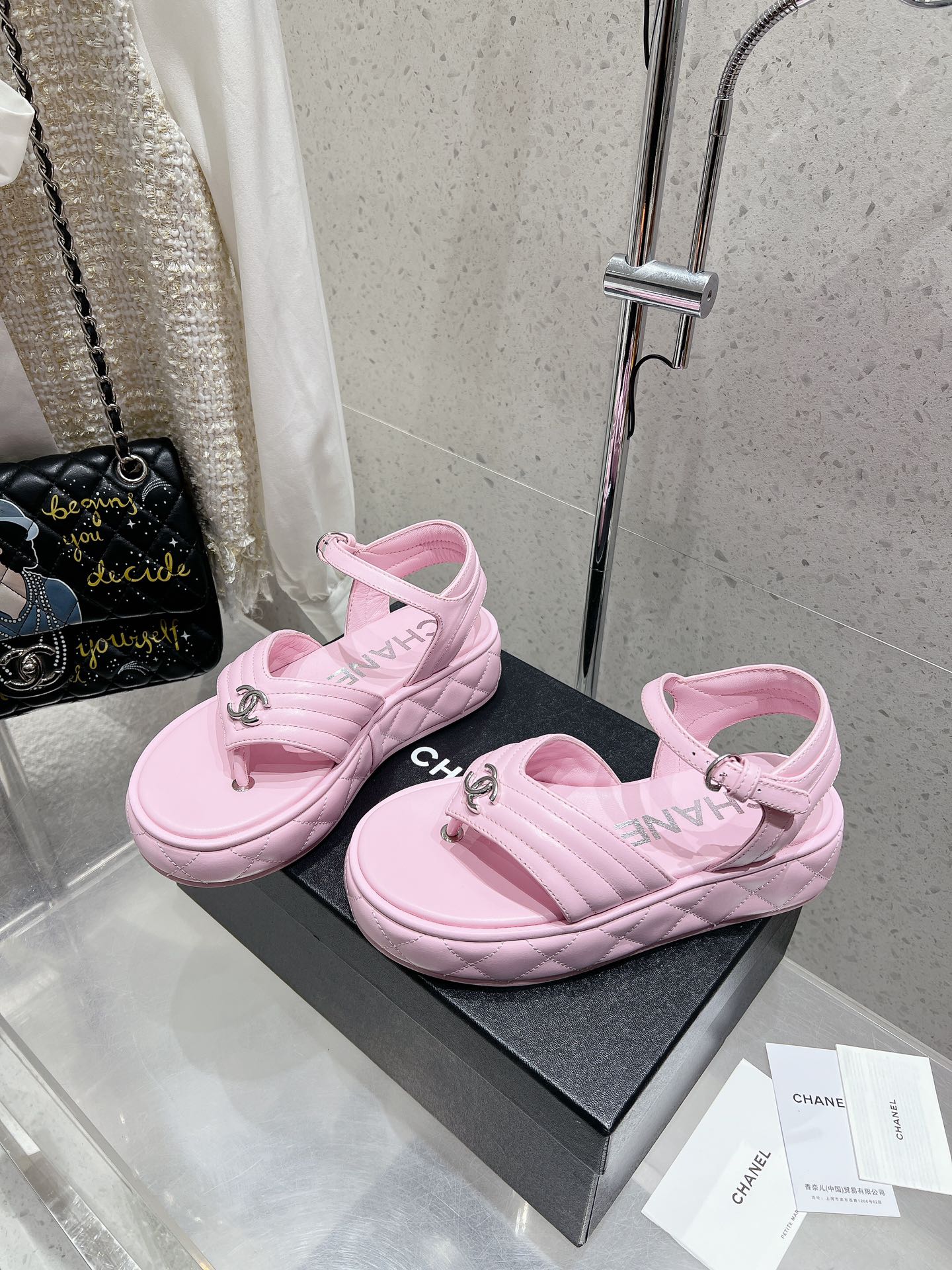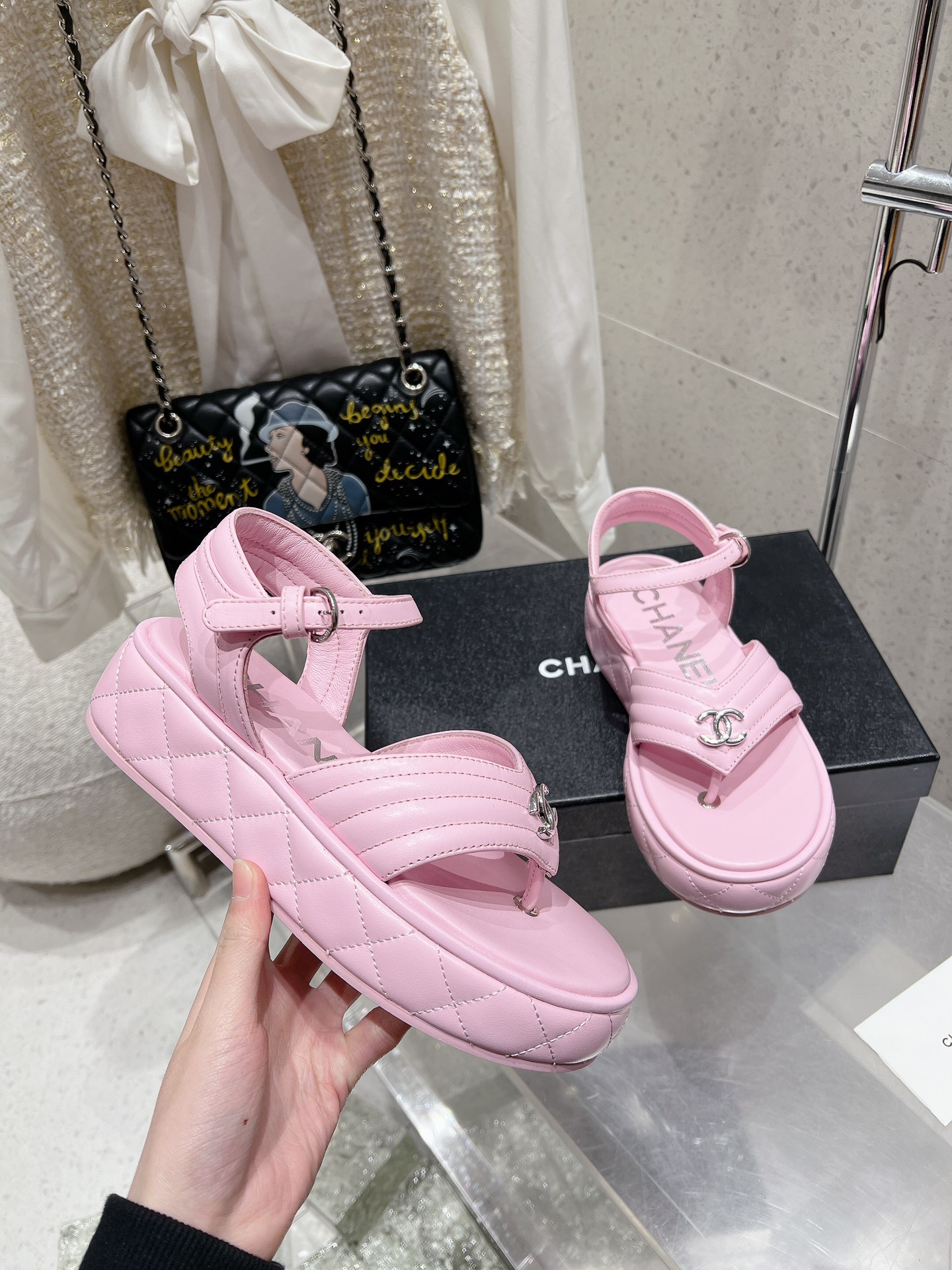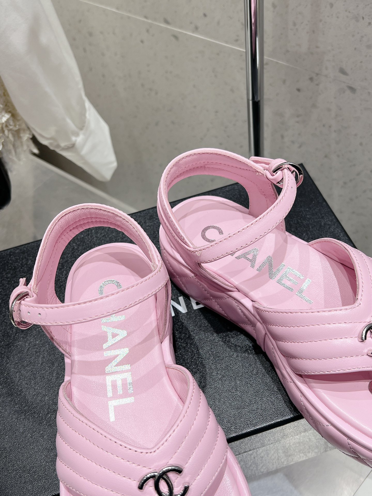 這款鞋子是AAAAA 1:1 質量(非常棒). 使用了和原版一模一樣的材料. 商標部分也保持了和香奈兒/Chanel一樣. 圖片拍攝是實物鞋子拍攝, 您所收到的實物保證和我們圖片一模一樣.