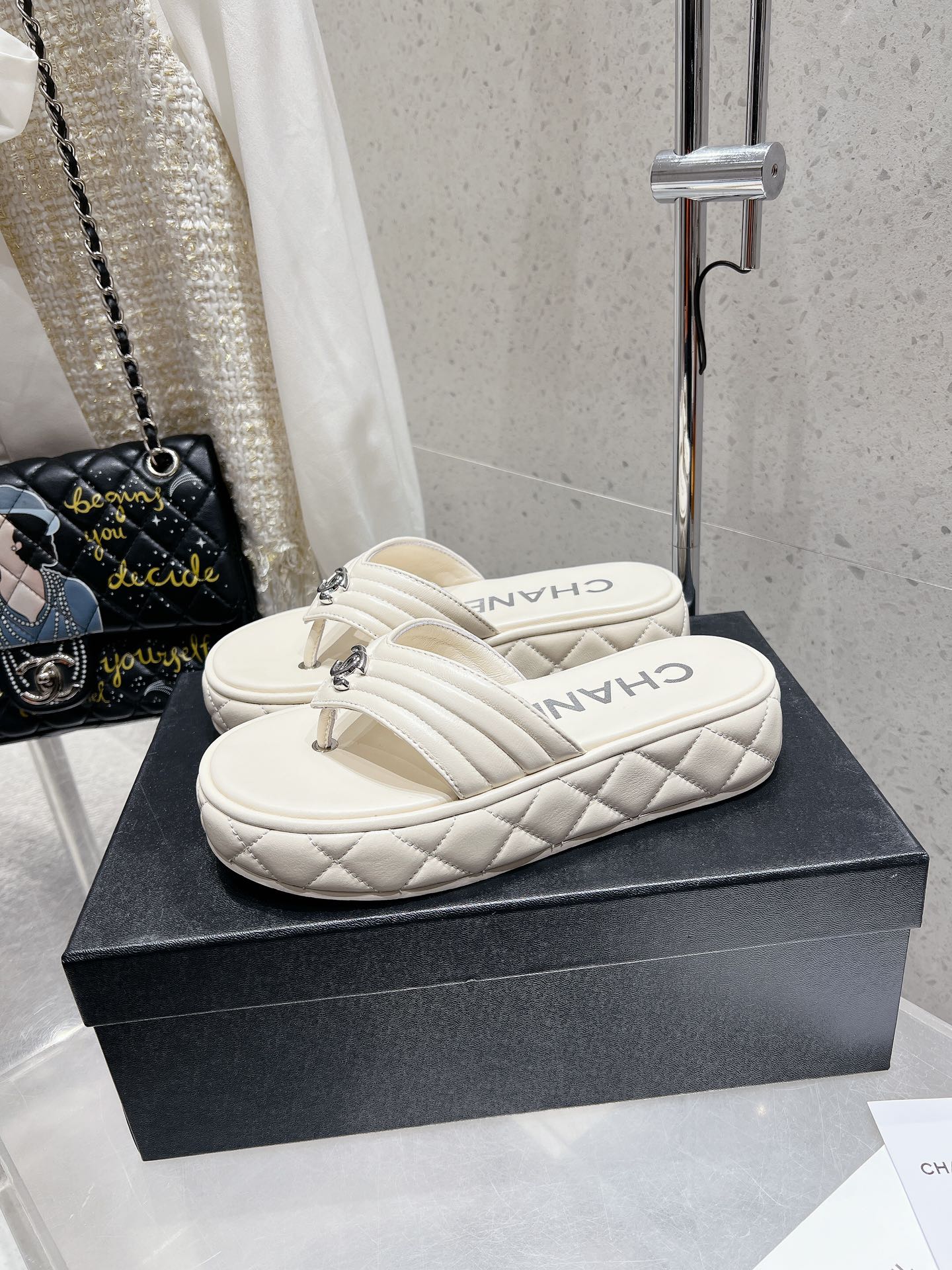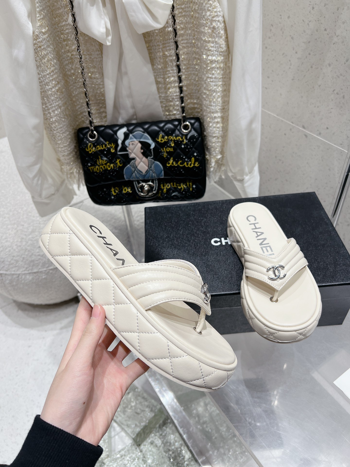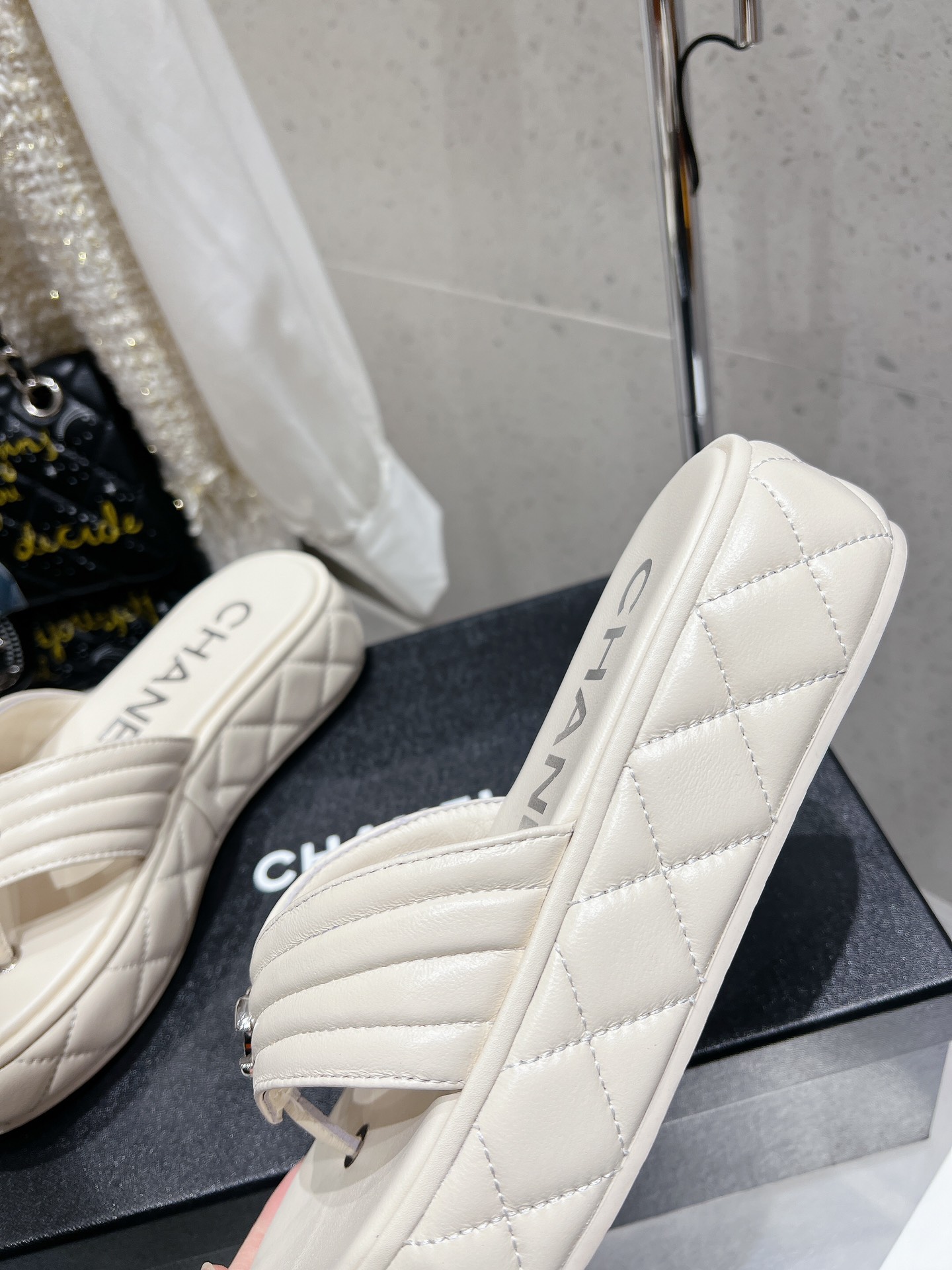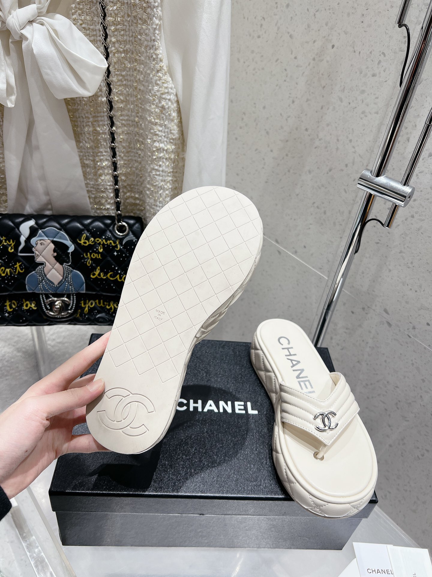 這款鞋子是AAAAA 1:1 質量(非常棒). 使用了和原版一模一樣的材料. 商標部分也保持了和香奈兒/Chanel一樣. 圖片拍攝是實物鞋子拍攝, 您所收到的實物保證和我們圖片一模一樣.