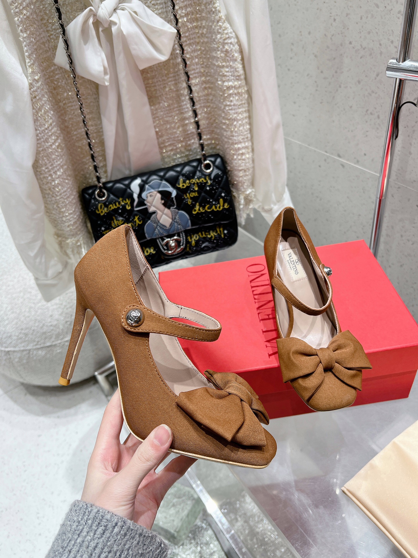 這款鞋子是AAAAA 1:1 質量(非常棒). 使用了和原版一模一樣的材料. 商標部分也保持了和瓦倫蒂諾/Valentino一樣. 圖片拍攝是實物鞋子拍攝, 您所收到的實物保證和我們圖片一模一樣.