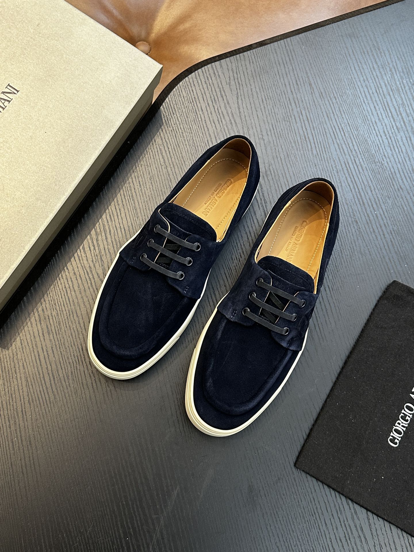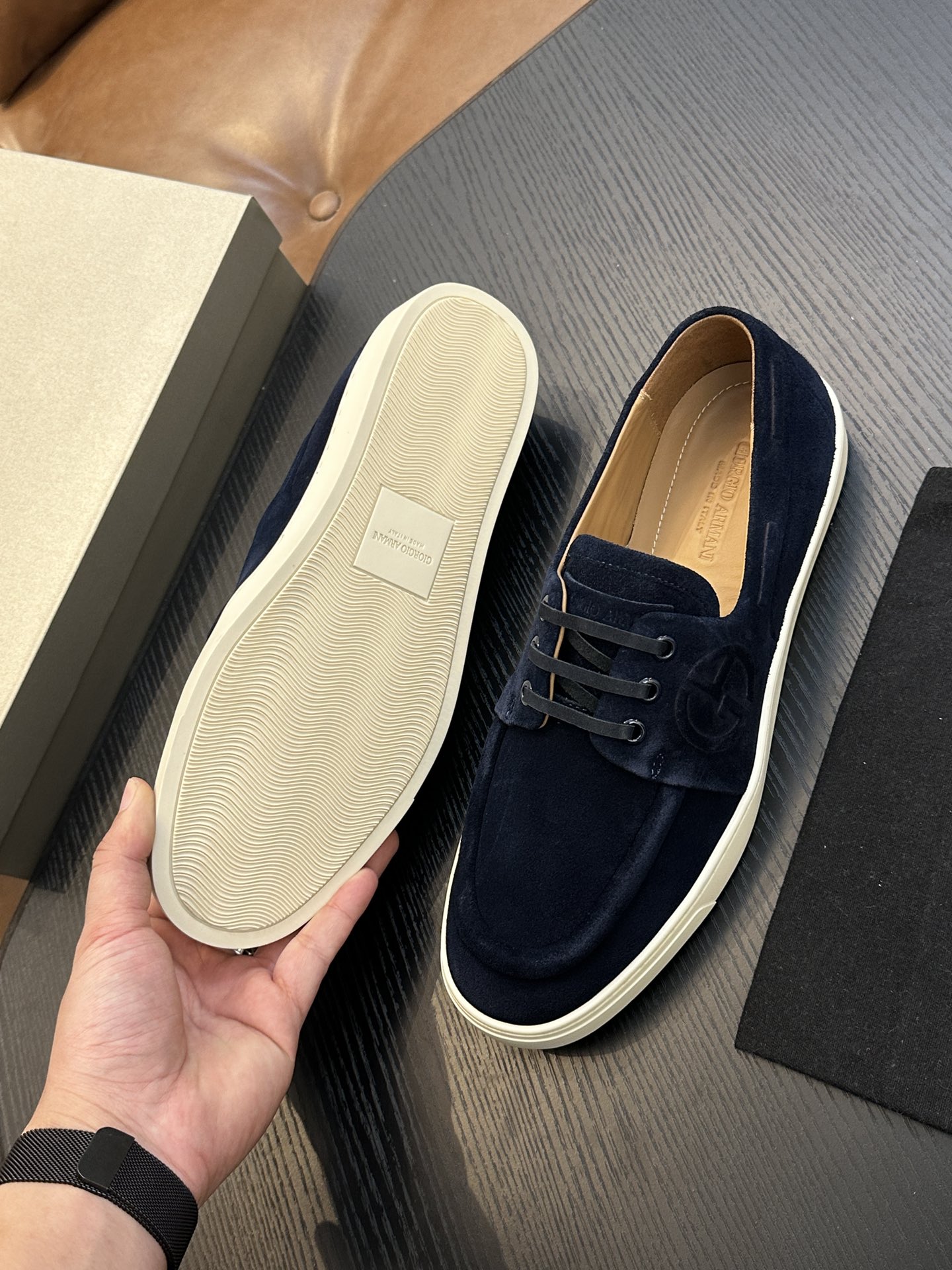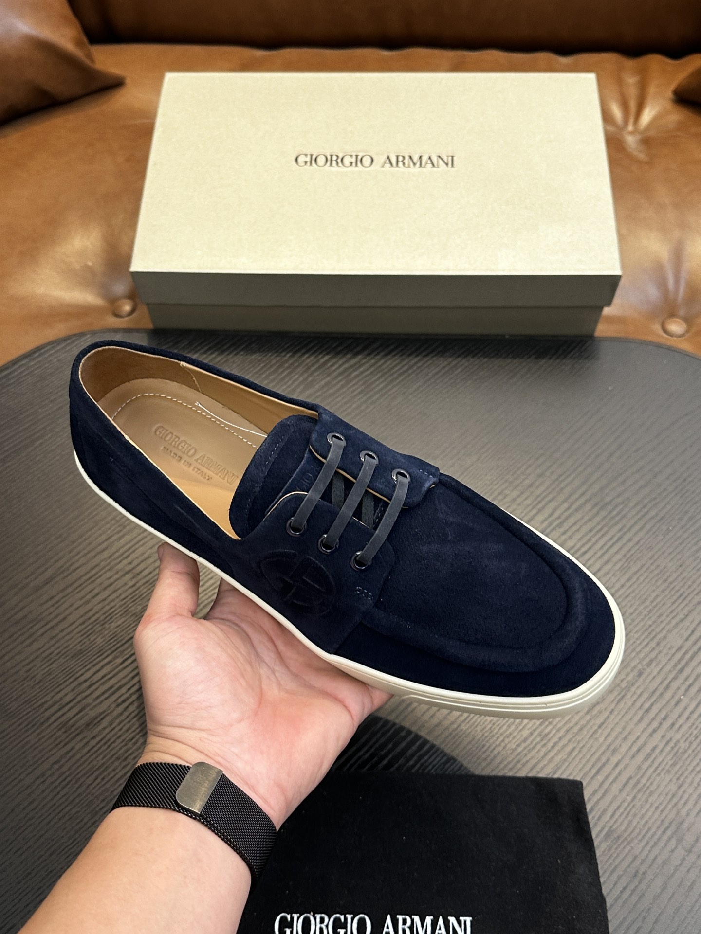 這款鞋子是AAAAA 1:1 質量(非常棒). 使用了和原版一模一樣的材料. 商標部分也保持了和阿瑪尼/Armani一樣. 圖片拍攝是實物鞋子拍攝, 您所收到的實物保證和我們圖片一模一樣.