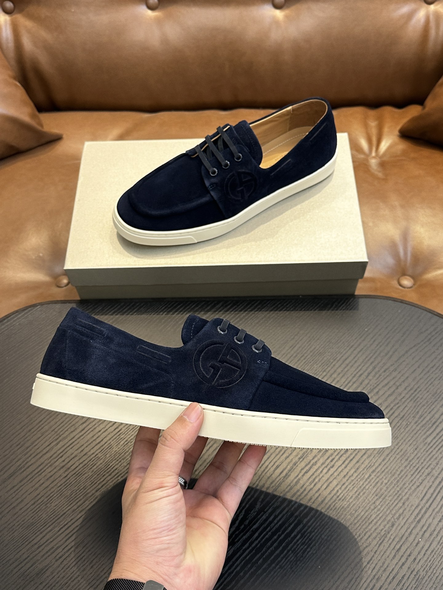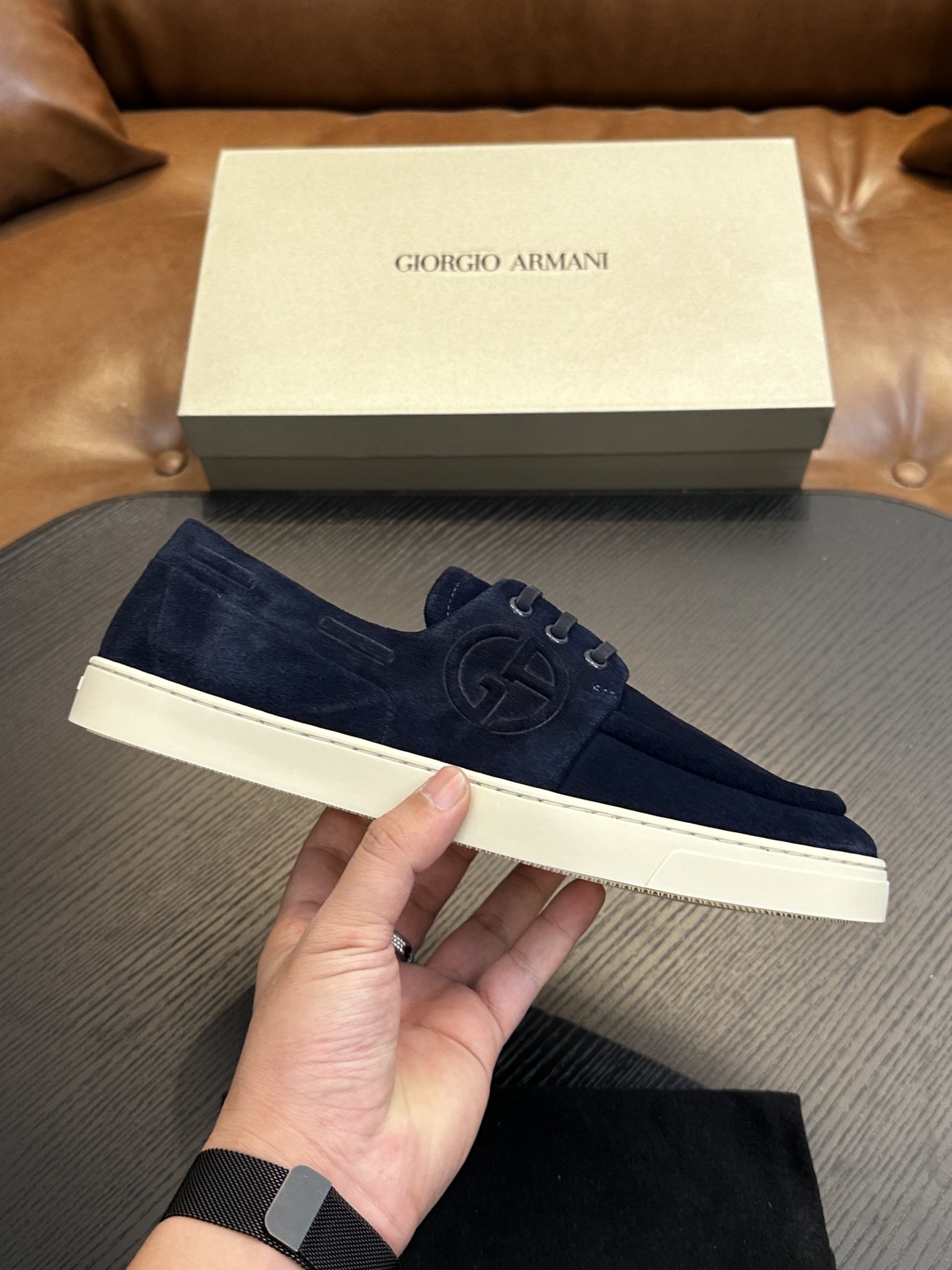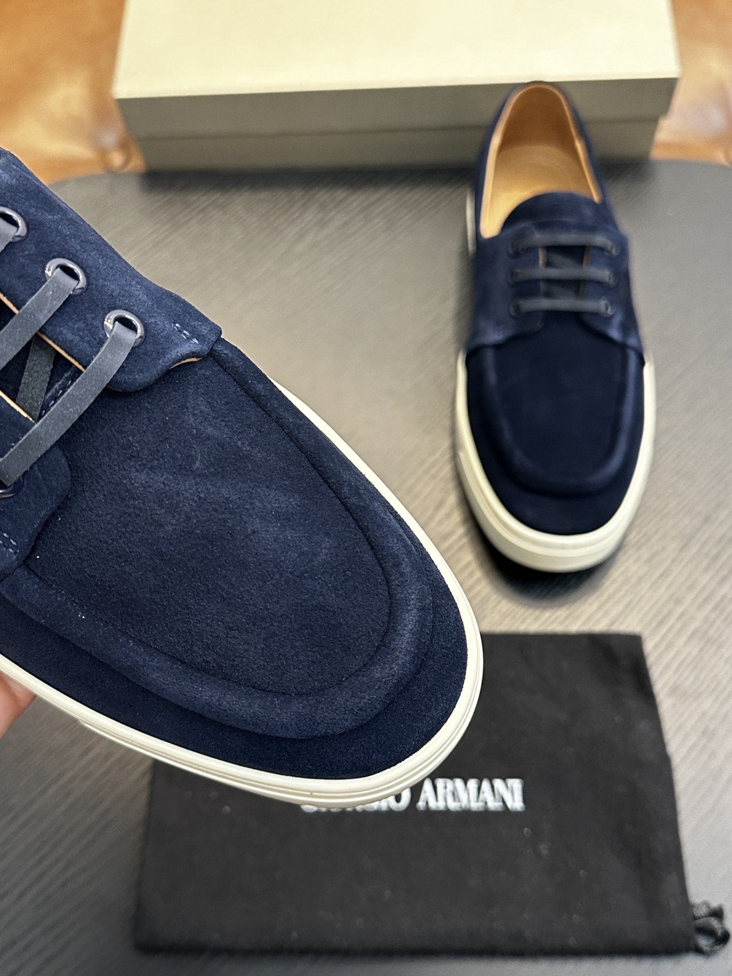 這款鞋子是AAAAA 1:1 質量(非常棒). 使用了和原版一模一樣的材料. 商標部分也保持了和阿瑪尼/Armani一樣. 圖片拍攝是實物鞋子拍攝, 您所收到的實物保證和我們圖片一模一樣.
