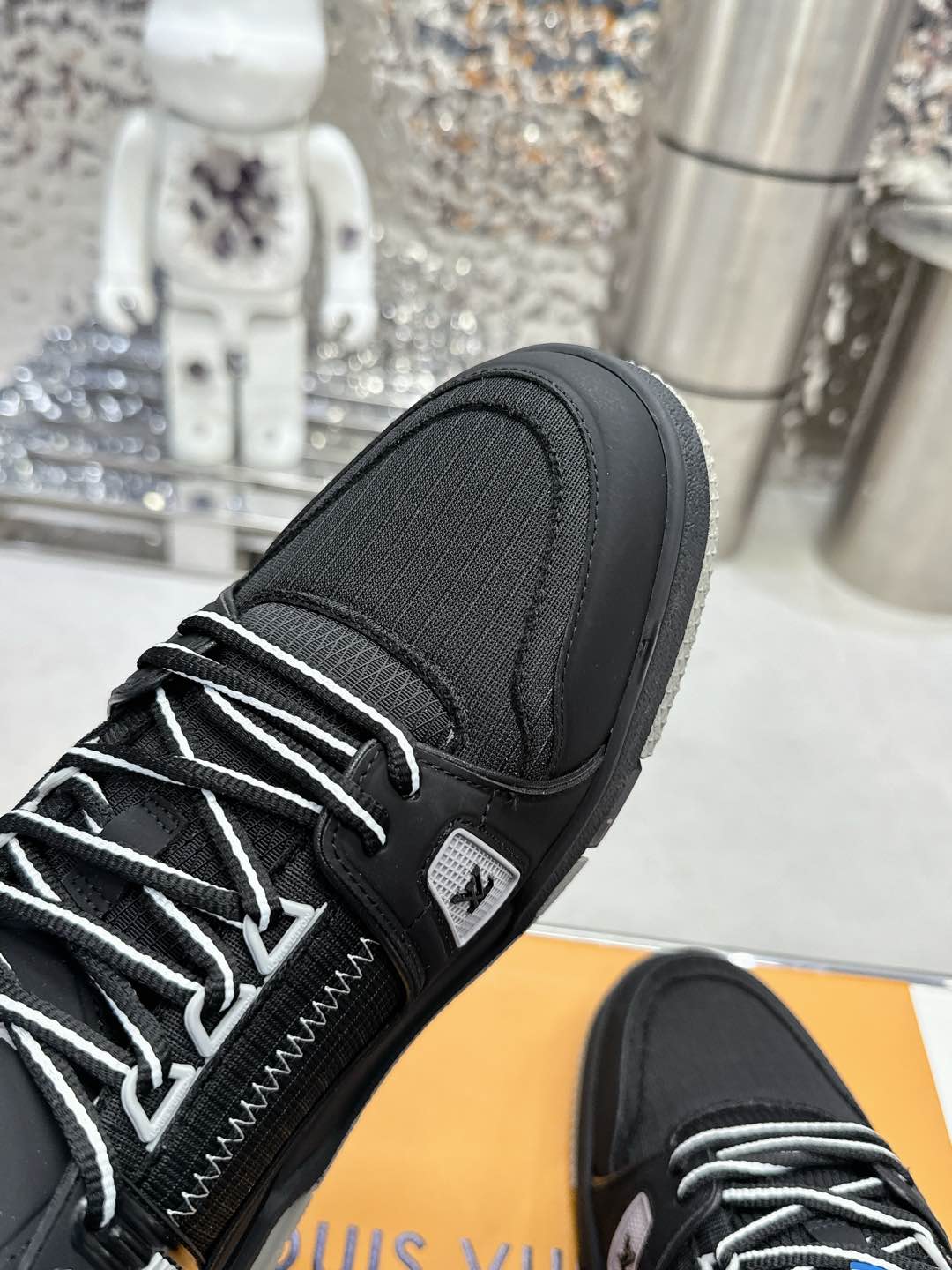 這款鞋子是AAAAA 1:1 質量(非常棒). 使用了和原版一模一樣的材料. 商標部分也保持了和路易威登/Louis Vuitton一樣. 圖片拍攝是實物鞋子拍攝, 您所收到的實物保證和我們圖片一模一樣.