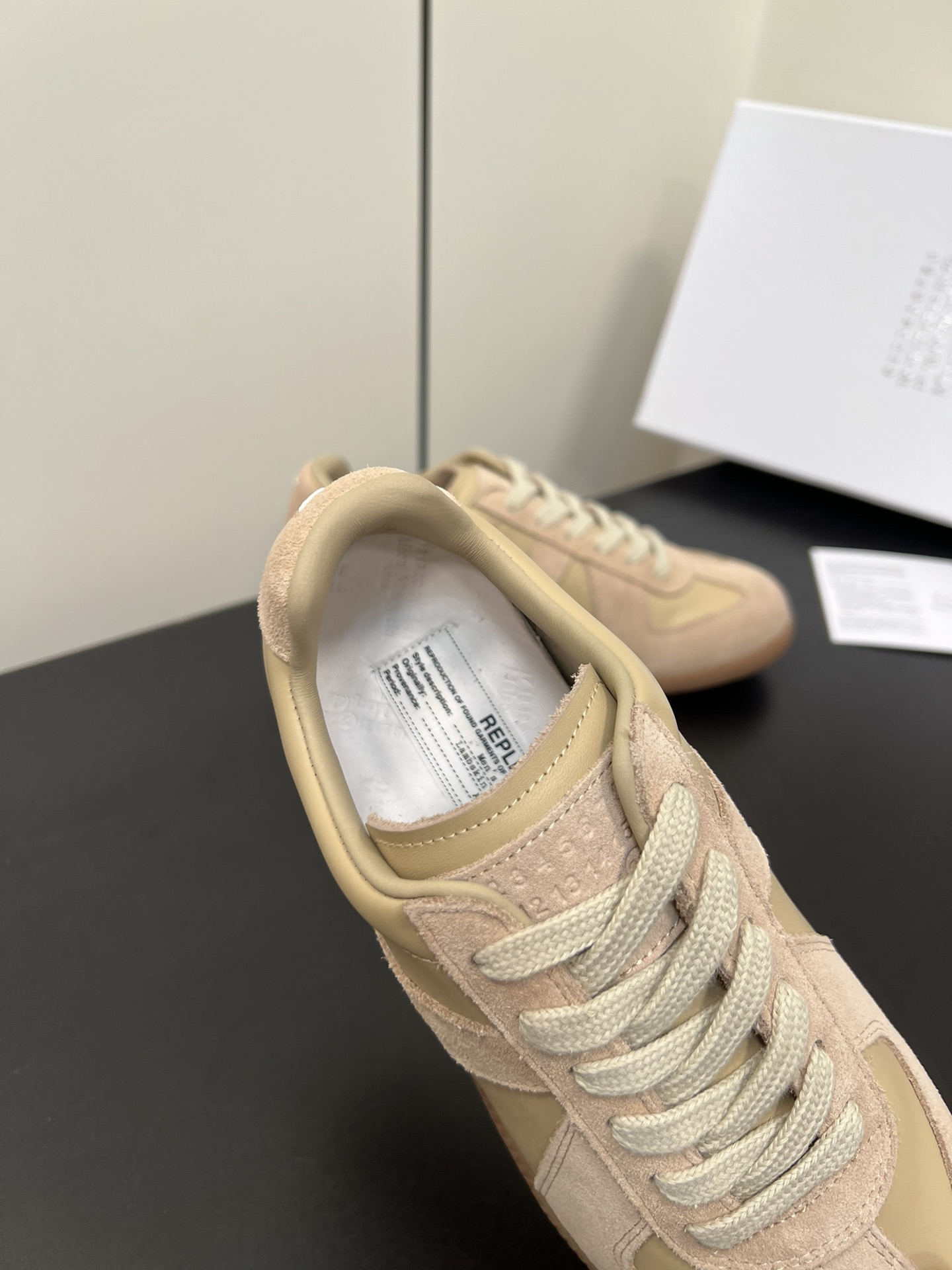 這款鞋子是AAAAA 1:1 質量(非常棒). 使用了和原版一模一樣的材料. 商標部分也保持了和Maison Margiela一樣. 圖片拍攝是實物鞋子拍攝, 您所收到的實物保證和我們圖片一模一樣.