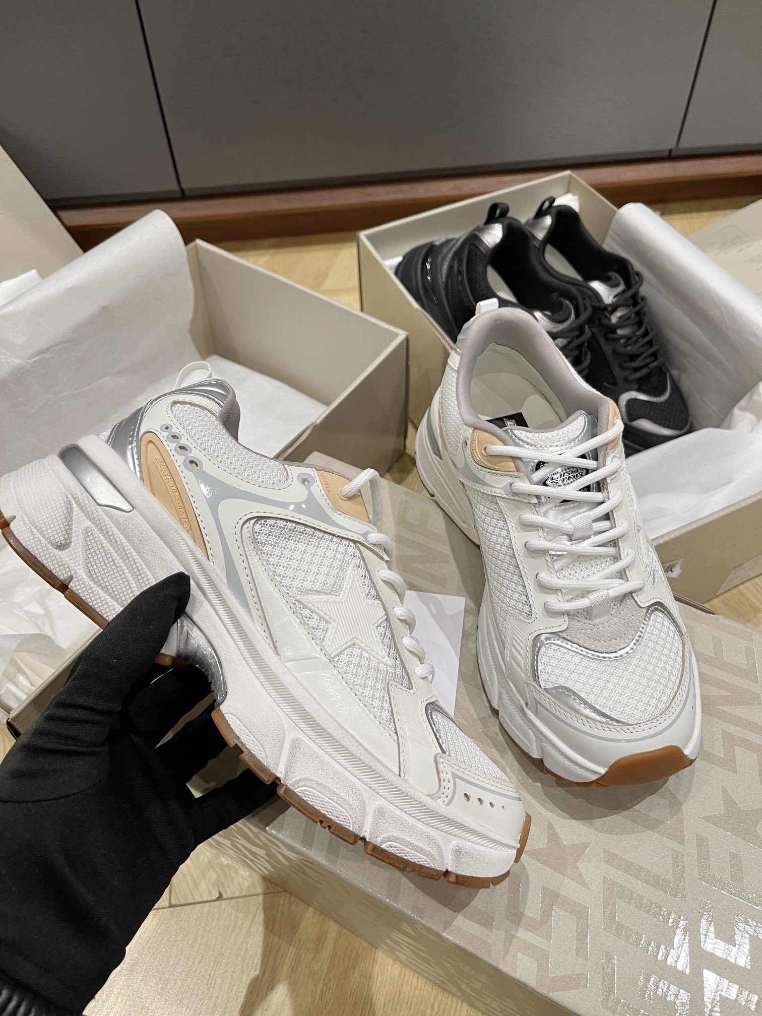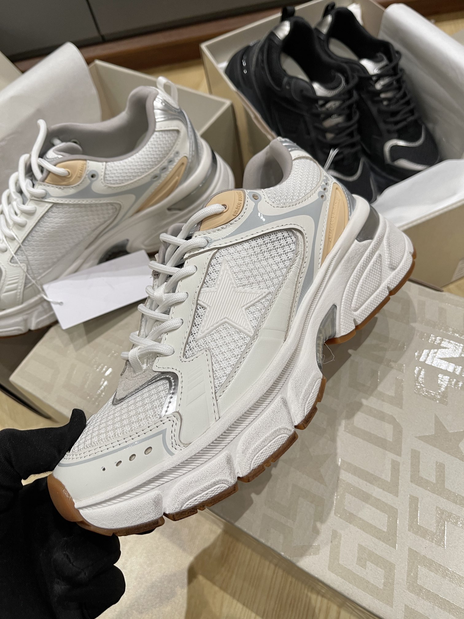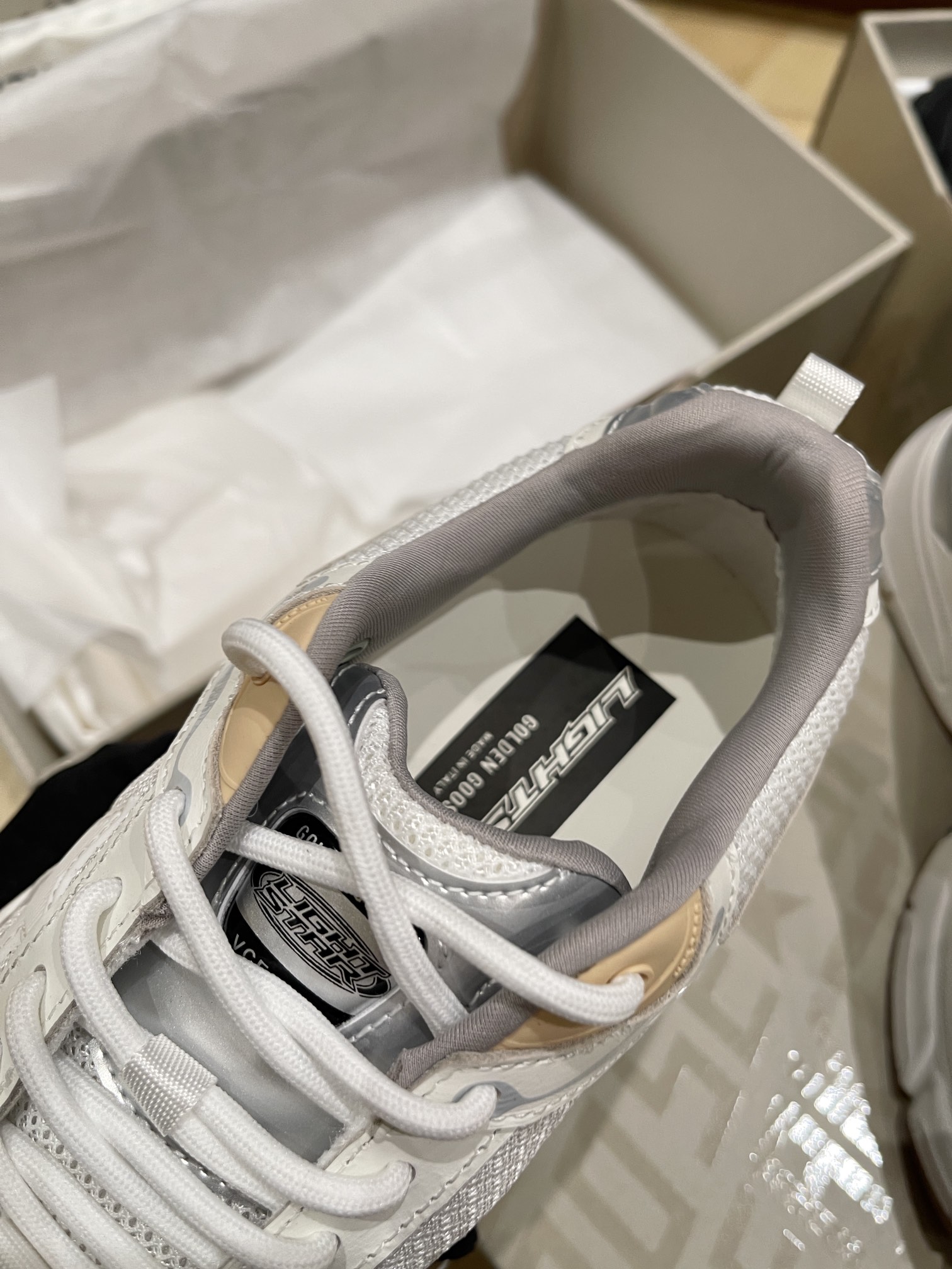 這款鞋子是AAAAA 1:1 質量(非常棒). 使用了和原版一模一樣的材料. 商標部分也保持了和Golden Goose一樣. 圖片拍攝是實物鞋子拍攝, 您所收到的實物保證和我們圖片一模一樣.
