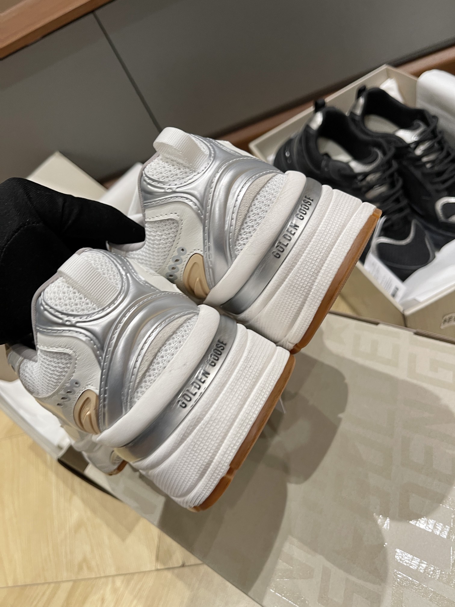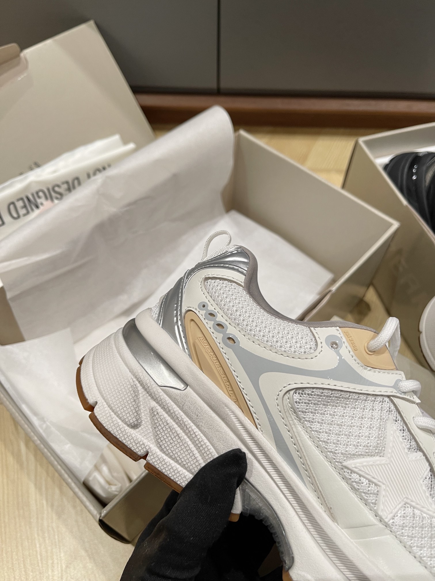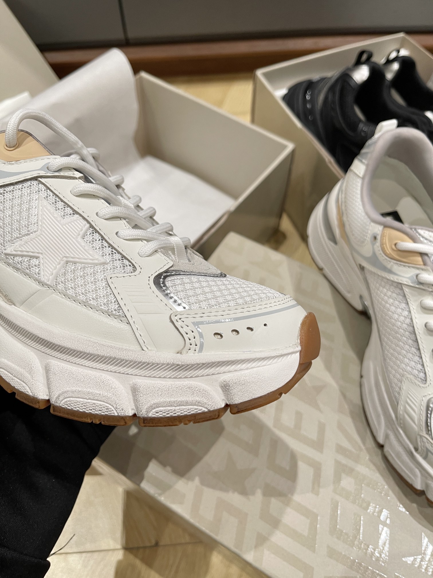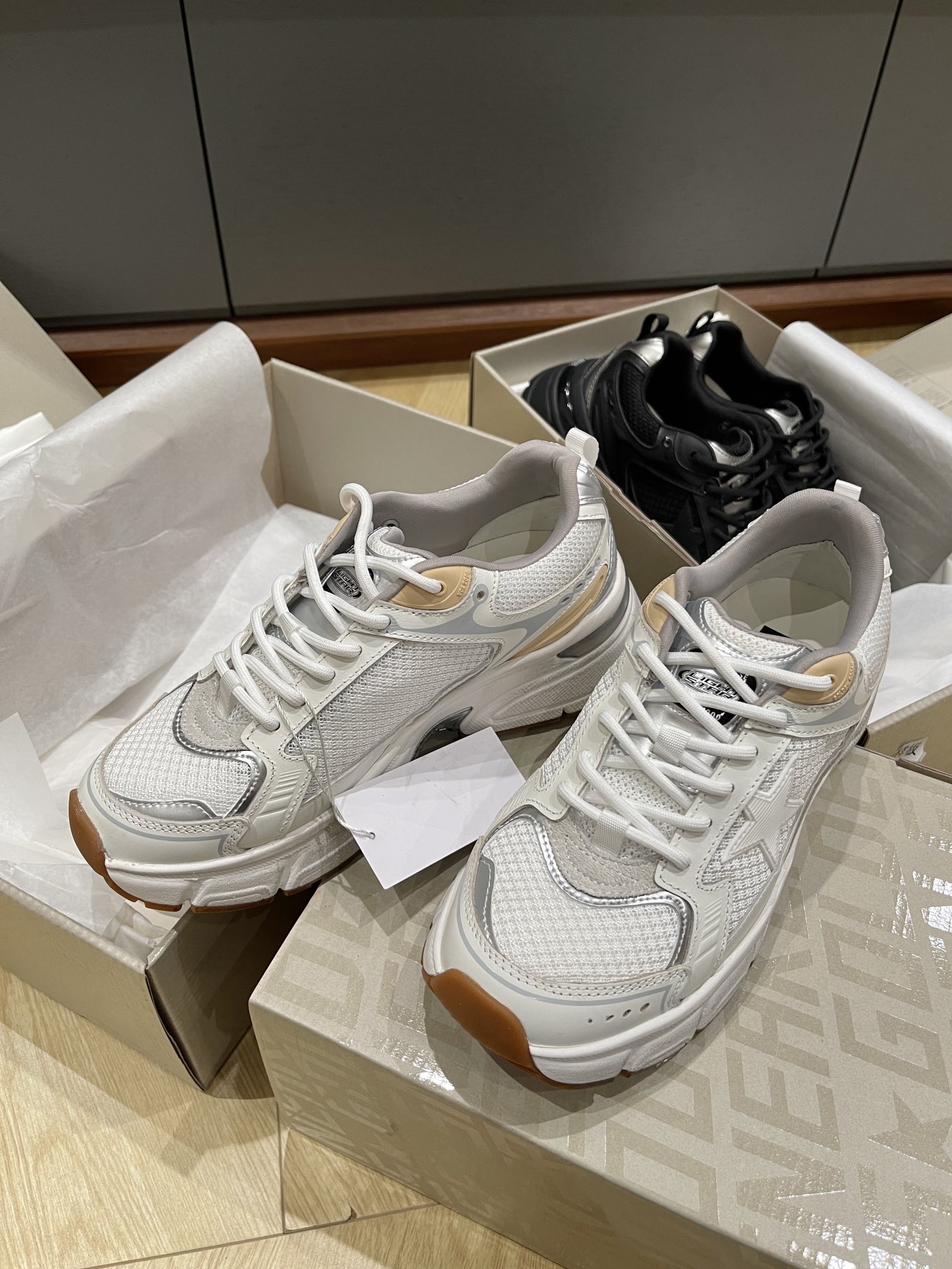這款鞋子是AAAAA 1:1 質量(非常棒). 使用了和原版一模一樣的材料. 商標部分也保持了和Golden Goose一樣. 圖片拍攝是實物鞋子拍攝, 您所收到的實物保證和我們圖片一模一樣.