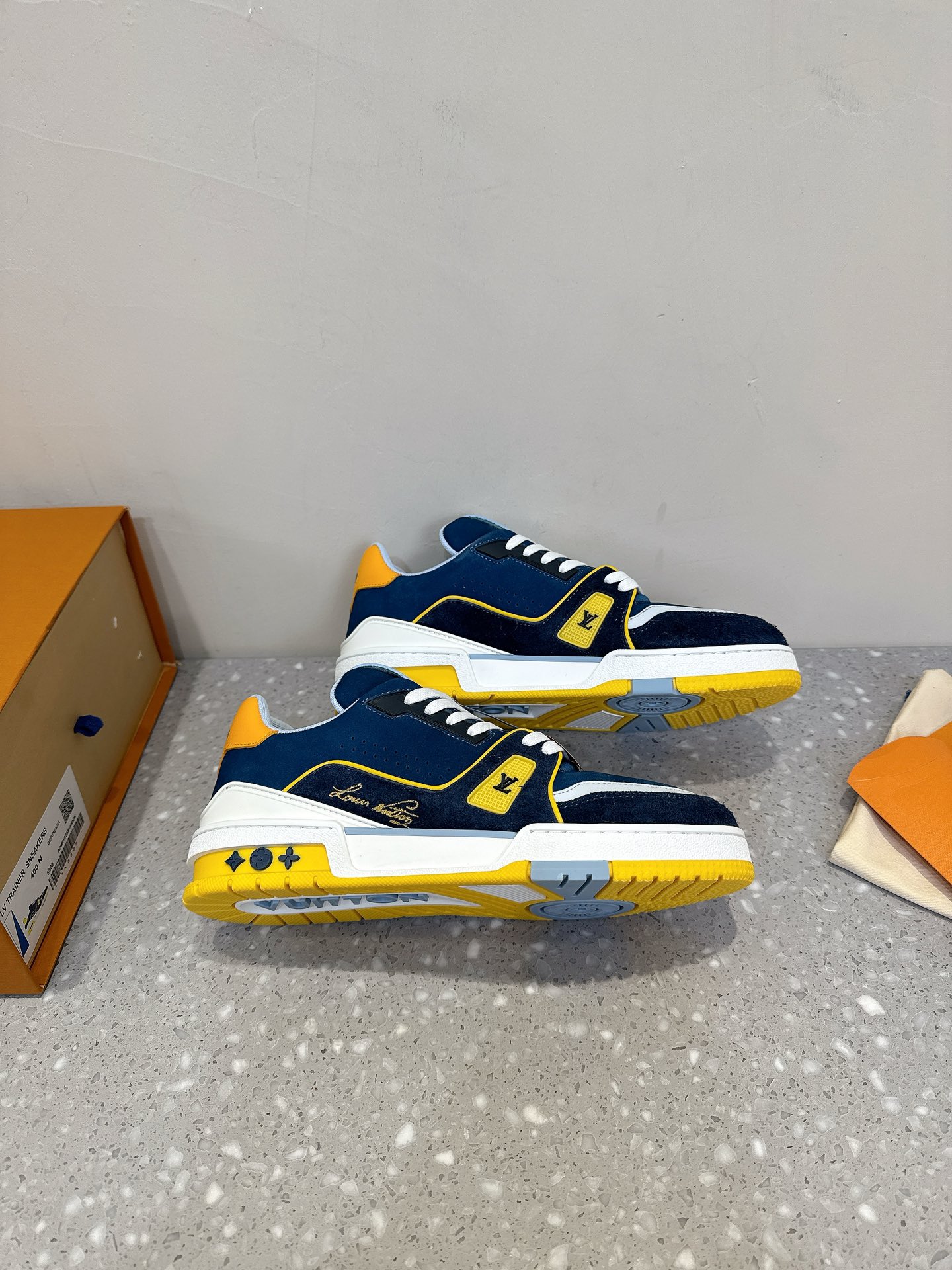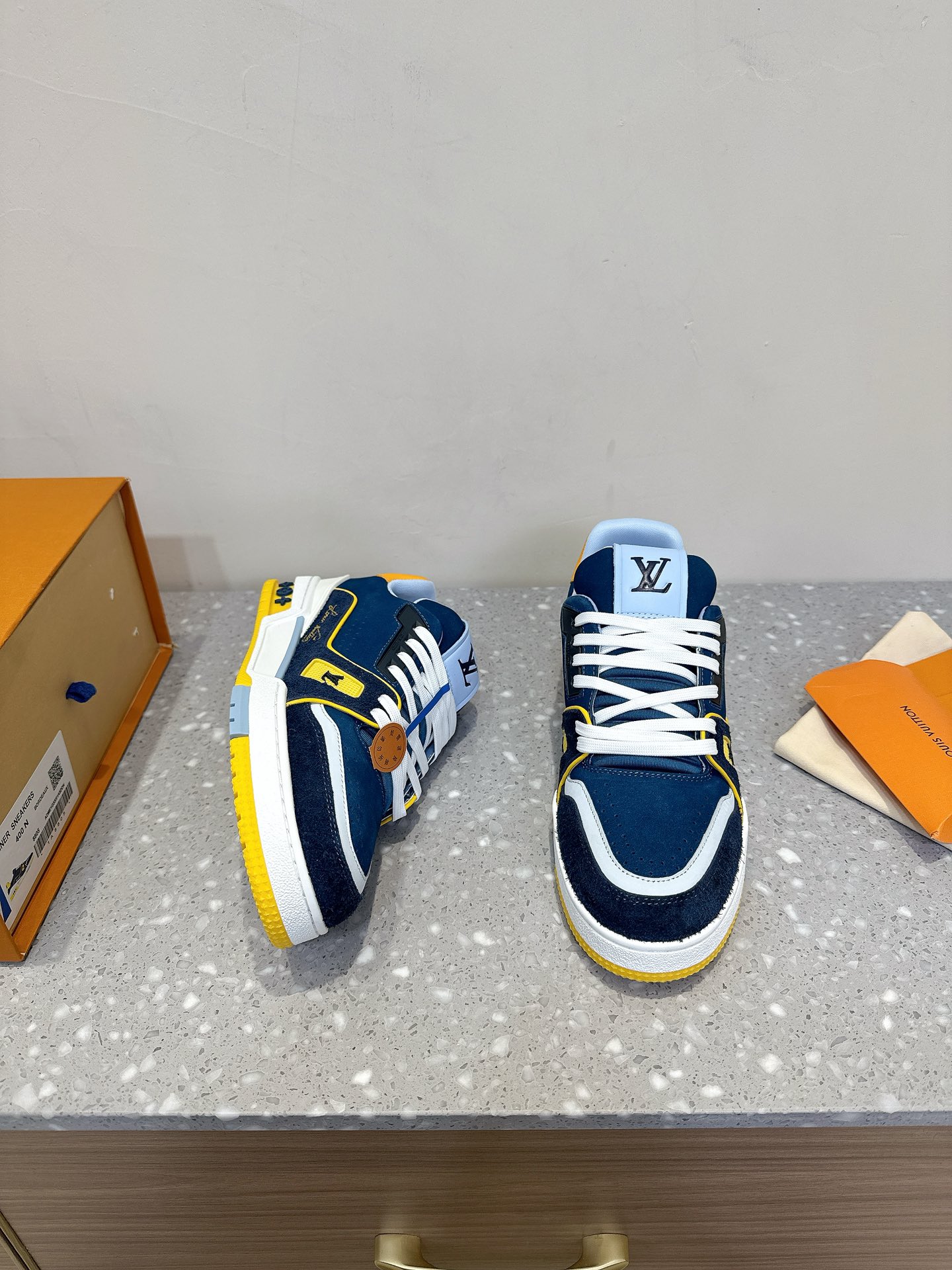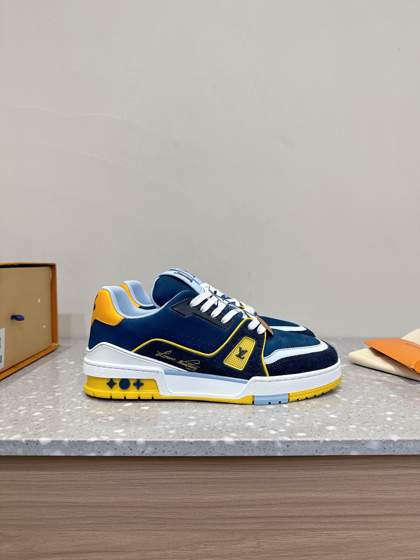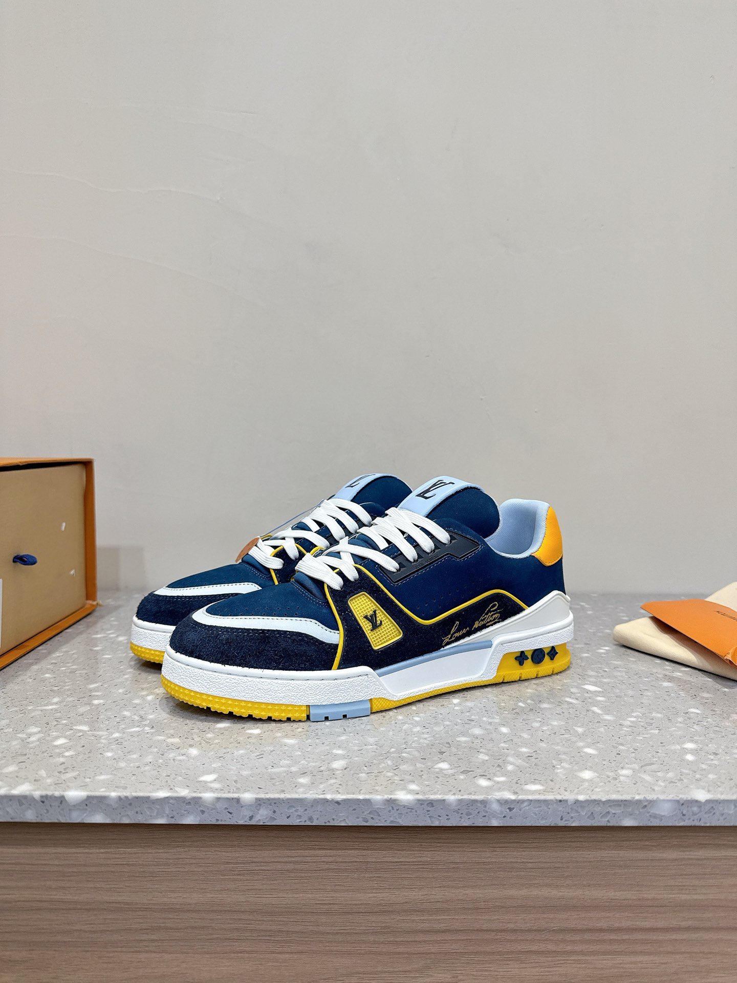 這款鞋子是AAAAA 1:1 質量(非常棒). 使用了和原版一模一樣的材料. 商標部分也保持了和路易威登/Louis Vuitton一樣. 圖片拍攝是實物鞋子拍攝, 您所收到的實物保證和我們圖片一模一樣.