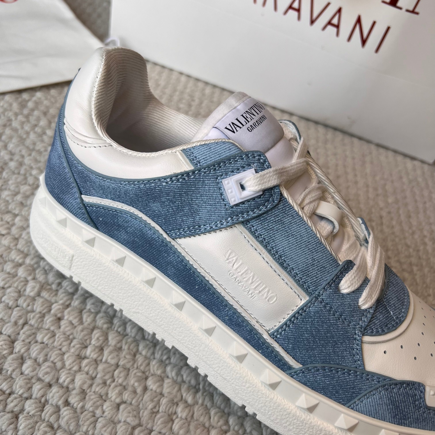 這款鞋子是AAAAA 1:1 質量(非常棒). 使用了和原版一模一樣的材料. 商標部分也保持了和瓦倫蒂諾/Valentino一樣. 圖片拍攝是實物鞋子拍攝, 您所收到的實物保證和我們圖片一模一樣.