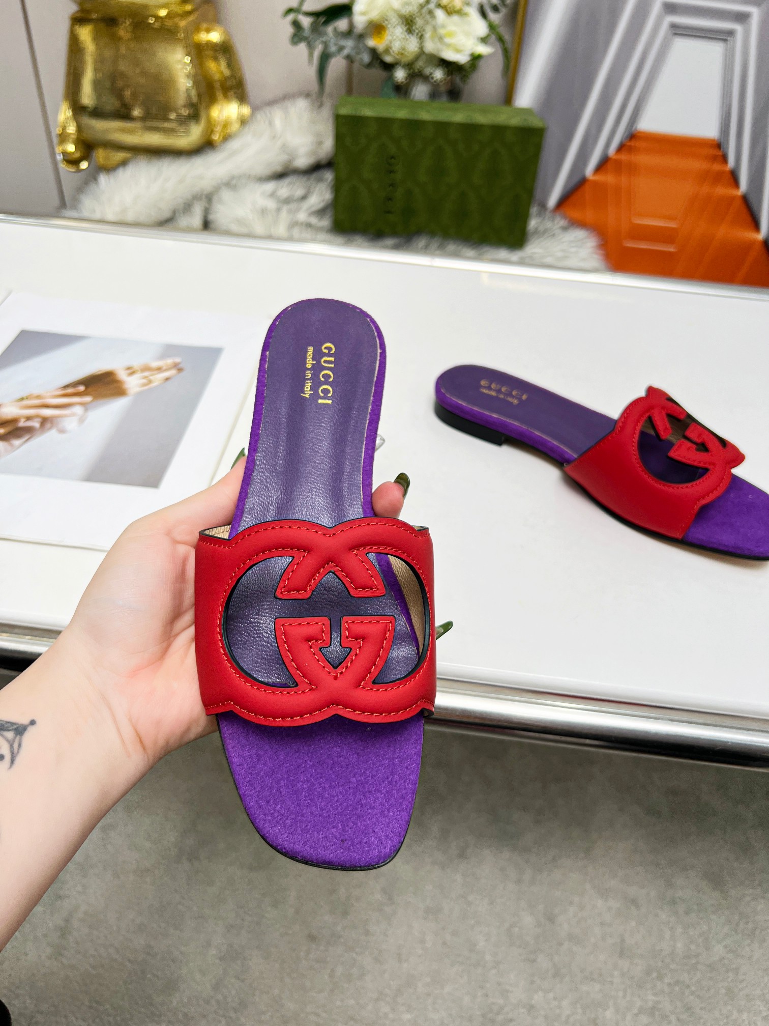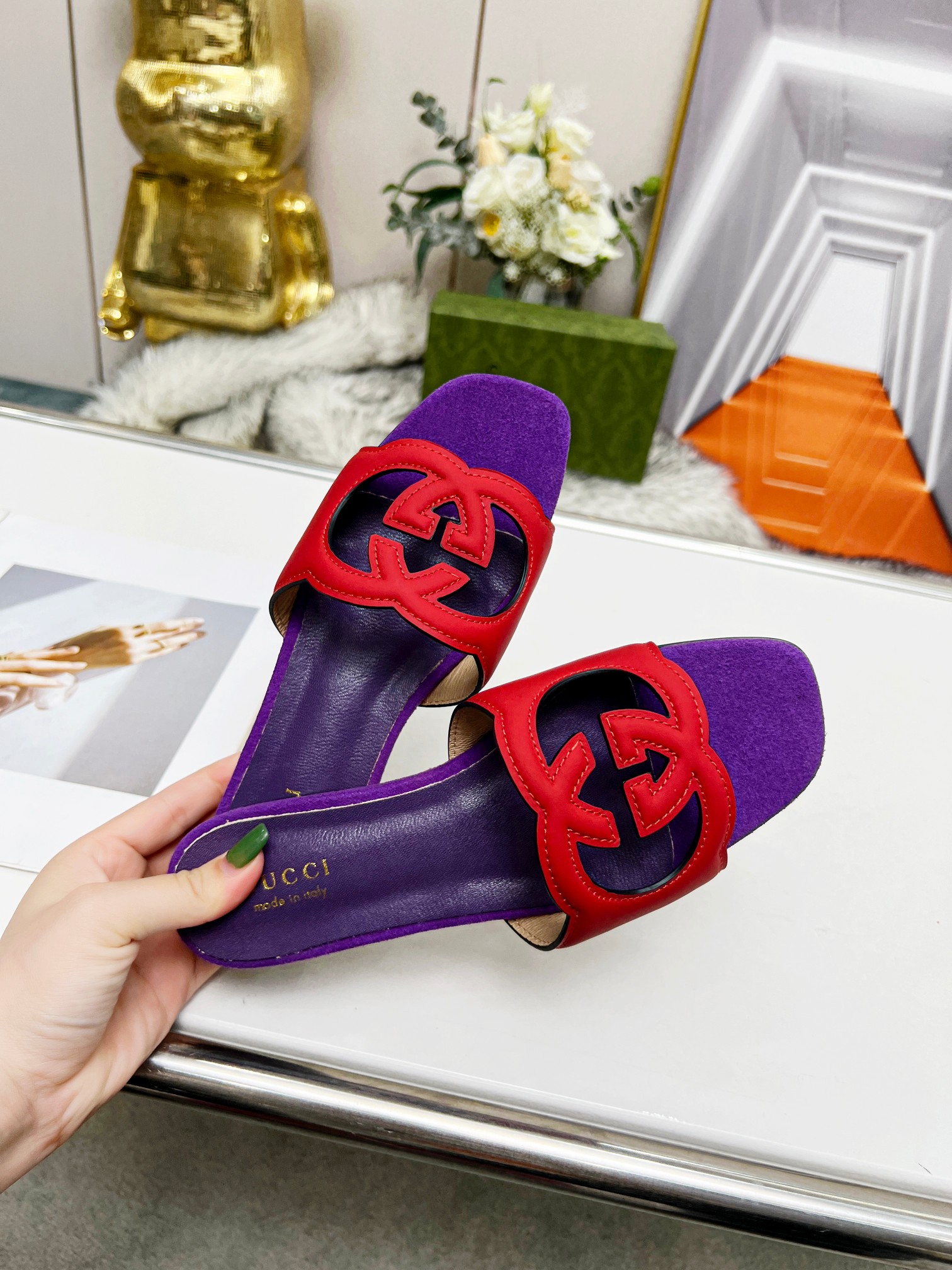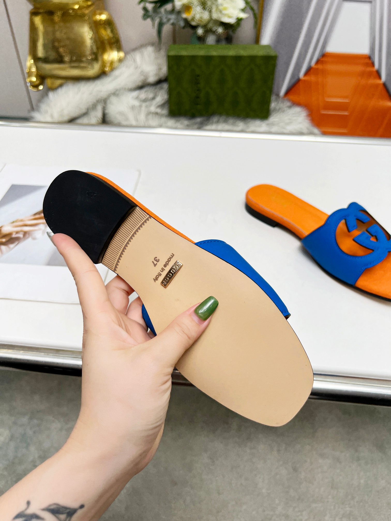 這款鞋子是AAAAA 1:1 質量(非常棒). 使用了和原版一模一樣的材料. 商標部分也保持了和古奇/Gucci一樣. 圖片拍攝是實物鞋子拍攝, 您所收到的實物保證和我們圖片一模一樣.