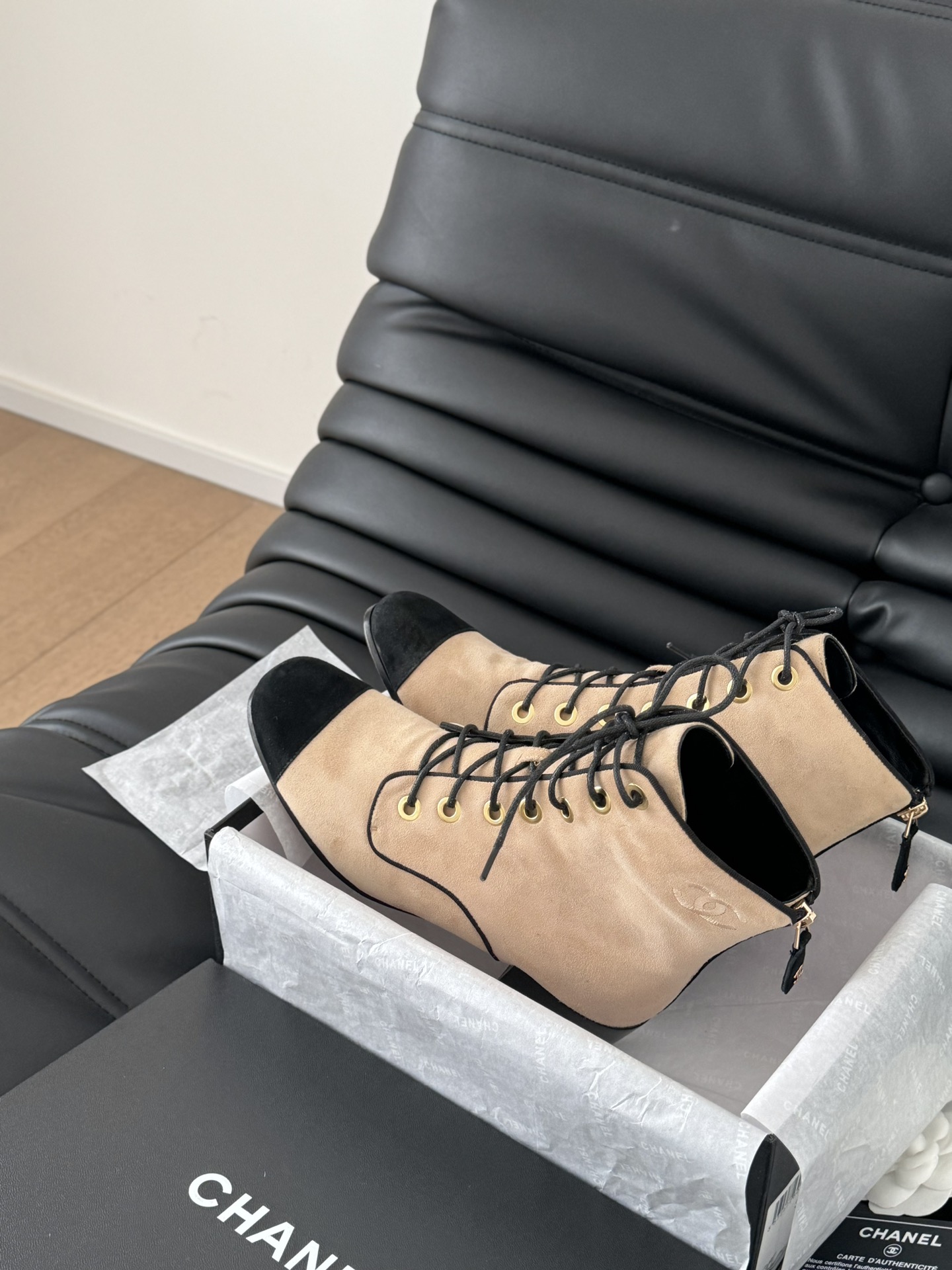 這款鞋子是AAAAA 1:1 質量(非常棒). 使用了和原版一模一樣的材料. 商標部分也保持了和香奈兒/Chanel一樣. 圖片拍攝是實物鞋子拍攝, 您所收到的實物保證和我們圖片一模一樣.