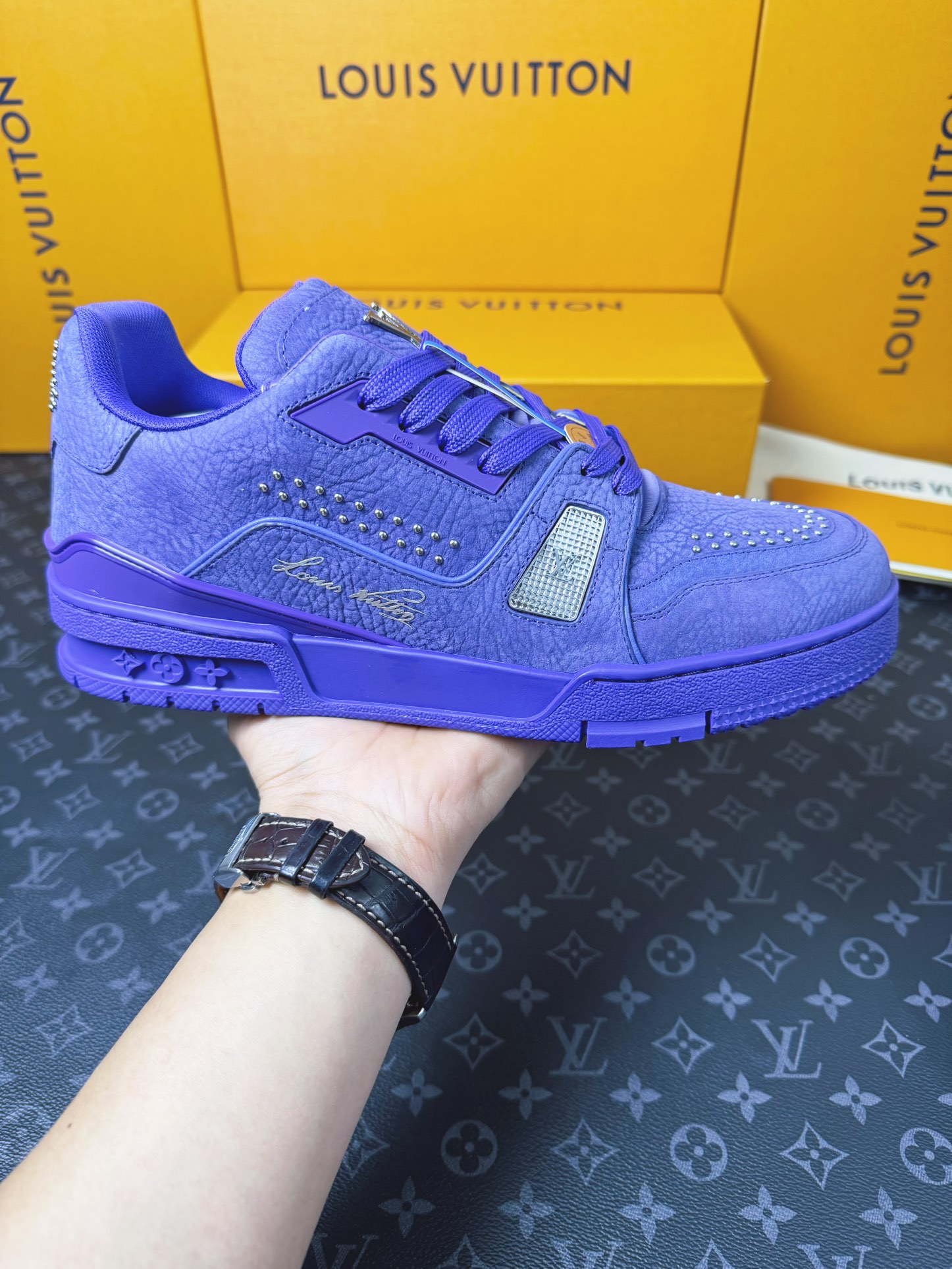 這款鞋子是AAAAA 1:1 質量(非常棒). 使用了和原版一模一樣的材料. 商標部分也保持了和路易威登/Louis Vuitton一樣. 圖片拍攝是實物鞋子拍攝, 您所收到的實物保證和我們圖片一模一樣.
