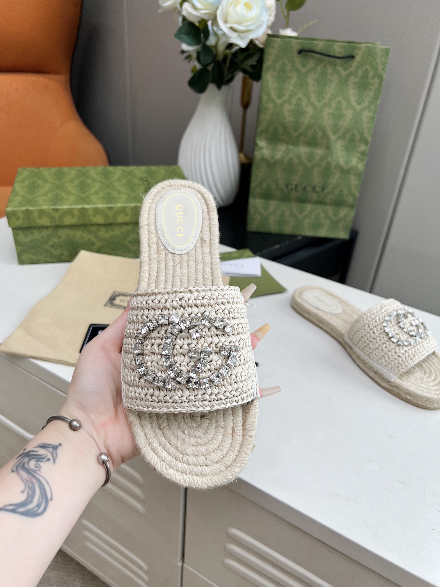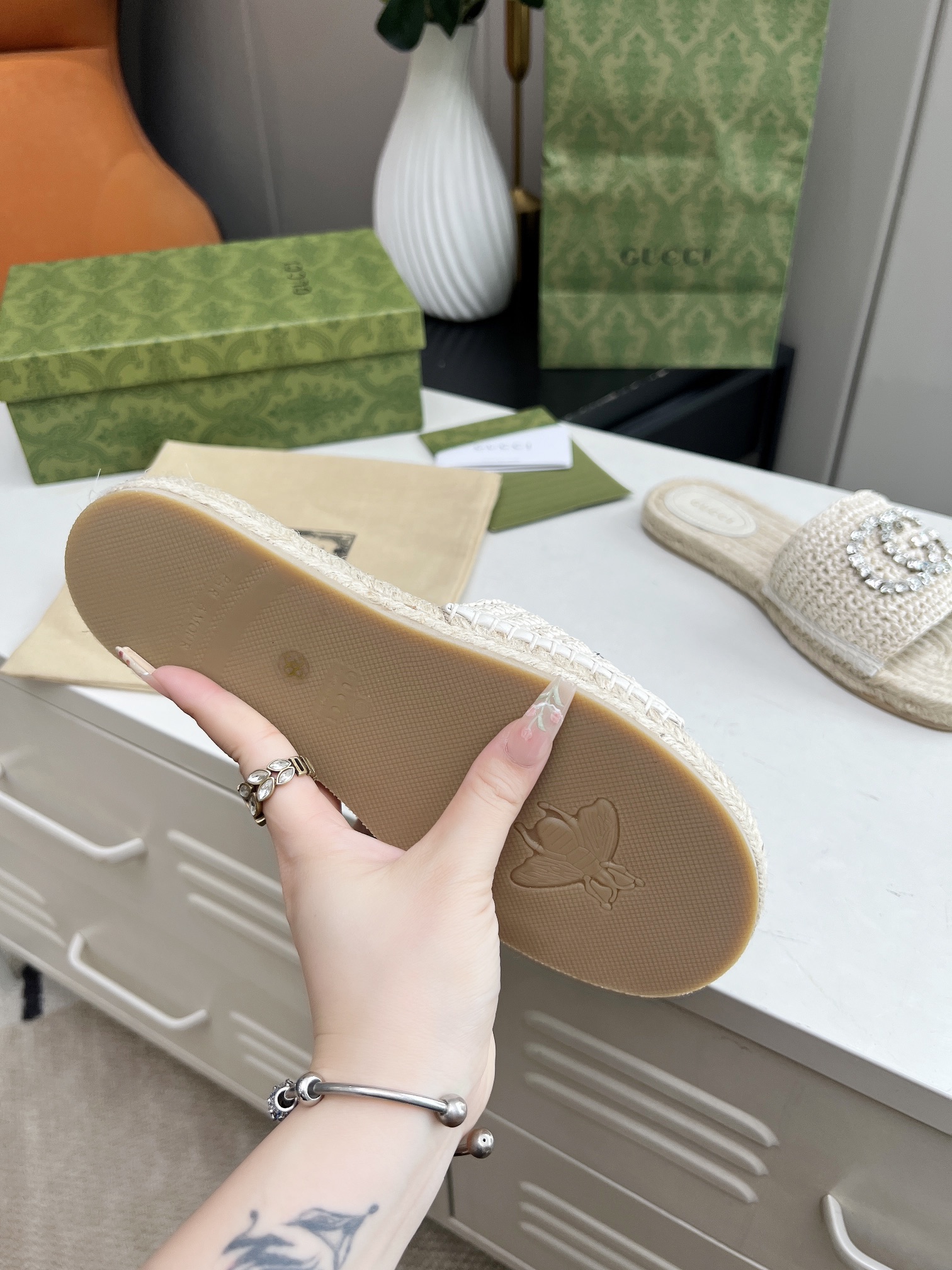 這款鞋子是AAAAA 1:1 質量(非常棒). 使用了和原版一模一樣的材料. 商標部分也保持了和古奇/Gucci一樣. 圖片拍攝是實物鞋子拍攝, 您所收到的實物保證和我們圖片一模一樣.
