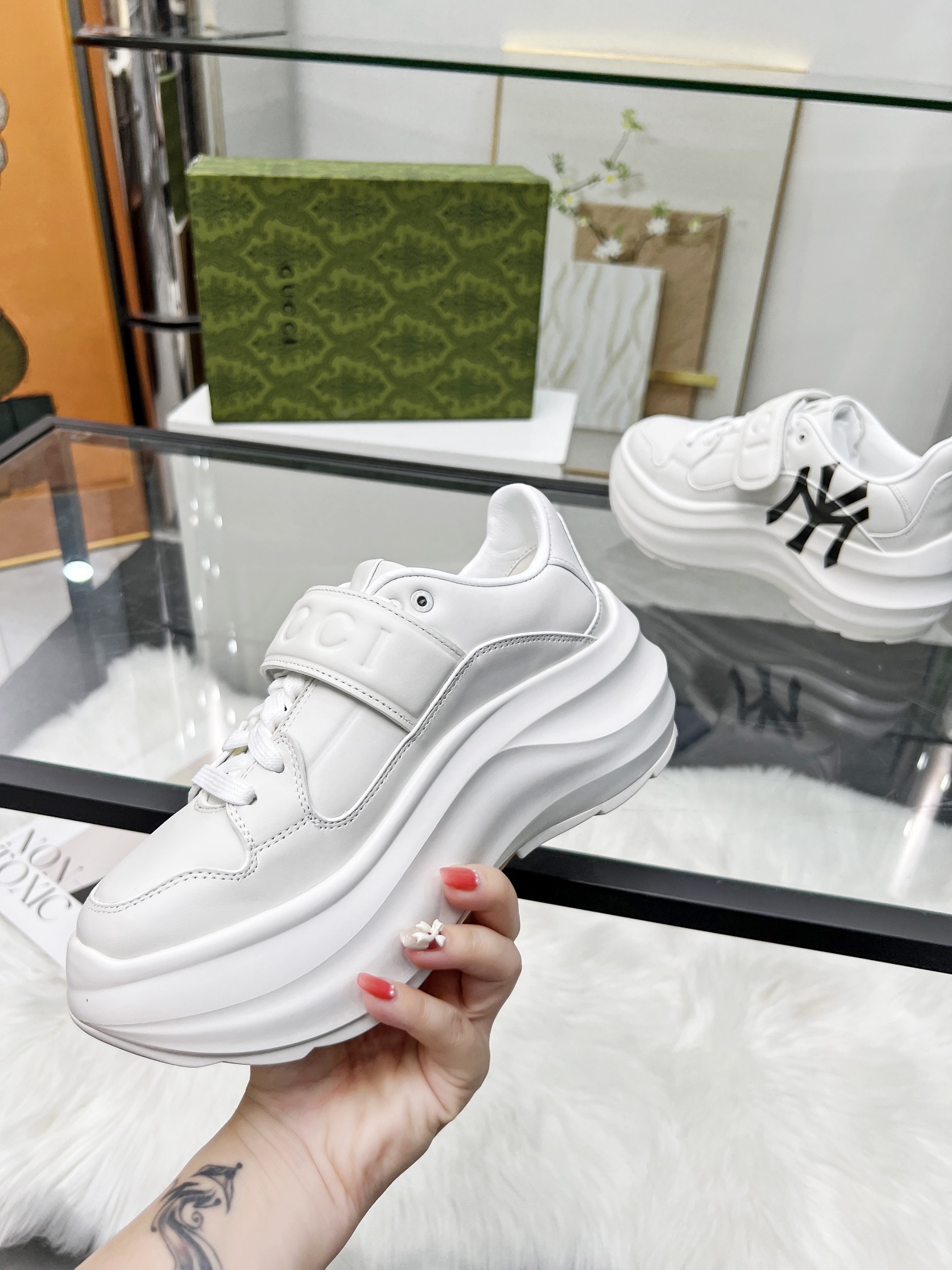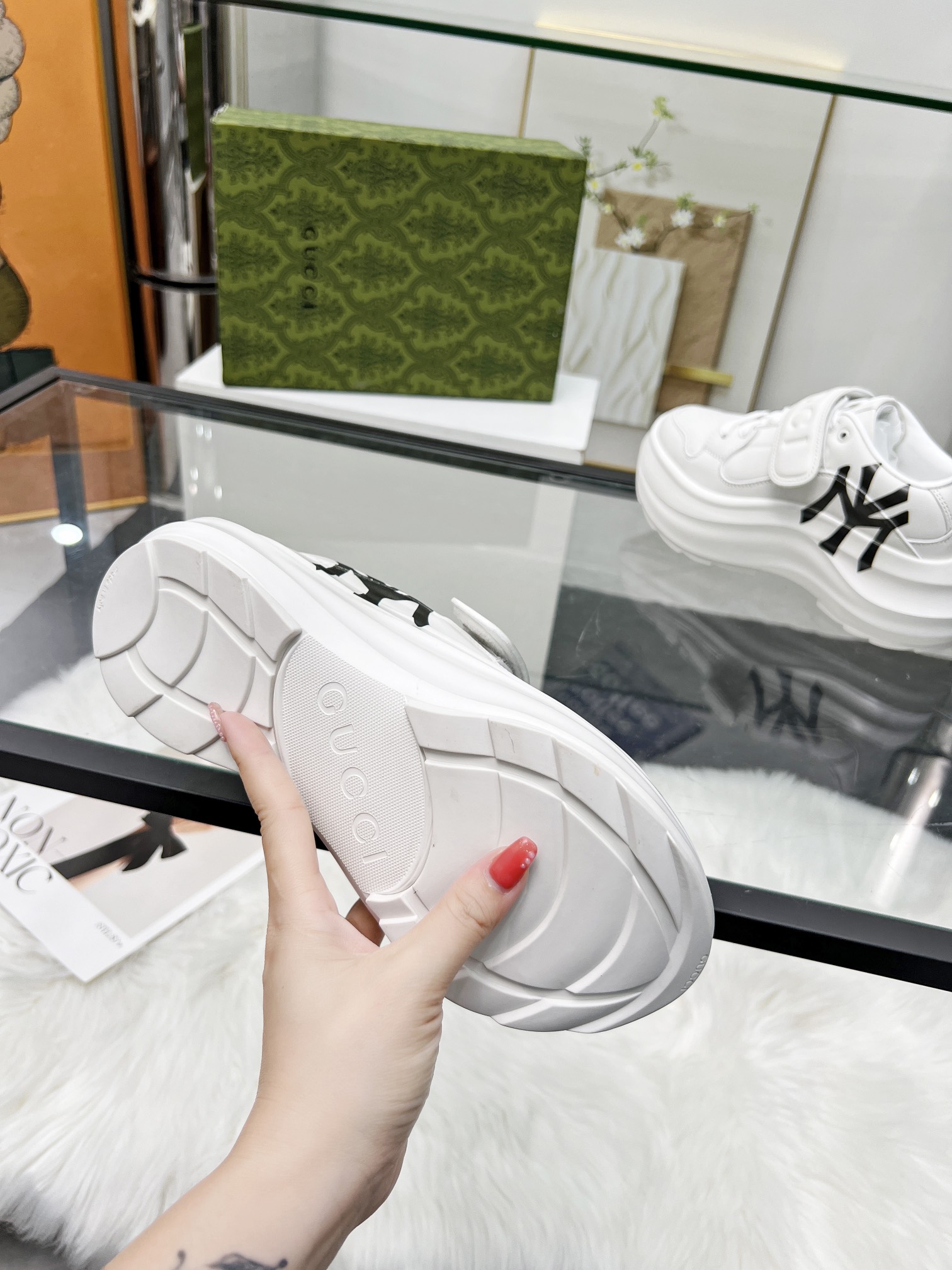 這款鞋子是AAAAA 1:1 質量(非常棒). 使用了和原版一模一樣的材料. 商標部分也保持了和古奇/Gucci一樣. 圖片拍攝是實物鞋子拍攝, 您所收到的實物保證和我們圖片一模一樣.