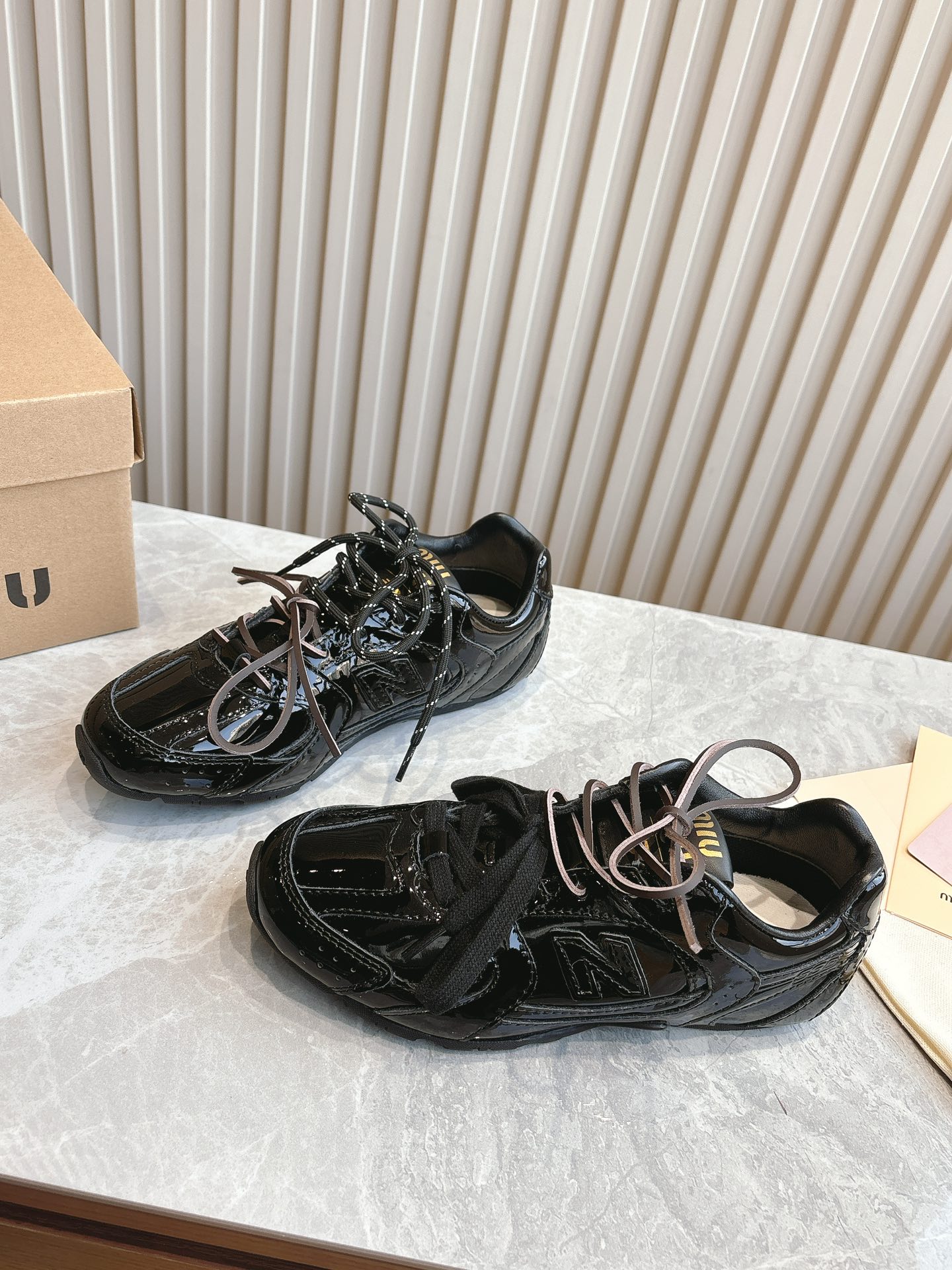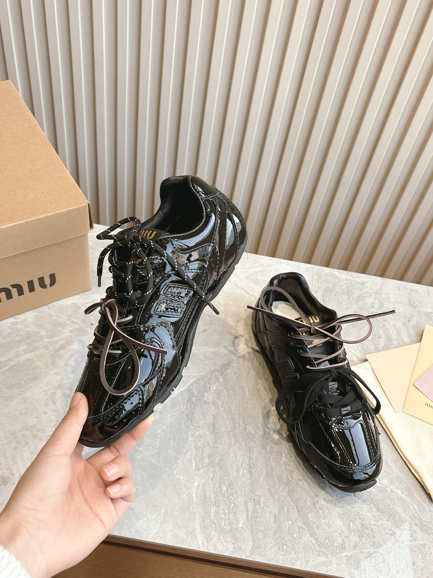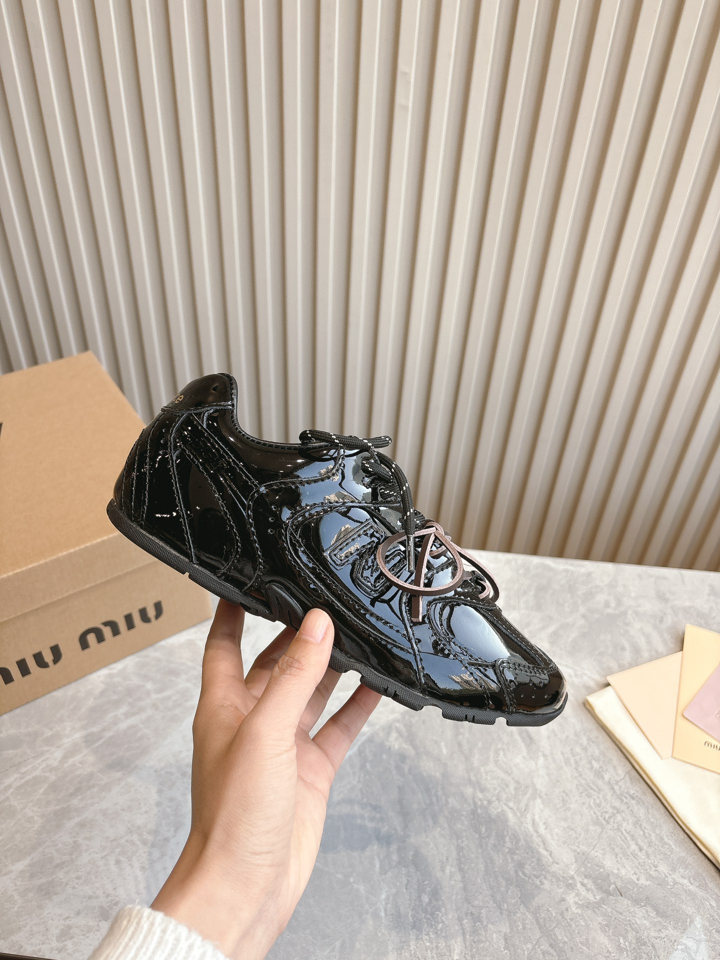 這款鞋子是AAAAA 1:1 質量(非常棒). 使用了和原版一模一樣的材料. 商標部分也保持了和繆繆/Miu Miu一樣. 圖片拍攝是實物鞋子拍攝, 您所收到的實物保證和我們圖片一模一樣.