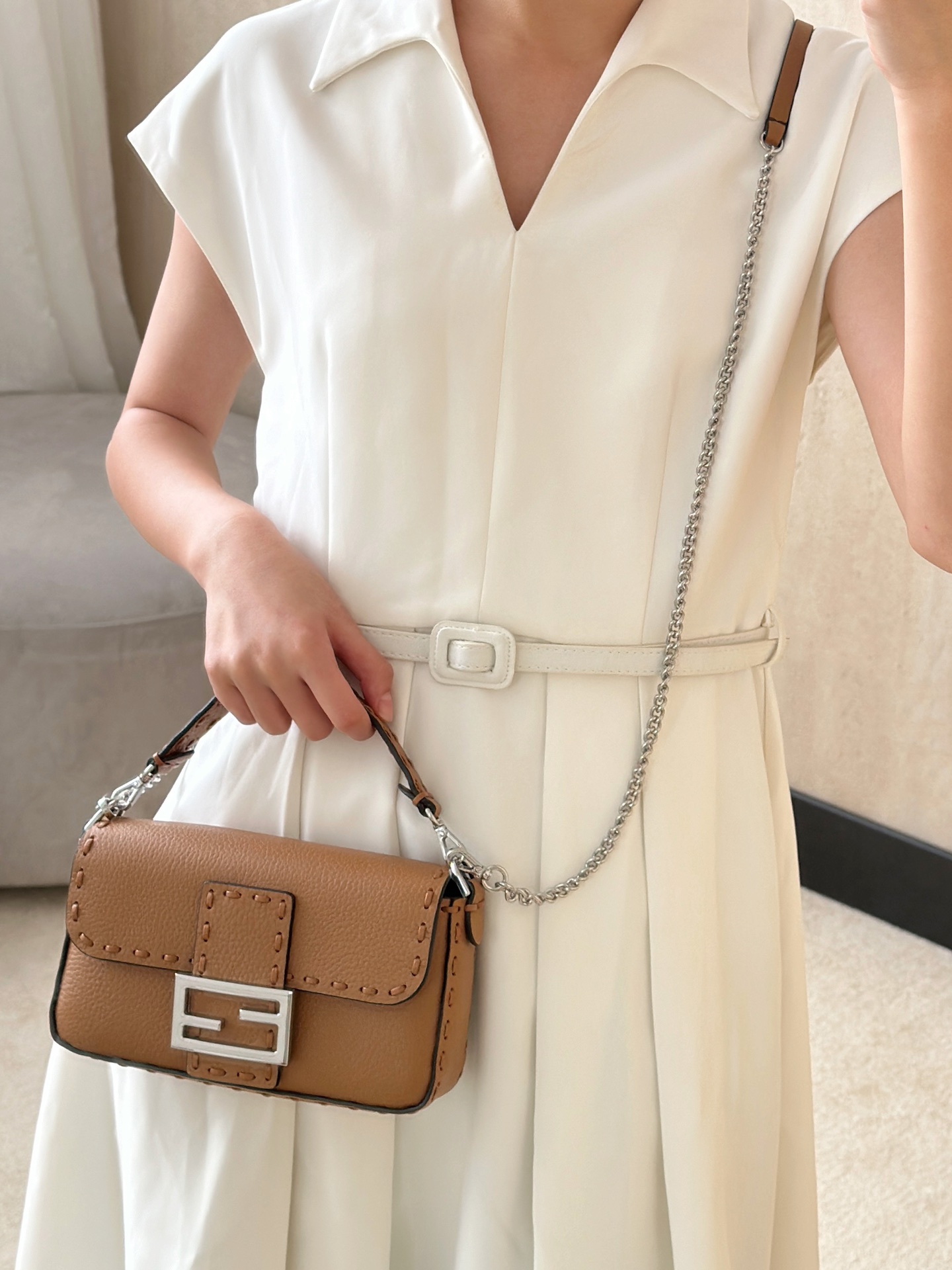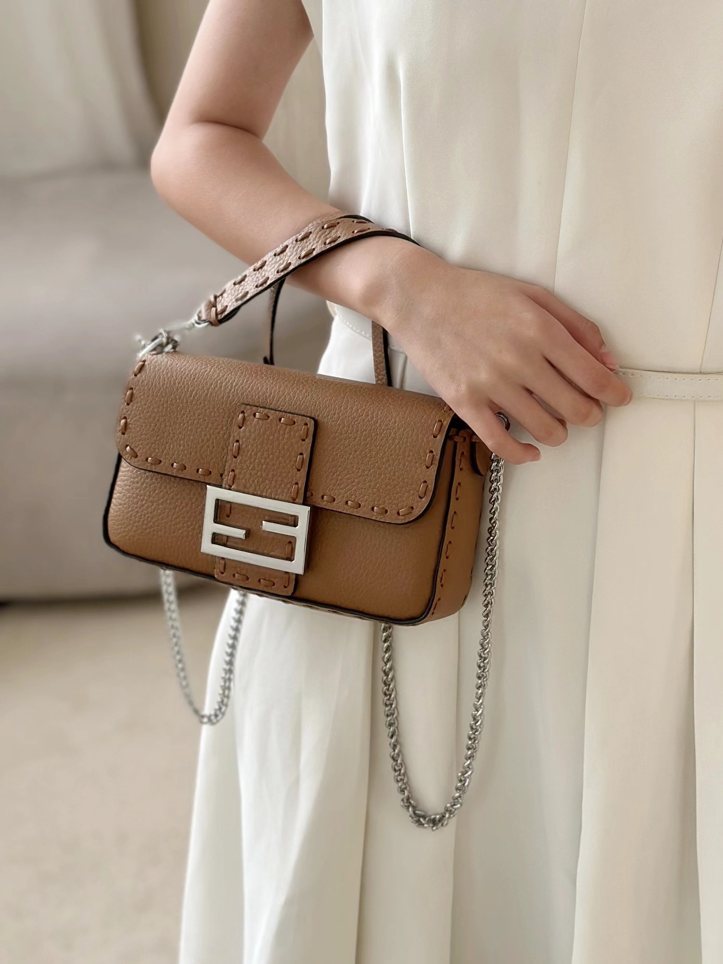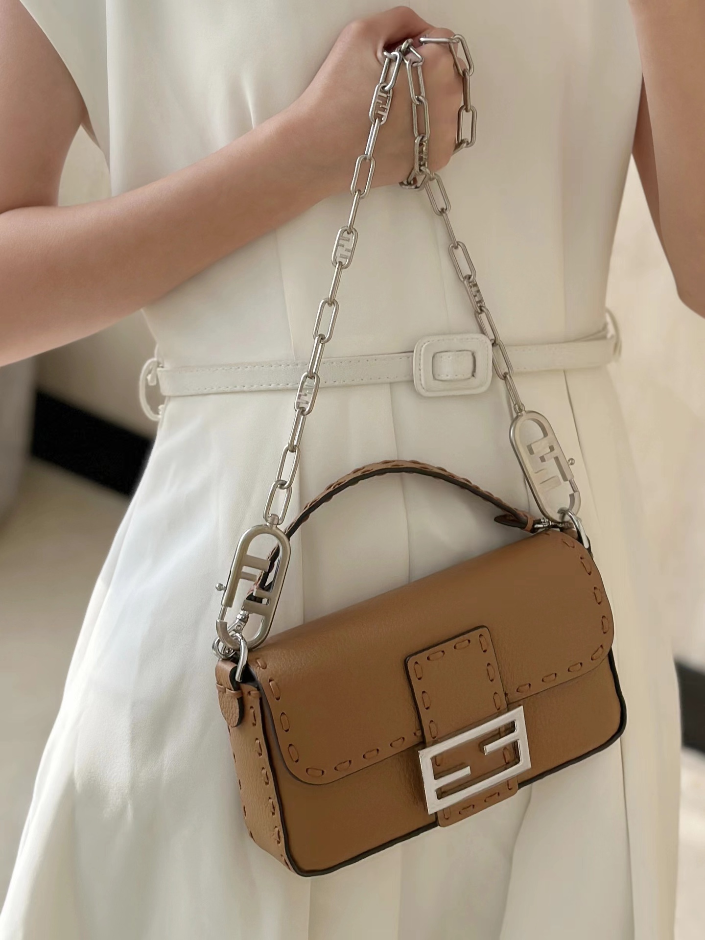 這款包包是AAAAA 1:1 質量(非常棒). 使用了和原版一模一樣的材料. 商標部分也保持了和芬迪/Fendi一樣. 圖片拍攝是實物包包拍攝, 您所收到的實物保證和我們圖片一模一樣.