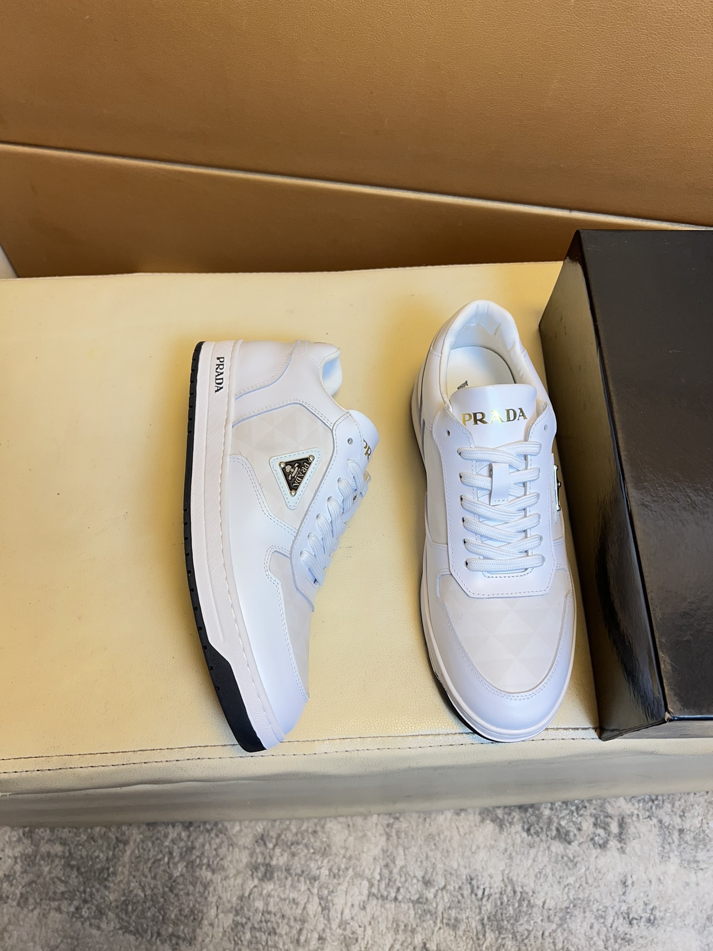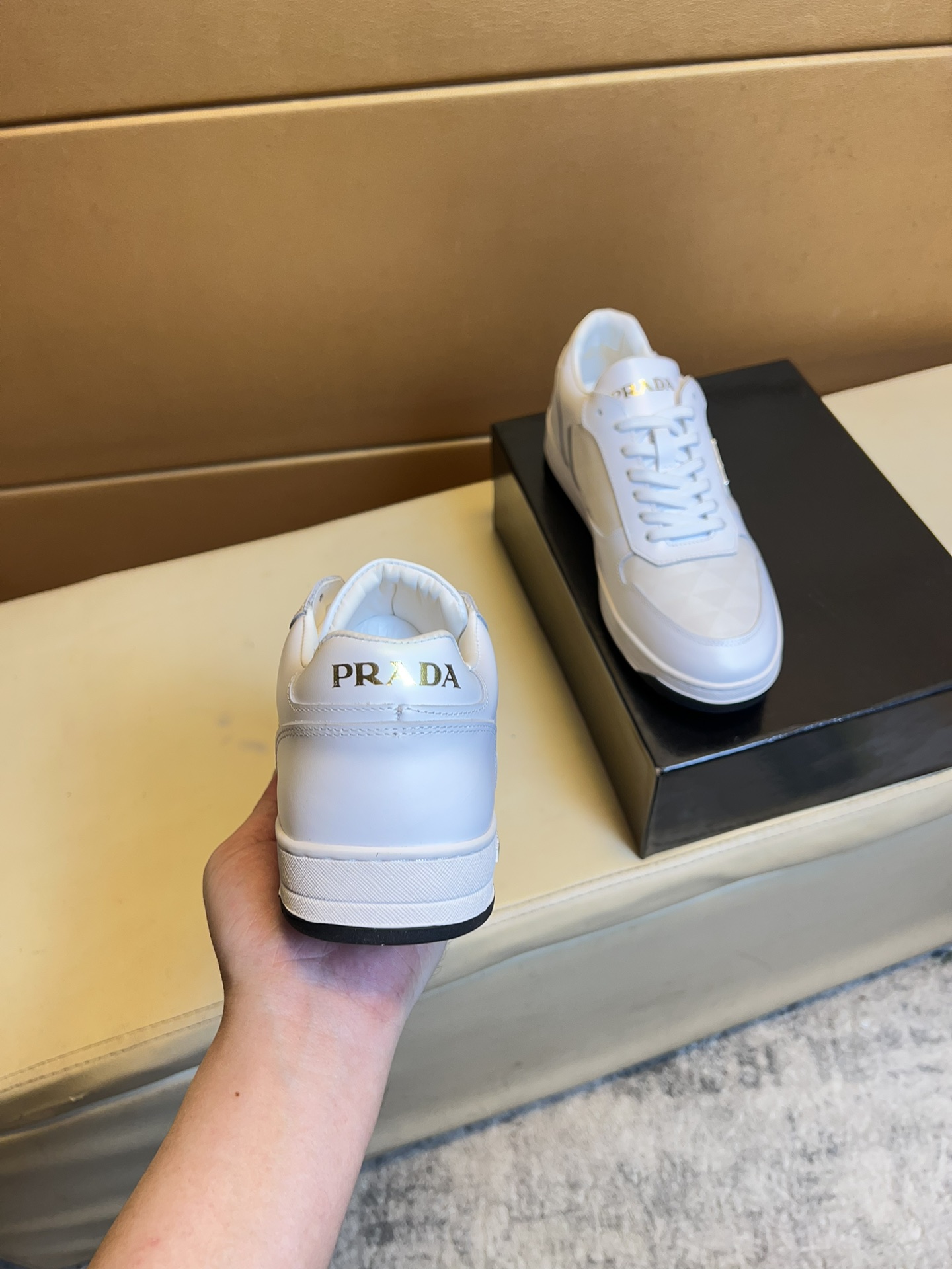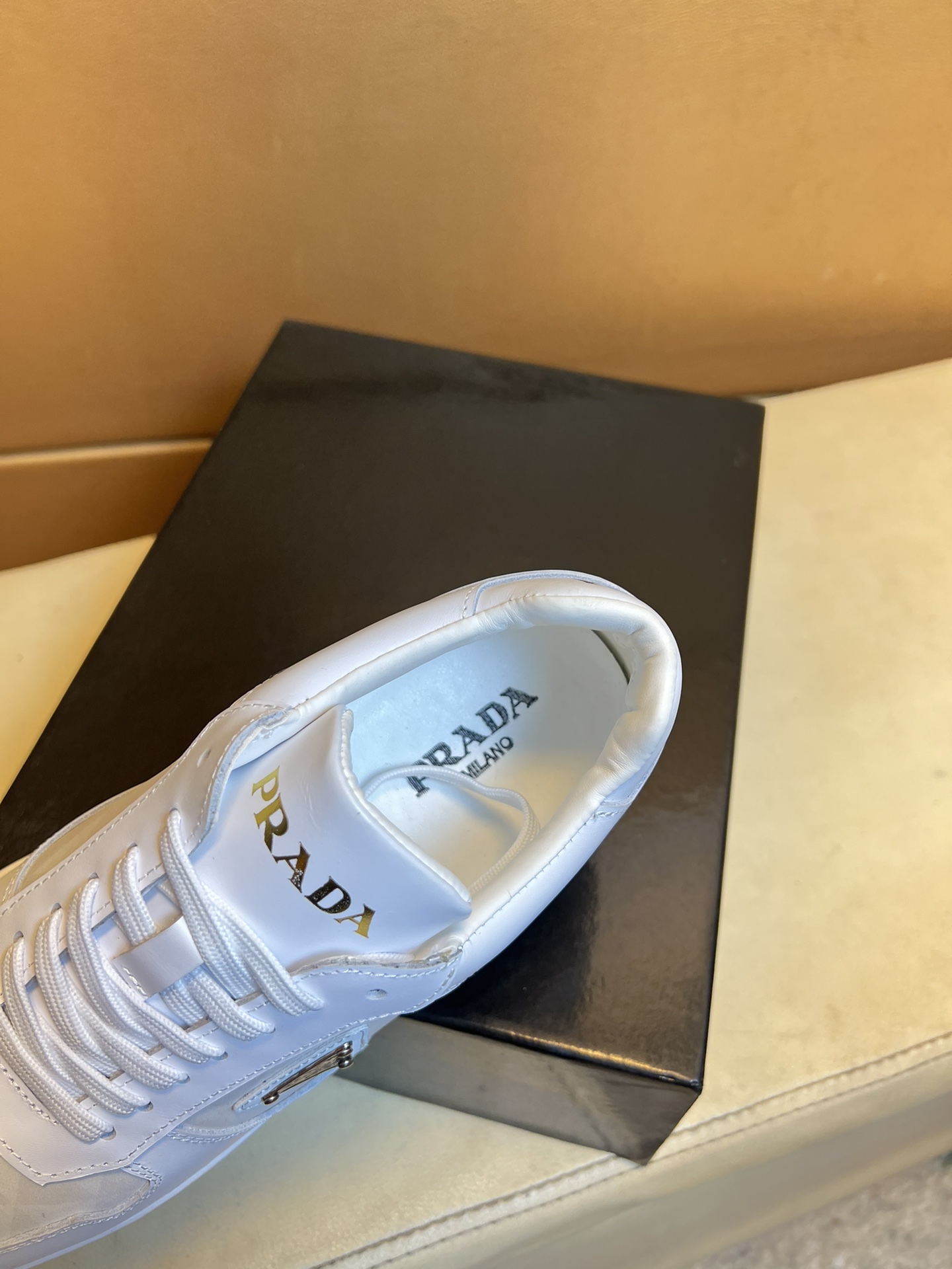 這款鞋子是AAAAA 1:1 質量(非常棒). 使用了和原版一模一樣的材料. 商標部分也保持了和普拉達/Prada一樣. 圖片拍攝是實物鞋子拍攝, 您所收到的實物保證和我們圖片一模一樣.