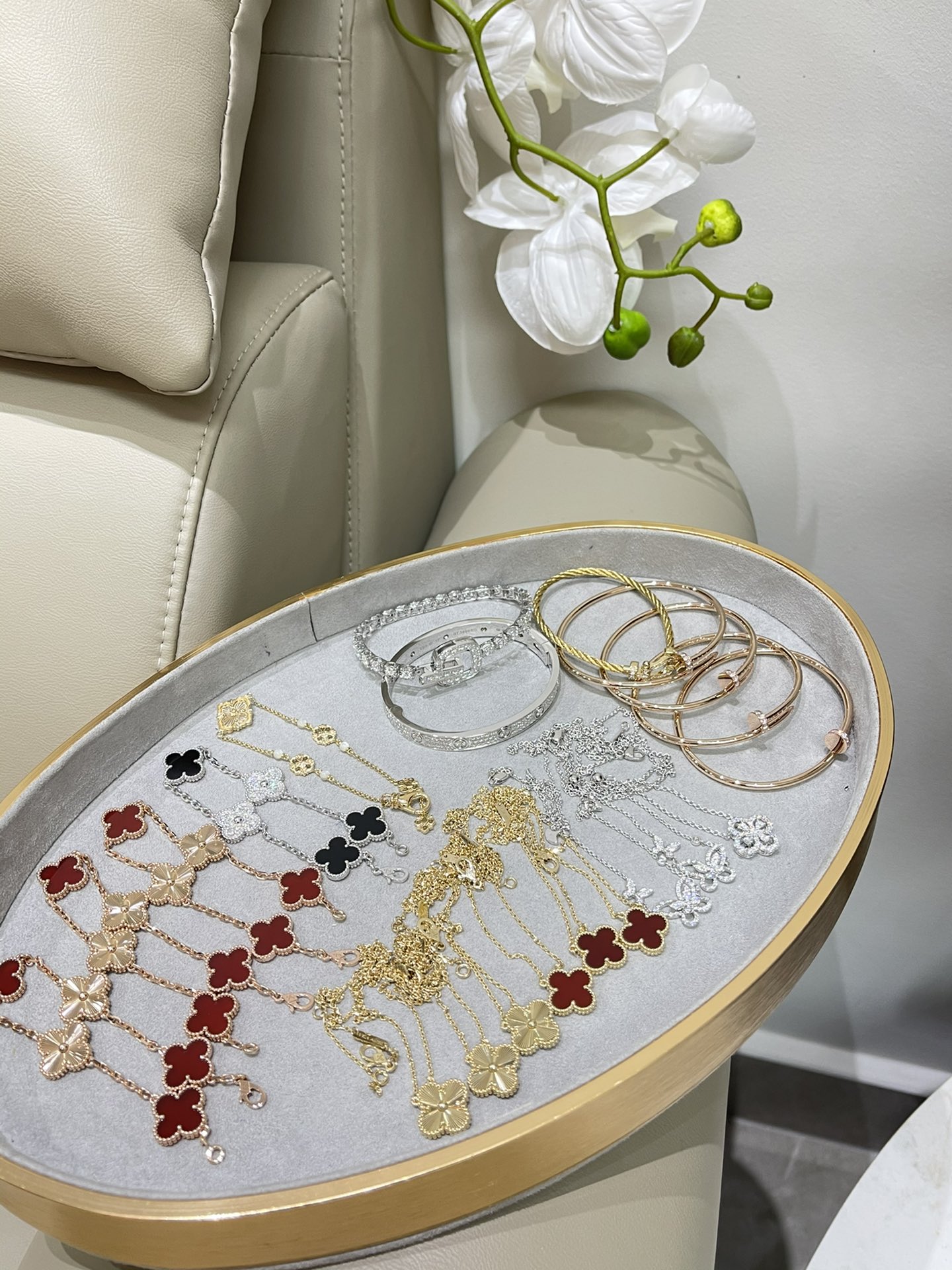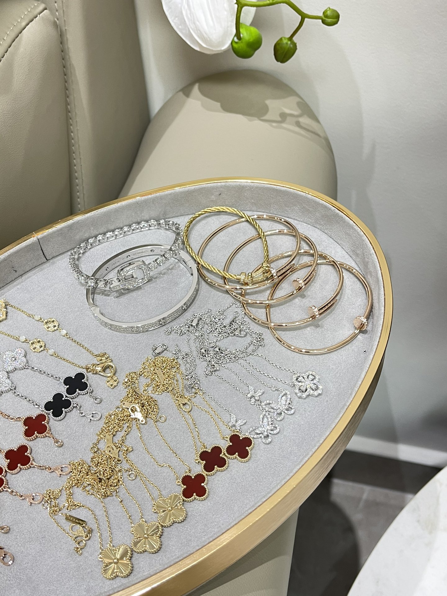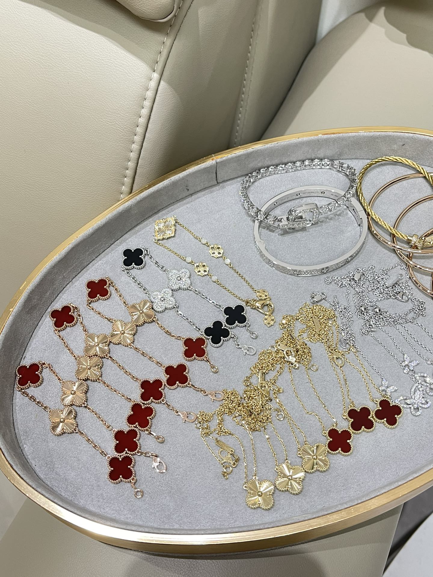 這款首飾是AAAAA 1:1 質量(非常棒). 使用了和原版一模一樣的材料. 商標部分也保持了和一樣. 圖片拍攝是實物首飾拍攝, 您所收到的實物保證和我們圖片一模一樣.
