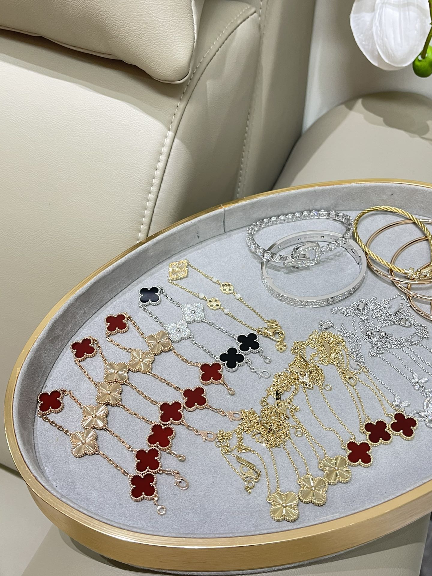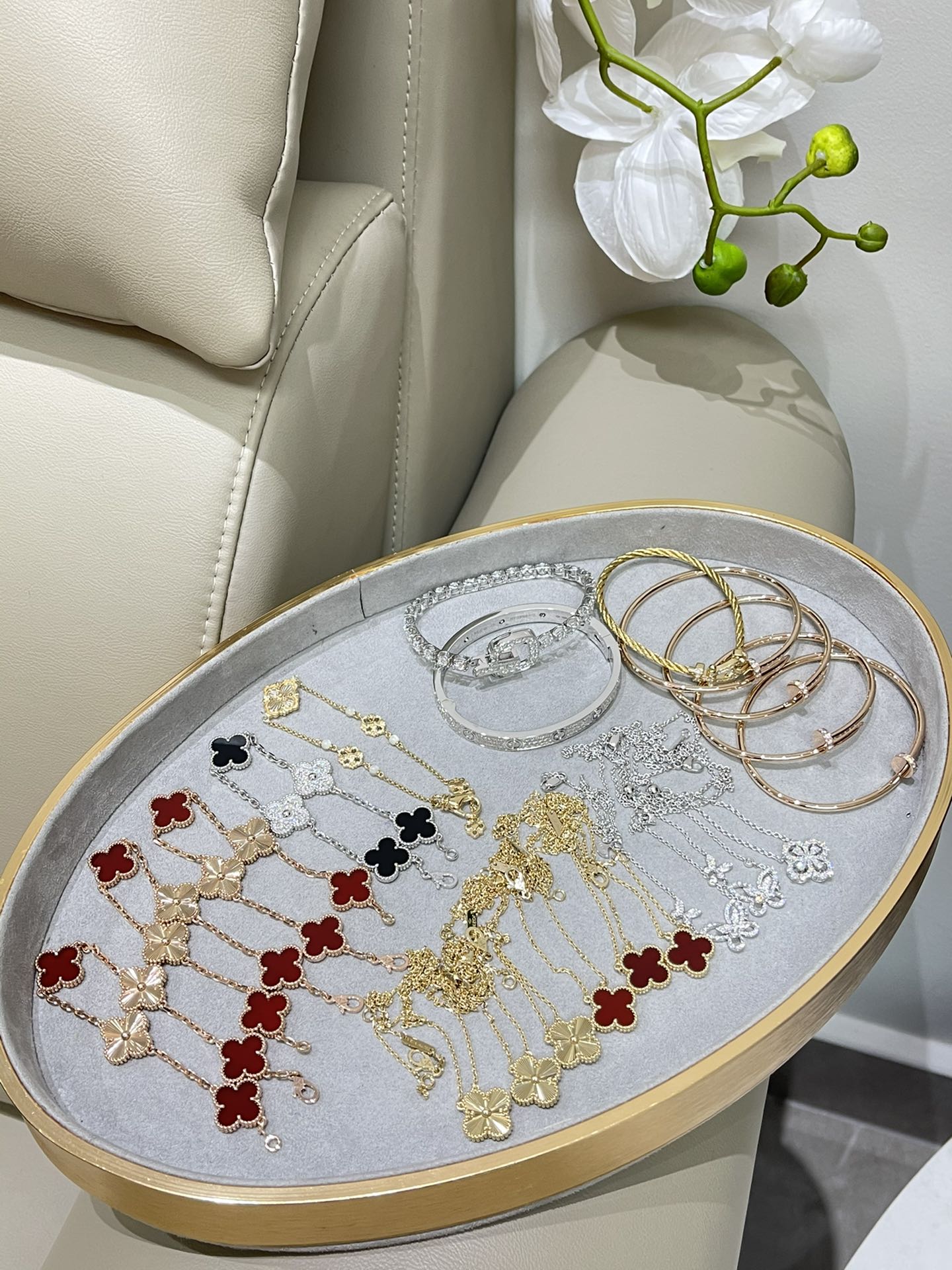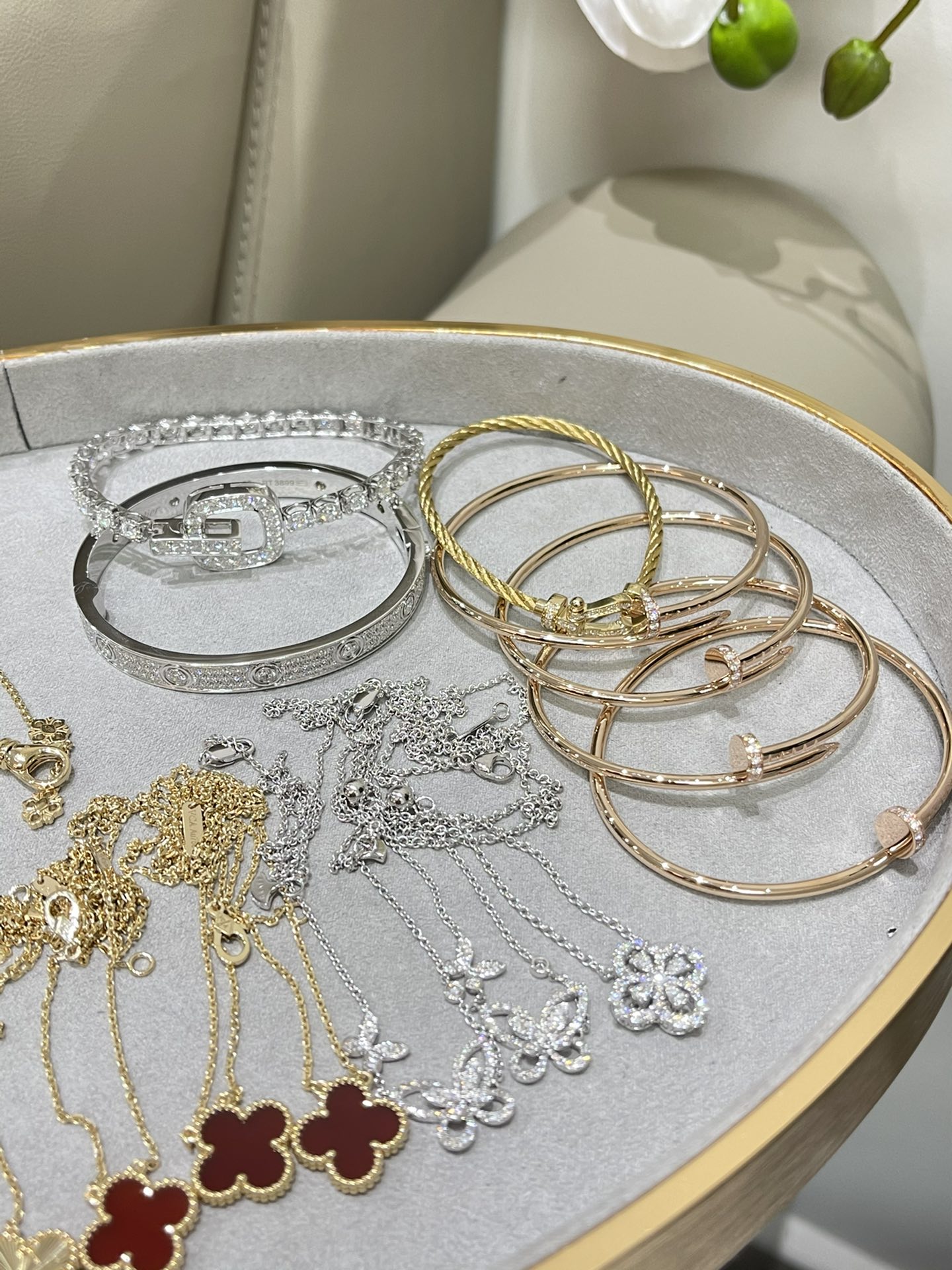 這款首飾是AAAAA 1:1 質量(非常棒). 使用了和原版一模一樣的材料. 商標部分也保持了和一樣. 圖片拍攝是實物首飾拍攝, 您所收到的實物保證和我們圖片一模一樣.